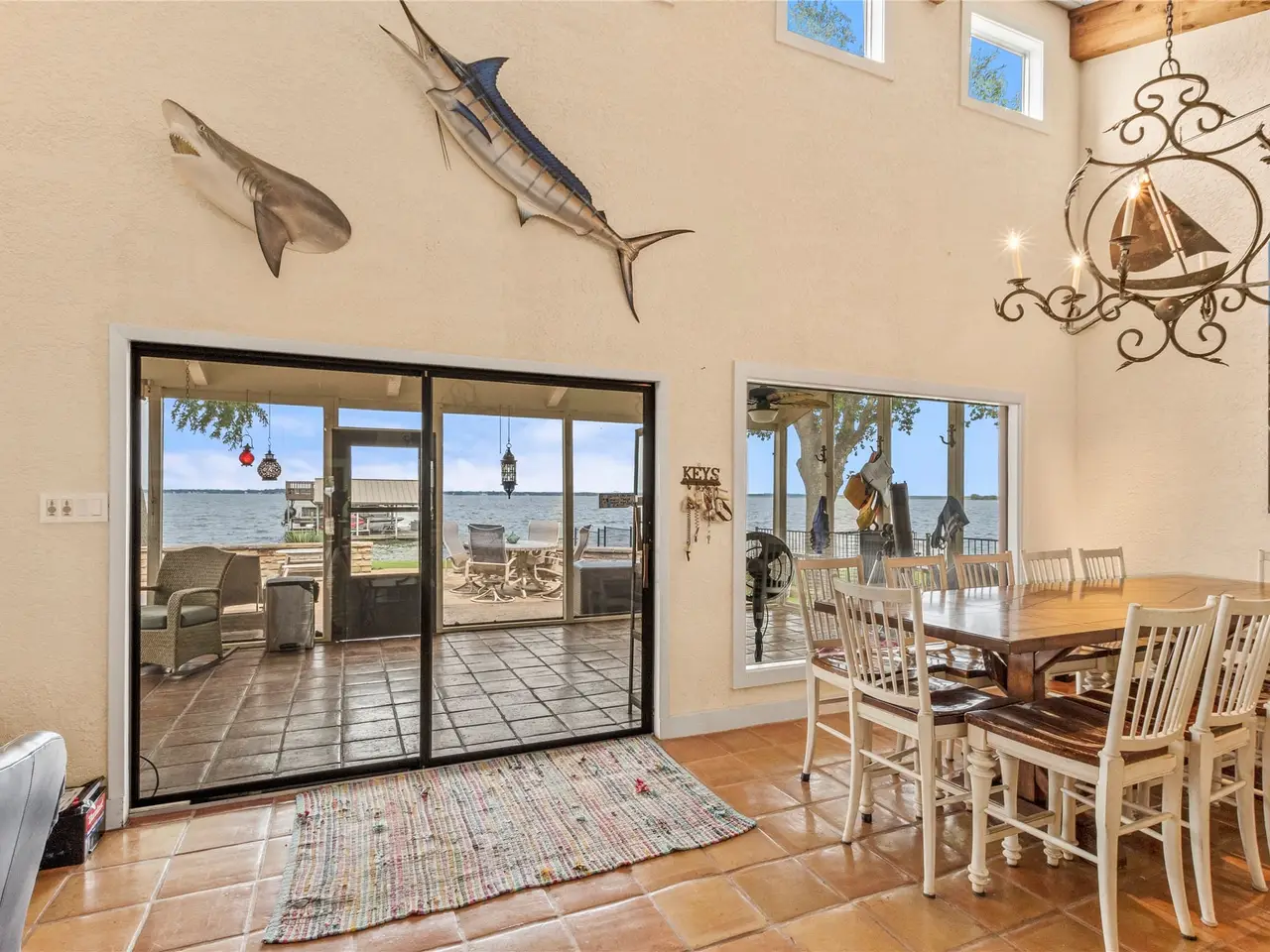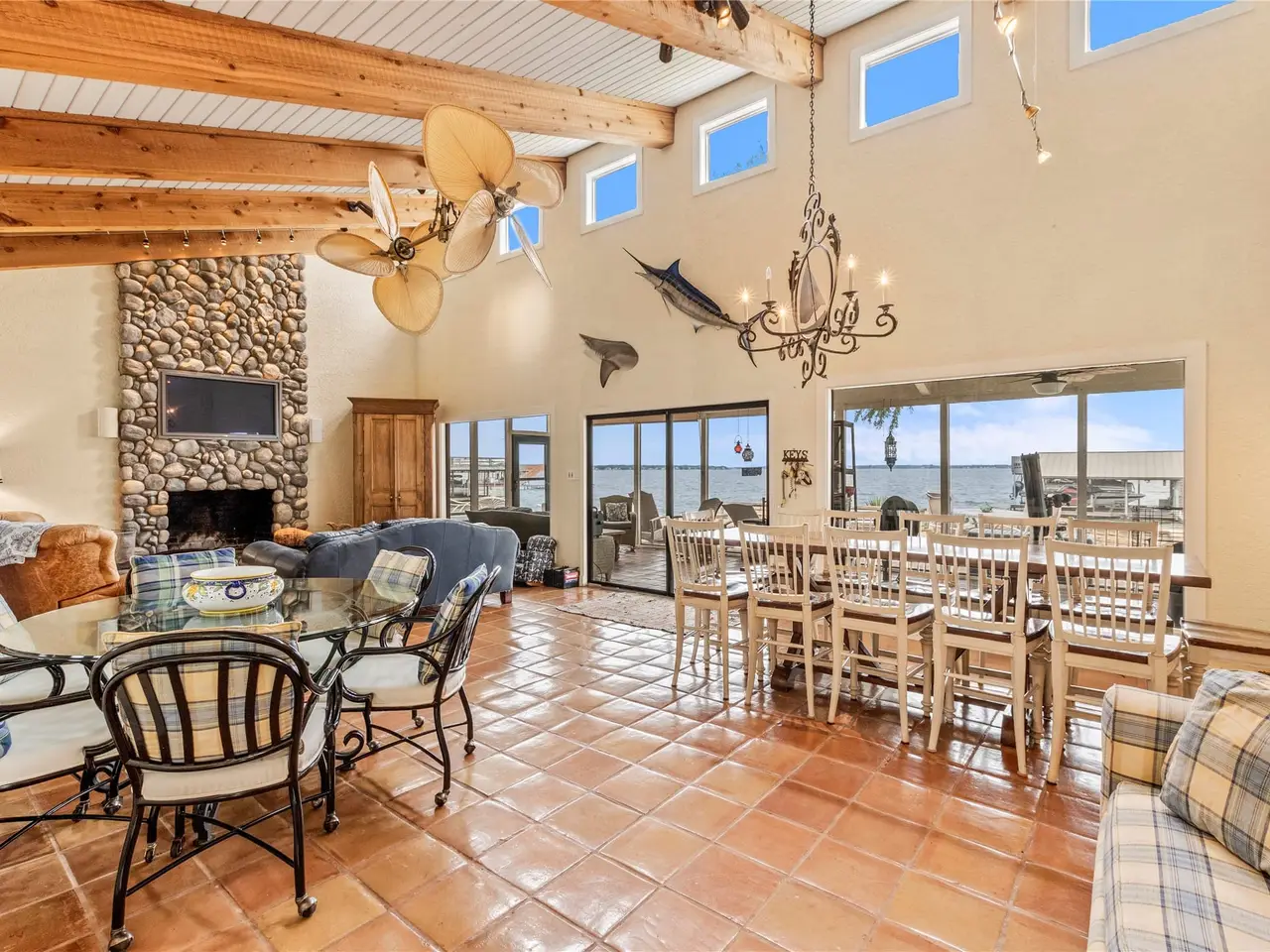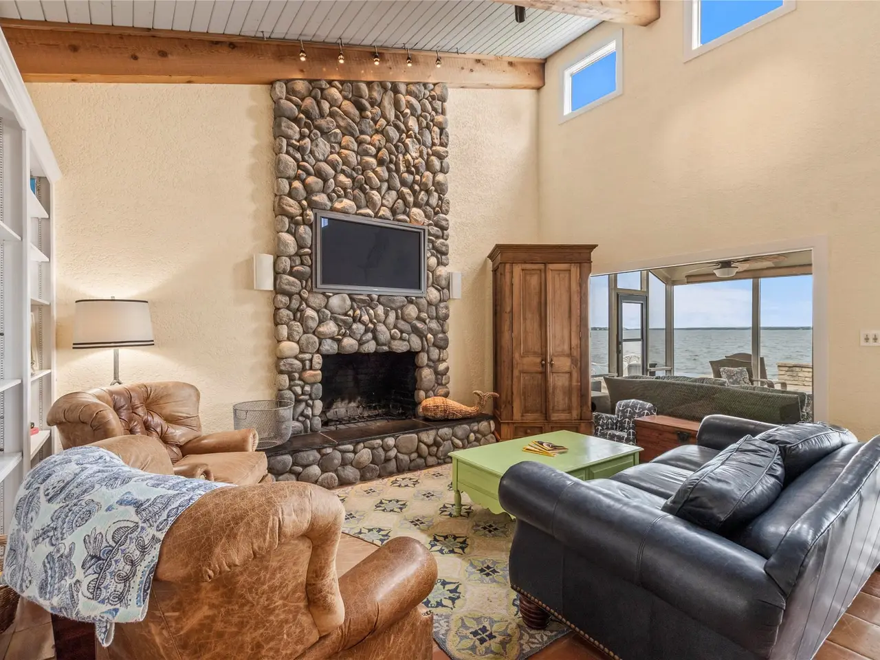 Spectacular resort home on two deep open water peninsula lots with 242 feet of waterfront, shared sandy beach and miles of view. Outdoor paradise with a heated infinity edge pool, cabana with a stone bar and a cook center, you will not want to miss cozying up to the large wood burning fireplace on chilly days. With eight bedrooms and two huge living areas this home offers room to spread out and entertain a crowd of family and friends. Living room with soaring ceiling, stone gas fireplace and two dining areas. Second living area with room for game tables and another TV. Cooks will love the gas cooktop and double ovens in the kitchen plus there is a separate wet bar. The huge screen porch is sure to be a favorite place to enjoy year round outdoor living and southern breezes coming in off the water. Boathouse with two full boatslips and slip for two PWCs. Commercial TPO metal roof 2022, water filtration system, two gas tankless water heaters, storage garage. Includes furnishings with some exclusions.