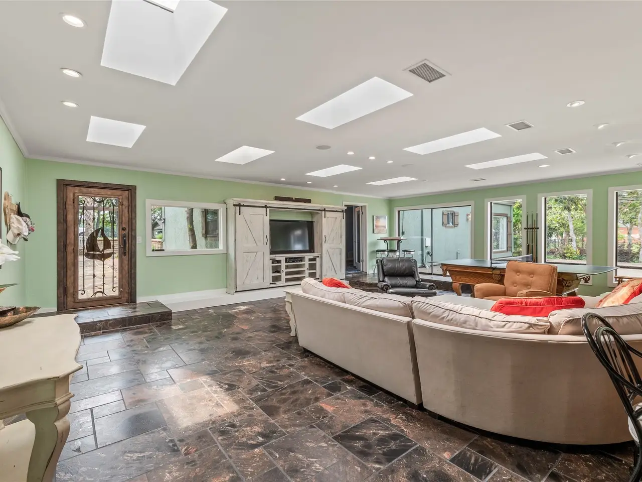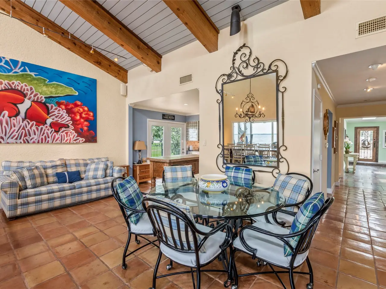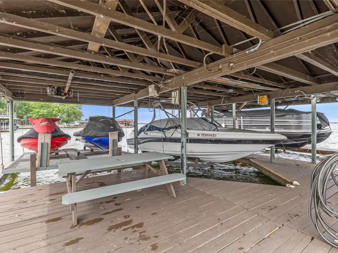 Spectacular resort home on two deep open water peninsula lots with 242 feet of waterfront, shared sandy beach and miles of view. Outdoor paradise with a heated infinity edge pool, cabana with a stone bar and a cook center, you will not want to miss cozying up to the large wood burning fireplace on chilly days. With eight bedrooms and two huge living areas this home offers room to spread out and entertain a crowd of family and friends. Living room with soaring ceiling, stone gas fireplace and two dining areas. Second living area with room for game tables and another TV. Cooks will love the gas cooktop and double ovens in the kitchen plus there is a separate wet bar. The huge screen porch is sure to be a favorite place to enjoy year round outdoor living and southern breezes coming in off the water. Boathouse with two full boatslips and slip for two PWCs. Commercial TPO metal roof 2022, water filtration system, two gas tankless water heaters, storage garage. Includes furnishings with some exclusions.