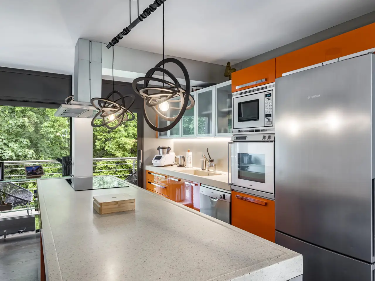 Discover this exclusive loft-style apartment, elegantly laid out over two levels and ideally located in Troinex, near the charming area of Vieux-Carouge. The first level offers an impressive open living space with a 7-meter-high ceiling, featuring a spacious living room adorned with a suspended fireplace and a dining area. This level also includes a high-end open kitchen with a central island, two bedrooms, an Italian-style shower room, guest toilets, and a laundry room. Upstairs, an elegant master suite awaits, with a complete bathroom (bathtub and shower) and a dressing room, accompanied by a second bedroom with an en-suite shower room. A small kitchen, conveniently situated for terrace access, makes it easy to enjoy the 85 m² terrace with breathtaking views over the residence’s park. This exceptional property stands out for its many advantages: a private end-of-building location with no overlooking neighbors, bright and open spaces, remarkable ceiling height, premium materials and finishes, a peaceful setting, and proximity to the charm of Vieux-Carouge. Two closed garages, an outdoor parking space, a cellar, and two wine cellars complete the offerings of this unique property.