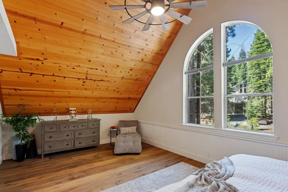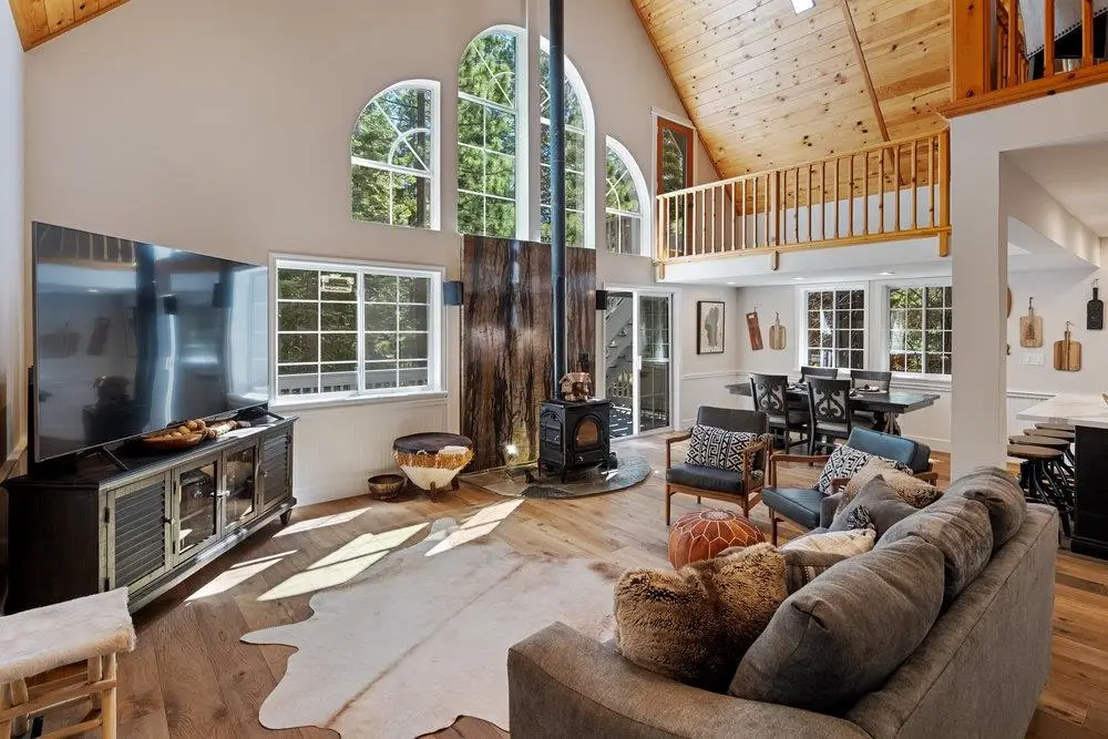 60K PRICE REDUCTION!! Nestled in a picturesque forested setting, this stunning mountain modern home exemplifies both elegance and comfort. Meticulously updated and maintained by its owners, the residence boasts remarkable design elements throughout. Upon entering, you are greeted by a sun-drenched great room featuring beautiful hardwood flooring, soaring vaulted ceilings, and an array of custom touches that enhance the overall aesthetic. The modern kitchen is a culinary delight, equipped to satisfy the needs of any chef. With five spacious bedrooms, including two ensuite options, and four full baths, there is ample room for family and guests alike. Additional highlights of the home include a versatile loft, a convenient laundry room, a relaxing hot tub, and generous storage options, all complemented by an oversized garage. The back deck offers serene forest views, creating a perfect space for relaxation and outdoor enjoyment. The property adjoins a greenbelt, providing an extra layer of privacy, while the flat, level driveway ensures easy access during winter months. As a member of the Tahoe Donner Homeowners Association, residents can take advantage of the spectacular four-season amenities that enhance the overall living experience.