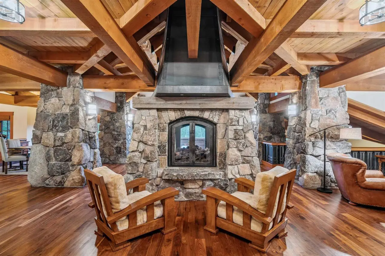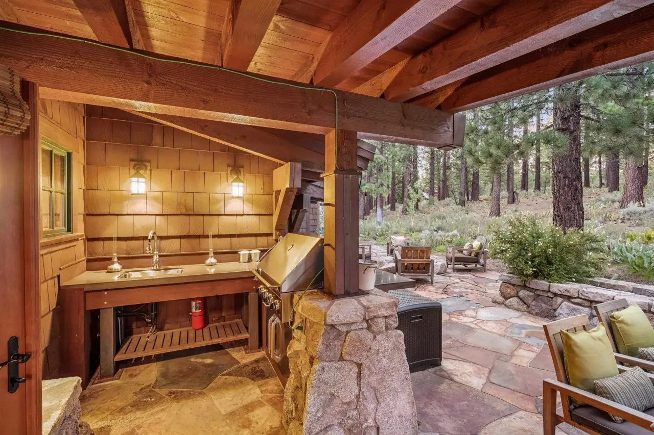 OPEN HOUSE GUESTS MUST PRE-REGISTER. Welcome to The Overlook Lodge: A Classic Tahoe Estate in the Heart of the Private & Gated Lahontan Community & Golf Club in Truckee, California. Located in a sun-drenched cul-de-sac within Truckee's prestigious private Lahontan Golf Community. Offering sweeping views of Lookout Mountain and the 17th fairway, this mountain retreat was designed to elevate everyday living with enduring craftsmanship and thoughtful luxury. From the moment you arrive, the home's presence is undeniable. Architectural stone pillars rise inside and out, blending into native landscaping and an alpine backdrop. Soaring timber beams and custom ironwork hint at the meticulous detail within. Built in 2002 and spanning 5,936 square feet, this 5 bedroom, 6.5 bathroom estate was crafted for connection, celebration, and comfort. Inside, walnut hardwood floors stretch across the main level, softened by Sierra antique stone inlays and warmed by hydroponic radiant floor heating. The great room is anchored by a dramatic four-sided stone fireplace and a wall of picture windows that frame the surrounding mountain landscape, filling the home with natural light and a grounded sense of place. A chef's kitchen offers commercial-grade Kitchenaid appliances, a Viking range, solid granite counters, a dedicated ice maker, and two dishwashers. Solid Alder cabinetry and an oversized island provide warmth and workspace, while a custom buffet and bar with beverage fridge offer the perfect extension for effortless entertaining. A sunny breakfast nook adds comfort for everyday meals and morning coffee. Two large front-facing viewing decks offer sweeping views of Northstar and the high Sierra, while the rear patio and lanai invite four-season outdoor living. A built-in outdoor kitchen, firepit, and private hot tub with mountain views complete the experience. Thoughtfully designed for flexibility, the home features two private primary suites, one with dual his and her bathrooms. A spacious family/media room on the lower level features a full refrigerator and theater-style setup powered by a 26-speaker Sonos system, perfect for game-day gatherings and movie nights. Practical luxury continues with a giant laundry room, a separate pantry, and a heated two-car garage with built-in cabinetry, hanging racks for ski and boating equipment, and a finished attic space above for storage or future conversion. A smart lighting system with an easy all-on/all-off functionality simplifies daily living on the upper levels. The