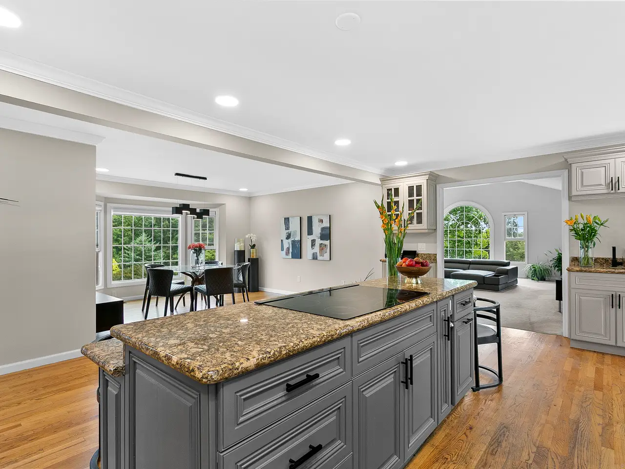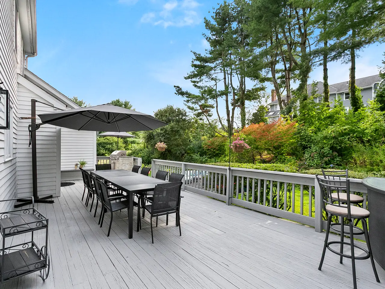 Welcome to a gracious 4,287-sq-ft, 5-bed, 4.5-bath home designed for hosting and everyday ease-set on a private 1-acre lot in Trumbull, tucked away yet 3 minutes to Rt. 25 and connected to Tashua School (K-5), with gas heat and potential space for a future pool. The heart of the home is a massive, chef-ready kitchen with counter bar, cafe bar, twin ovens, and a sunny breakfast nook. It flows and connects to a spacious dining room and out to a rear deck and fire-pit patio-seamless indoor-outdoor entertaining. A secondary pantry doubles as a smart laundry/utility zone to keep cleanup out of sight. An oversized powder room and a welcoming foyer-overlooked by a balcony and statement chandelier-complete the arrival experience. A huge family room with fireplace opens to a large sunroom/office for comfortable living. The first-floor guest suite offers privacy with an en-suite bath and dedicated storage. Upstairs, the vaulted-ceiling primary suite features a bath with dual vanities and a jetted soaking tub. Bedroom 3 includes its own en-suite; Bedroom 4 is served by a twin-sink hall bath. Downstairs, lower level expands your living space and connects to a utility room and an attached three-car garage. Attic storage adds convenience. Nicely done circular driveway, Thoughtful and thorough landscaping ties the outdoor zones together.