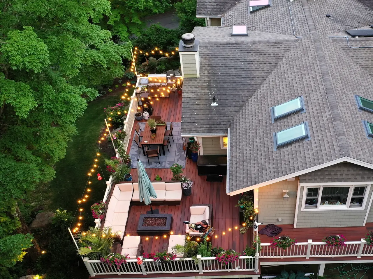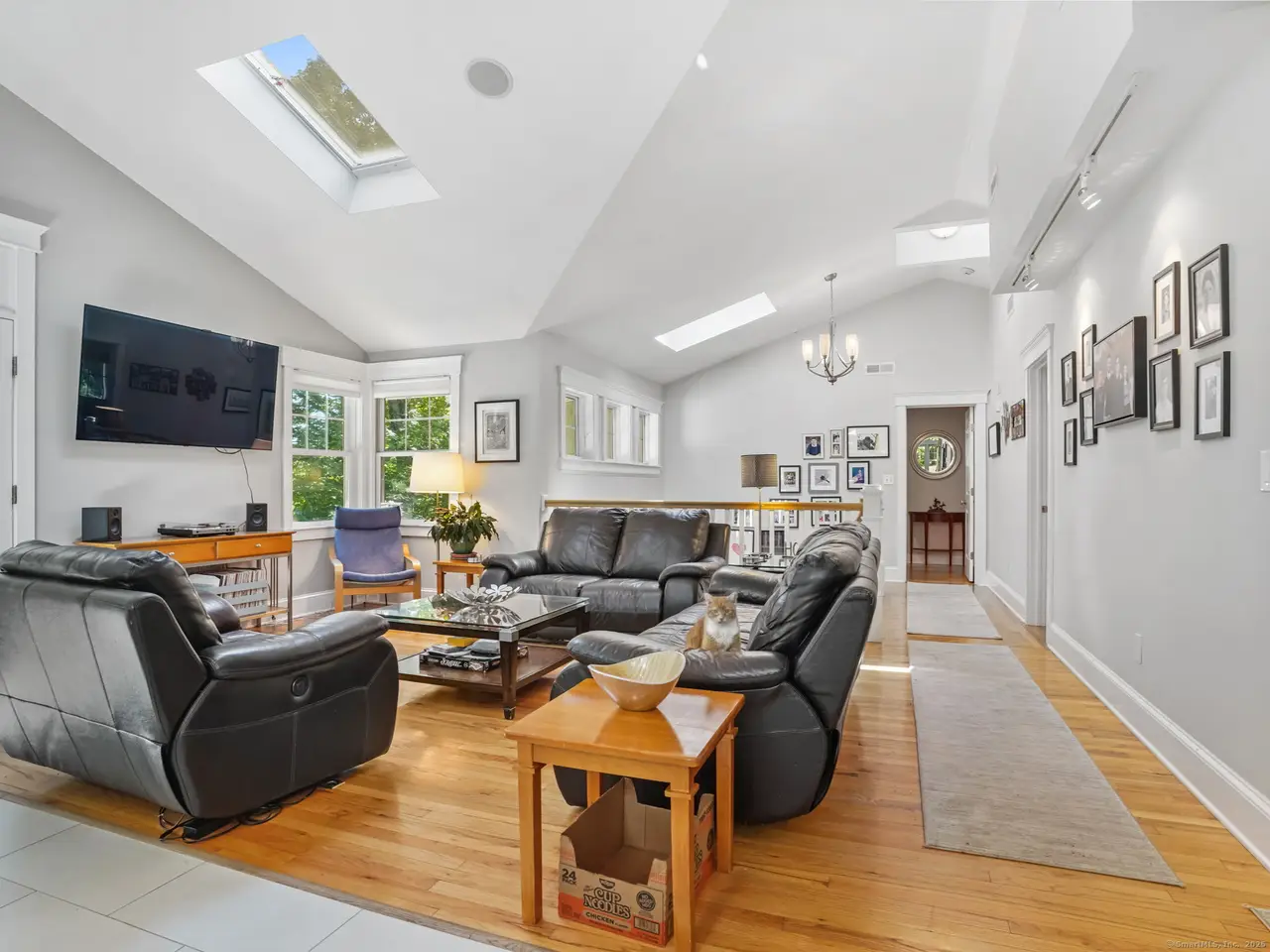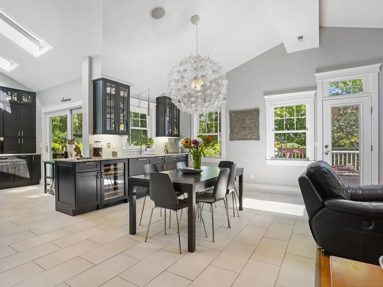 A stunning architecturally designed custom home located in the desirable Porter's Hill section of Trumbull & within the Daniels Farm Elementary School District. Conveniently close to schools, parks, shopping, restaurants, & highways, this commuter's dream offers 7 to 8 bedrooms & 6 full bathrooms, each finished with high-end tile, fixtures, and amenities.Professional audio system throughout. The impressive 2-story foyer with open staircase sets the tone for a sun-filled interior highlighted by skylights, unique lighting, and custom pendant lighting. The gourmet kitchen is equipped with Wolf appliances including a gas cooktop, double ovens, warming drawers, Sub-Zero refrigerator, wine chillers, and three sinks, high end Brazilian Quartzite countertops all complemented by custom cabinetry. The home features a cedar sunroom with a full-size Thermo-spa hot tub, a spacious mudroom with built-ins and shelving, and an expansive 25x25 foot walk-out office with a full bath that can also serve as an au pair, or in-law. The primary suite offers cathedral ceilings, built-in bookcases, a fireplace, surround sound, and a luxurious bathroom with a steam shower, whirlpool tub, double vanities, and decorative tile. Outside, the property has been professionally landscaped by a landscape architect with specimen trees, lavender walkway, and an oversized Trex deck, creating a private, tranquil, and breathtaking outdoor oasis that perfectly complements this extraordinary home.