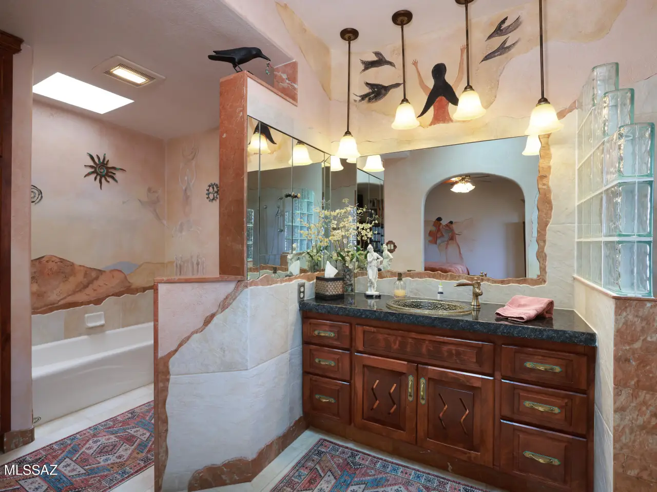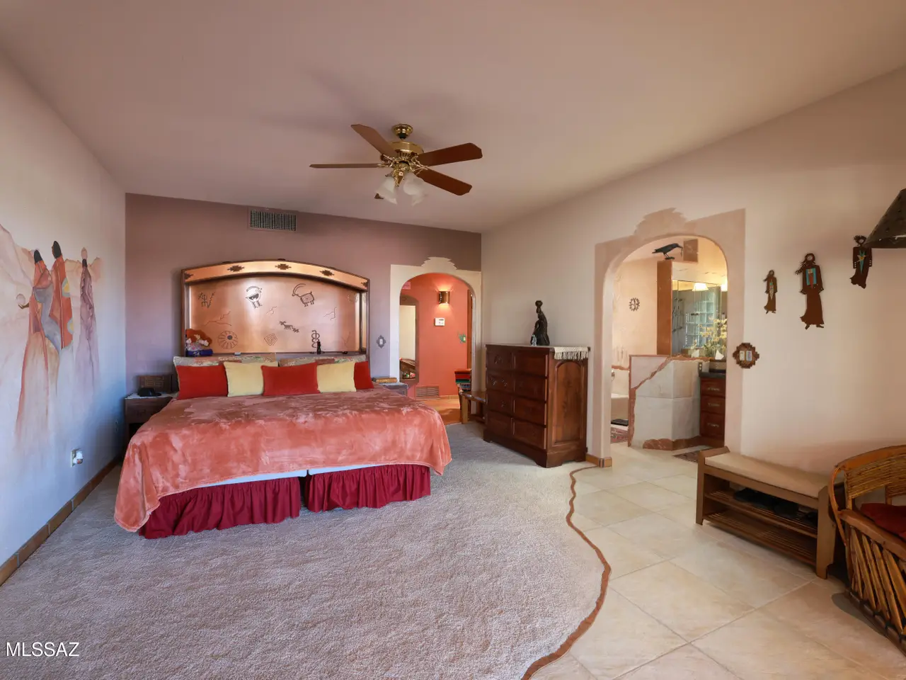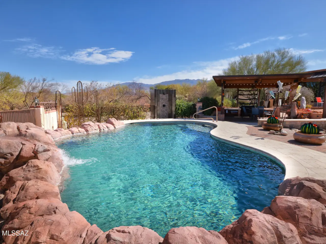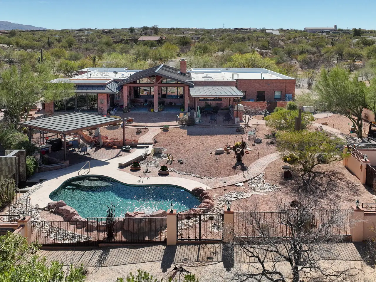 Beautiful, Southwest style home showcases quality craftsmanship & decorative finishes. Special starts with incredible views of the Catalina & Rincon Mtns on 3.3 acres. 2 Owners' Suite's each with private sitting room & full baths, plus 2 add'l bedrooms & baths. Kitchen has alder cabinets, custom hardware, double ovens, 2 stovetops & more. Spacious office with private entry. Oversized 3-car garage with laundry & large storage room. Backyard, an entertainer's dream with a sparkling pool, poolside ramada, outdoor shower, Blackstone grill, covered patios, pizza oven and garden shed. Beyond the enclosed yard, discover an Artist Studio, Chicken Coop & Workshop/4th Garage. Near Saguaro National Monument & Agua Caliente parks, golf, hiking & biking. Highly rated Tanque Verde Schools. Low HOA.