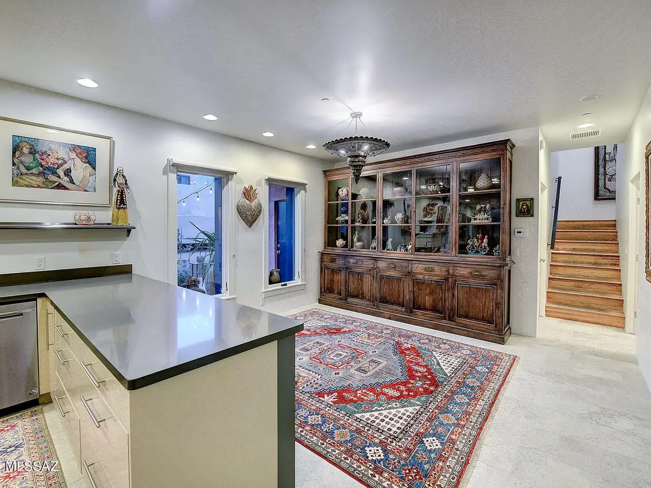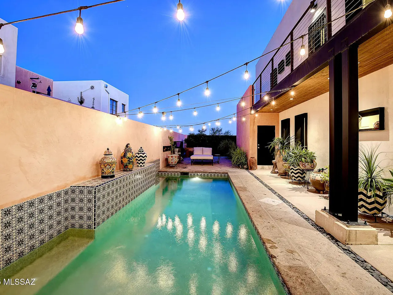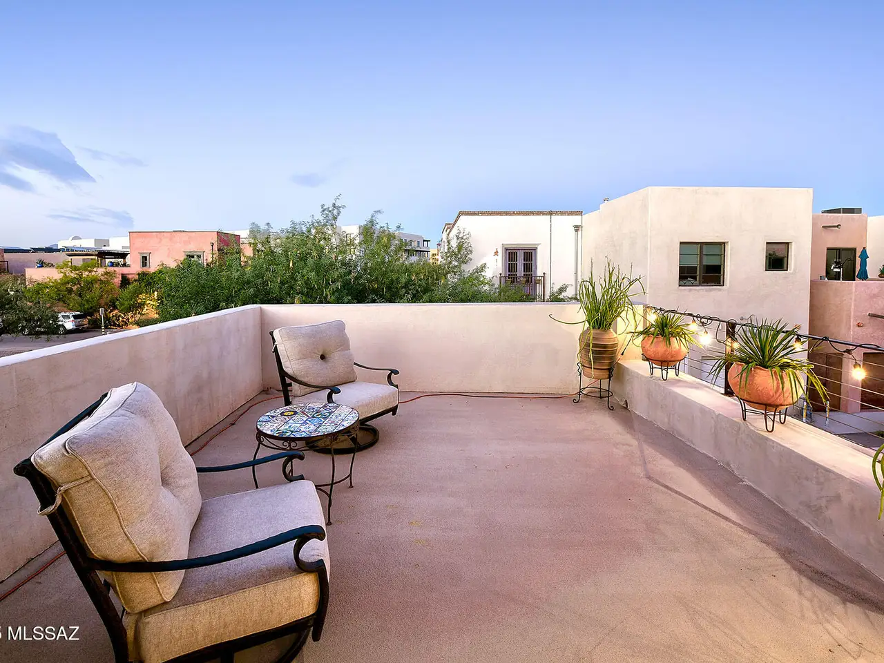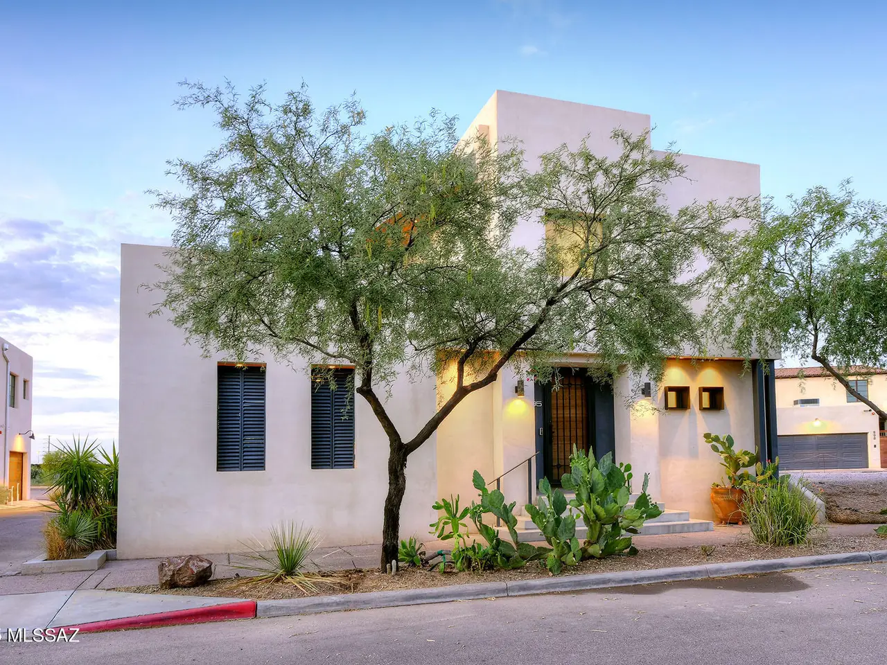 Discover a rare gem: an iconic home nestled in the heart of Mercado San Agustin. This elegant, custom-designed residence radiates European charm and features a versatile floor plan perfect for modern living. The spacious, light-filled great room on the ground floor boasts luxurious Chamonix porcelain tile, while the upstairs invites you in with bright, airy spaces covered in warm plank-wood flooring. Downstairs the beautifully appointed kitchen offers ample storage, a dining area, walk-in pantry, and stainless-steel appliances. A cozy den and guest bedroom with an upgraded bathroom complete with Villa Deco Graphite tile are conveniently located downstairs. Ascend to the second level, where you'll find another guest bedroom with an en-suite bath, adjoining the primary bedroom a private