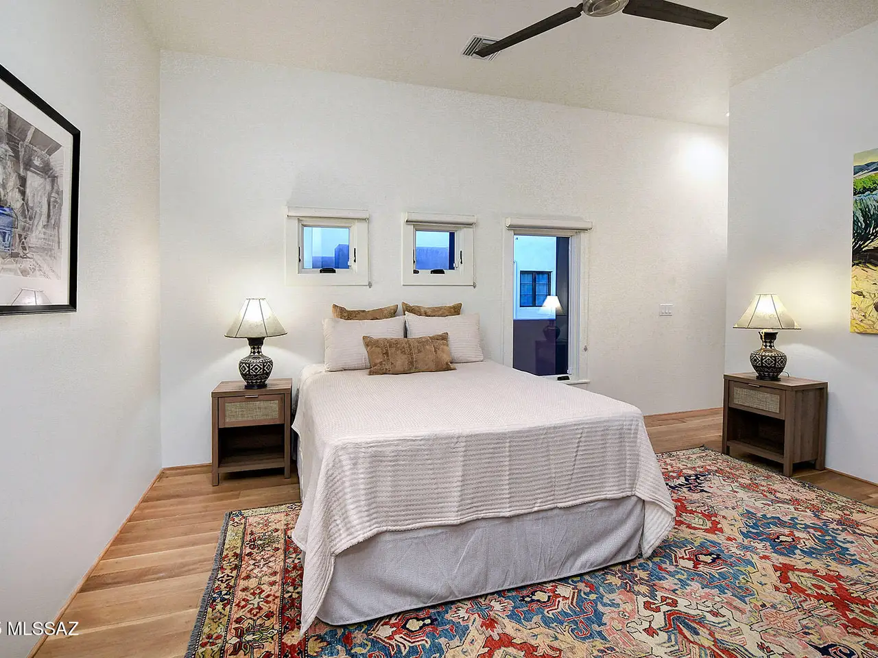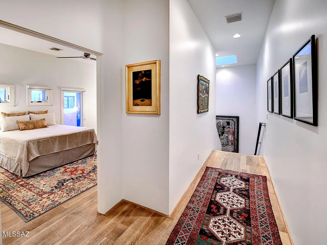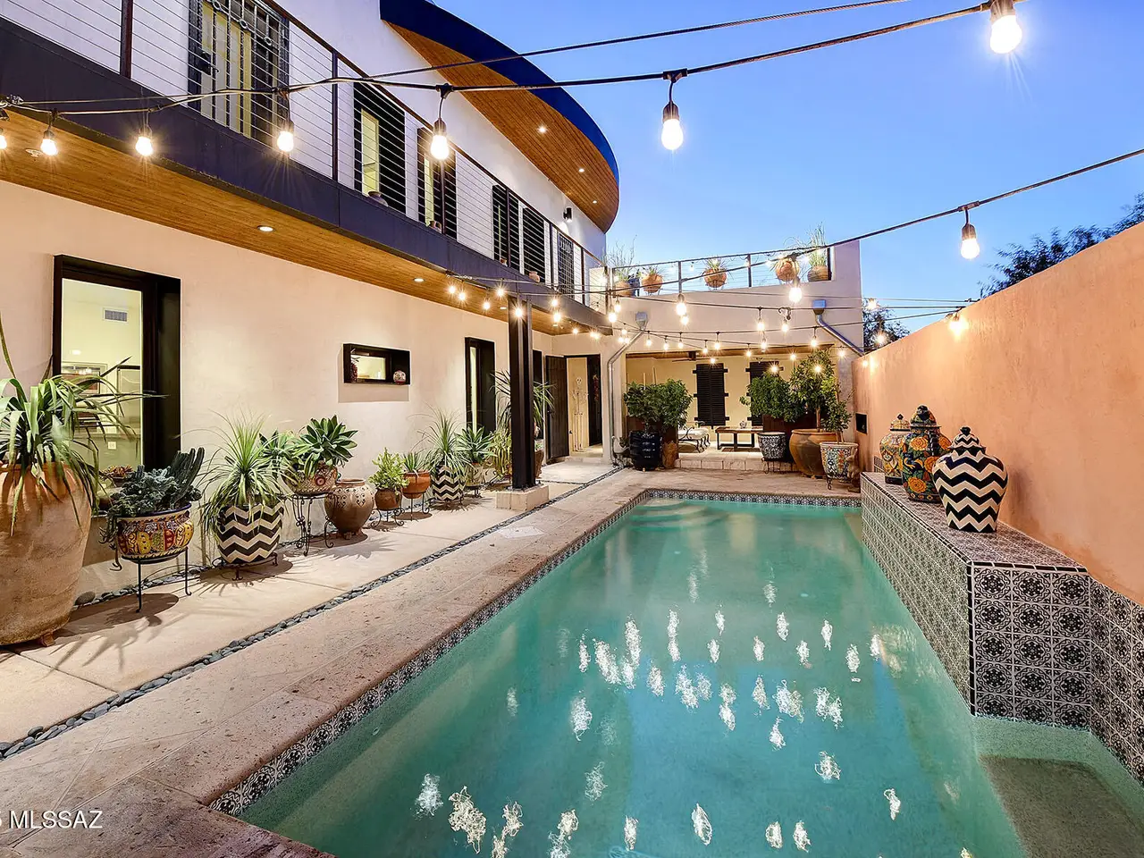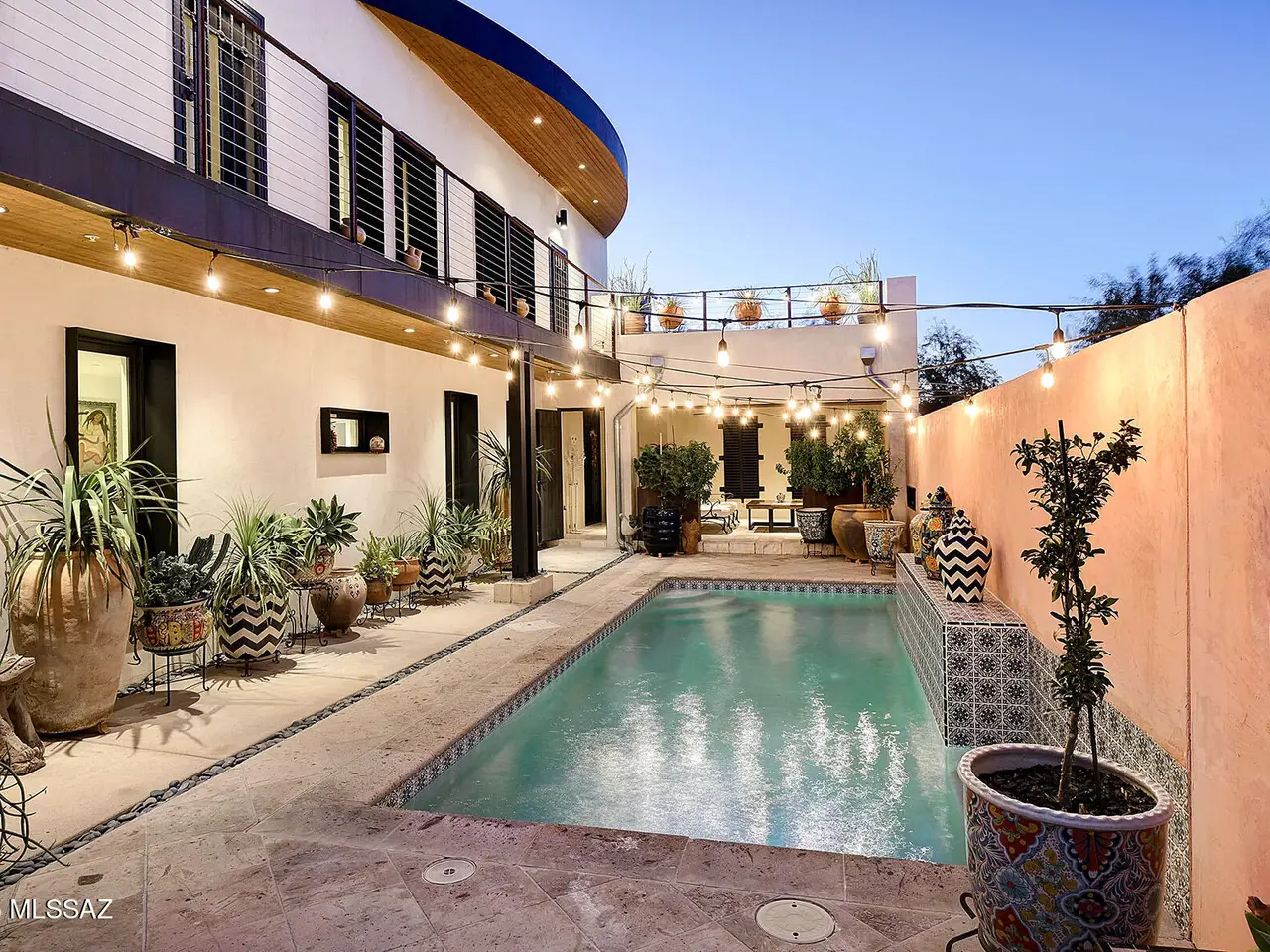 Discover a rare gem: an iconic home nestled in the heart of Mercado San Agustin. This elegant, custom-designed residence radiates European charm and features a versatile floor plan perfect for modern living. The spacious, light-filled great room on the ground floor boasts luxurious Chamonix porcelain tile, while the upstairs invites you in with bright, airy spaces covered in warm plank-wood flooring. Downstairs the beautifully appointed kitchen offers ample storage, a dining area, walk-in pantry, and stainless-steel appliances. A cozy den and guest bedroom with an upgraded bathroom complete with Villa Deco Graphite tile are conveniently located downstairs. Ascend to the second level, where you'll find another guest bedroom with an en-suite bath, adjoining the primary bedroom a private