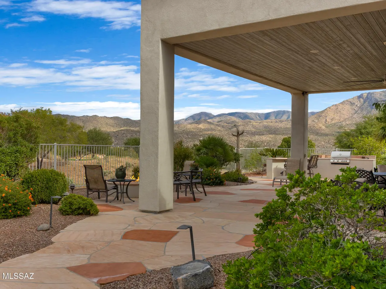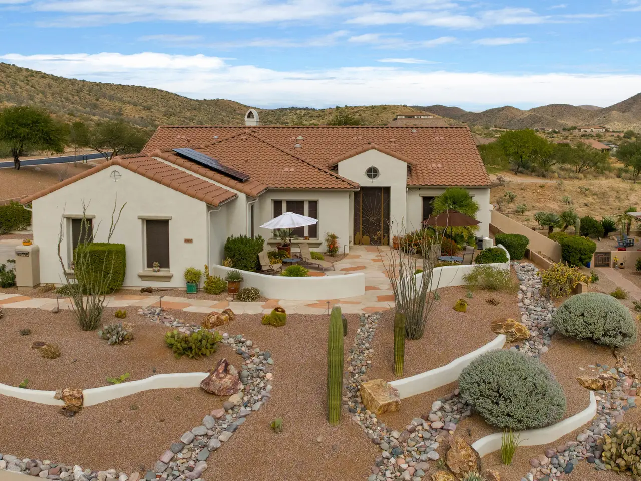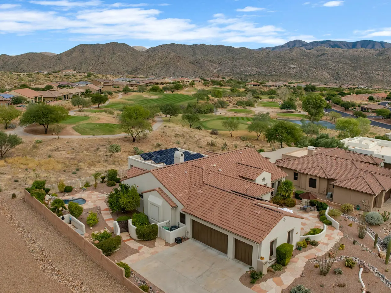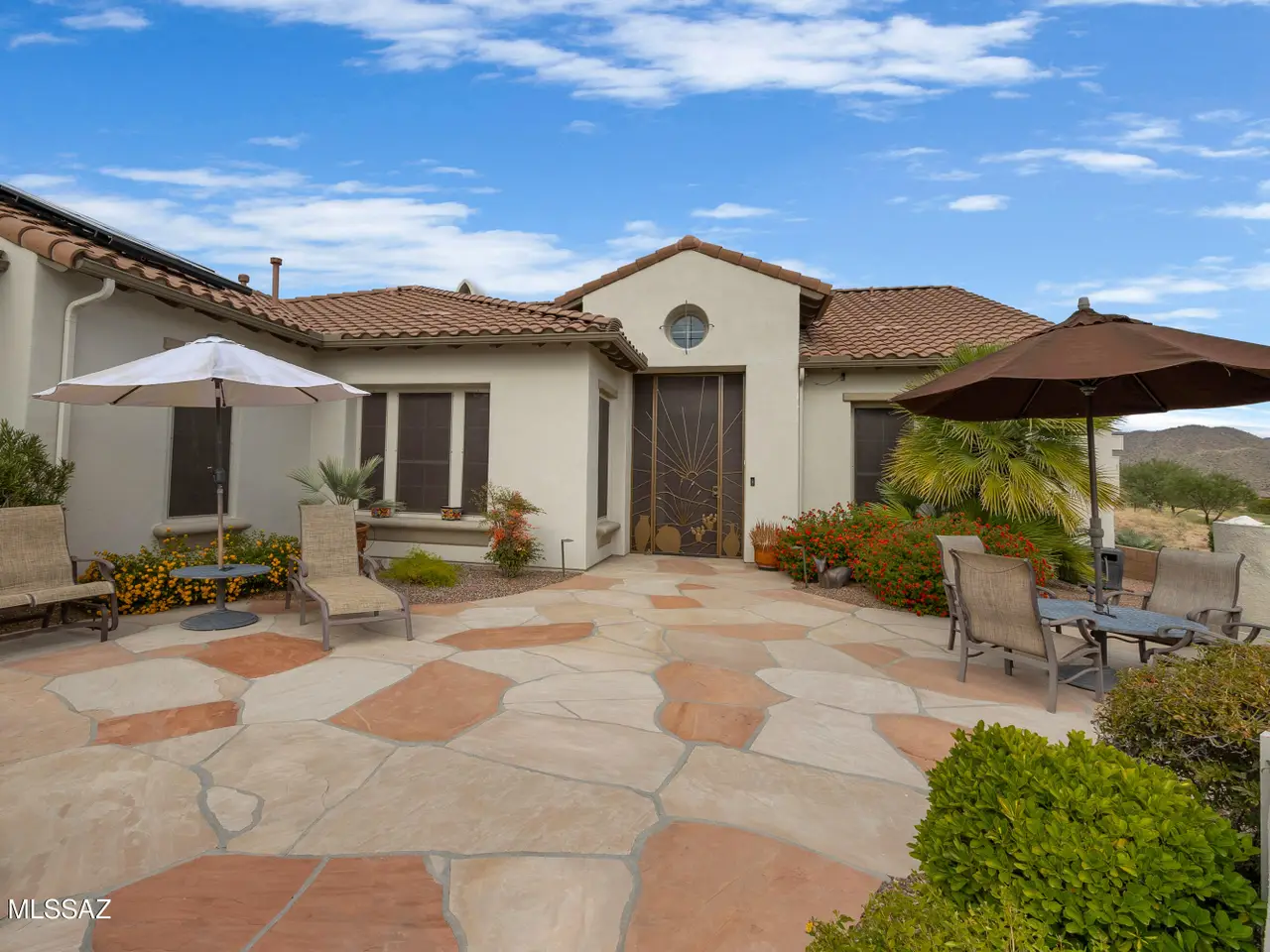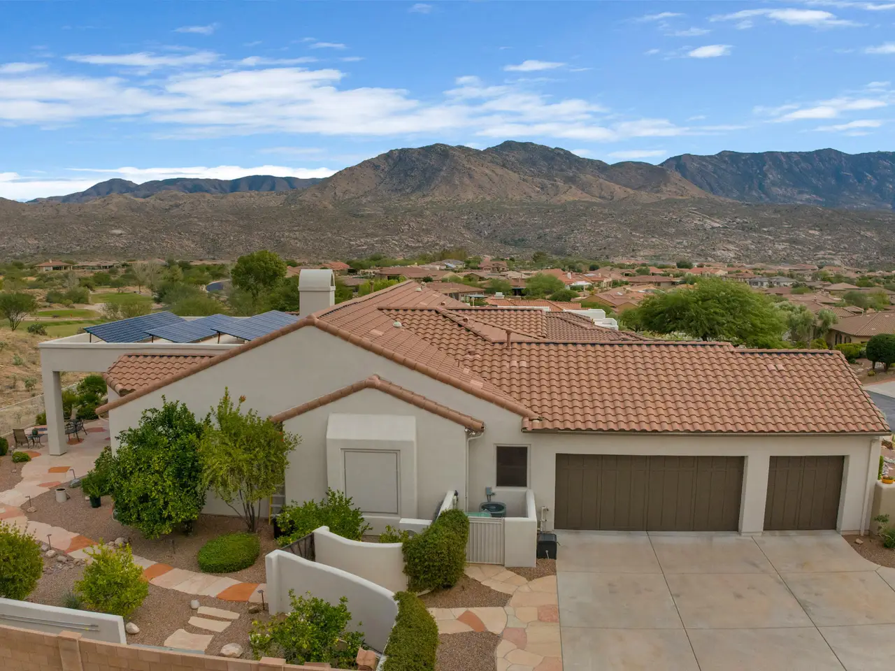 Highly upgraded SABINO model sits above the 11th hole and 12th tee box of The Preserve golf course with sweeping views of the Catalina Mountains from both the front courtyard and the expanded rear patio. Home features an owned 9.5kW solar system, Tesla Powerwalls, 2023 Trane 18 seer HVAC system, new water heater and R30 insulation. Kitchen has a custom cabinet, quartz countertop, built-in ice maker and wine cooler. Rear patio roof has been extended 8ft with tongue and groove ceiling. 2 Bromic gas heaters and flagstone patio. Large entertaining backyard has Pebbletec spool, rock waterfall, fire pit, BBQ island that seats six and endless mountain views. Also has a side load garage and windows have sun screens. Contact today for your private showing.