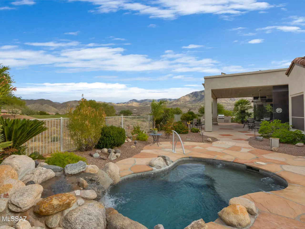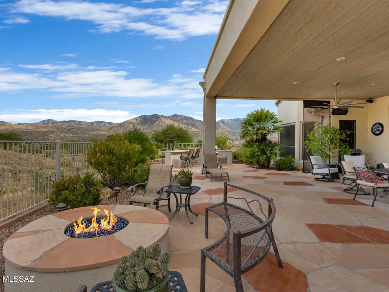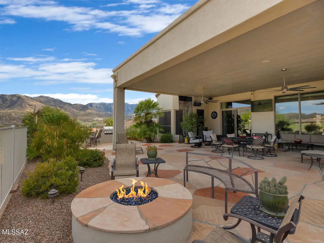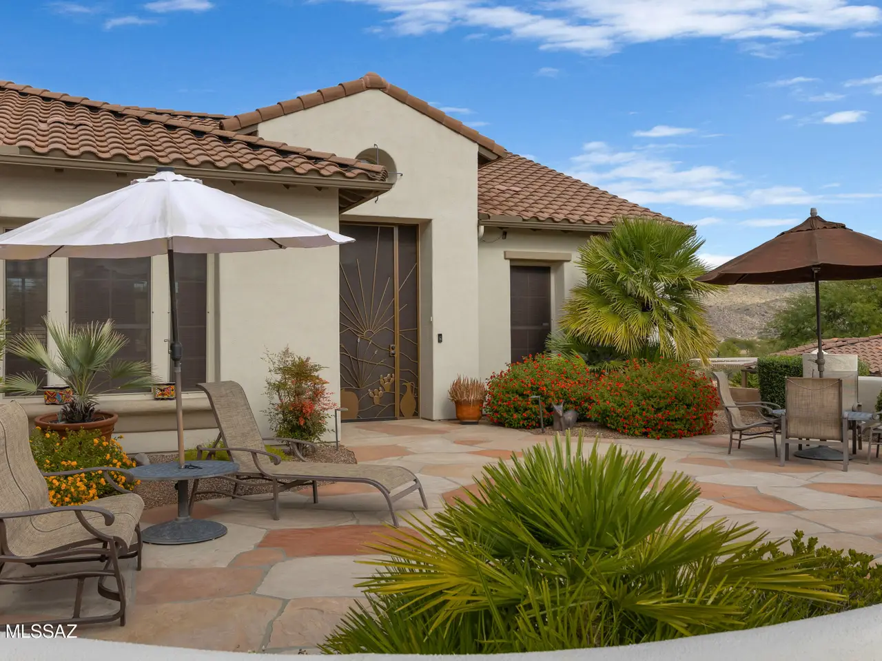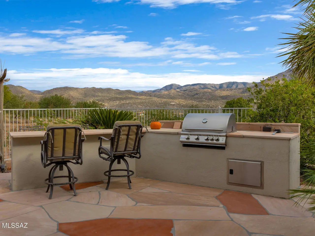 Highly upgraded SABINO model sits above the 11th hole and 12th tee box of The Preserve golf course with sweeping views of the Catalina Mountains from both the front courtyard and the expanded rear patio. Home features an owned 9.5kW solar system, Tesla Powerwalls, 2023 Trane 18 seer HVAC system, new water heater and R30 insulation. Kitchen has a custom cabinet, quartz countertop, built-in ice maker and wine cooler. Rear patio roof has been extended 8ft with tongue and groove ceiling. 2 Bromic gas heaters and flagstone patio. Large entertaining backyard has Pebbletec spool, rock waterfall, fire pit, BBQ island that seats six and endless mountain views. Also has a side load garage and windows have sun screens. Contact today for your private showing.