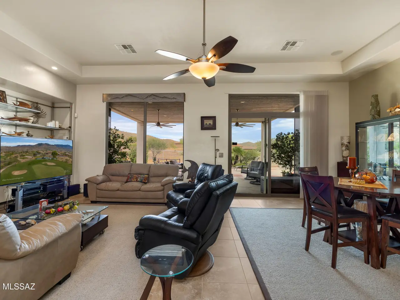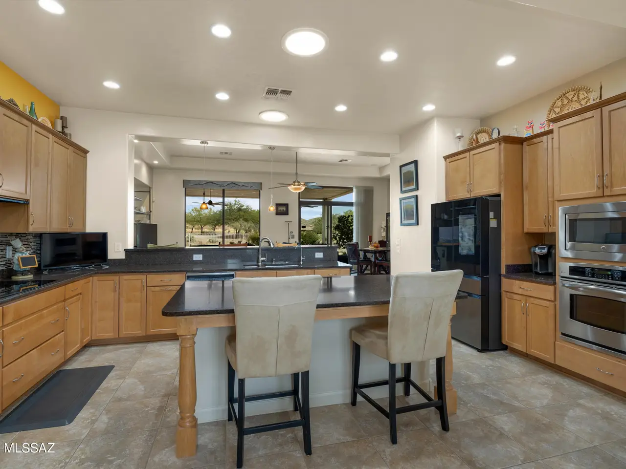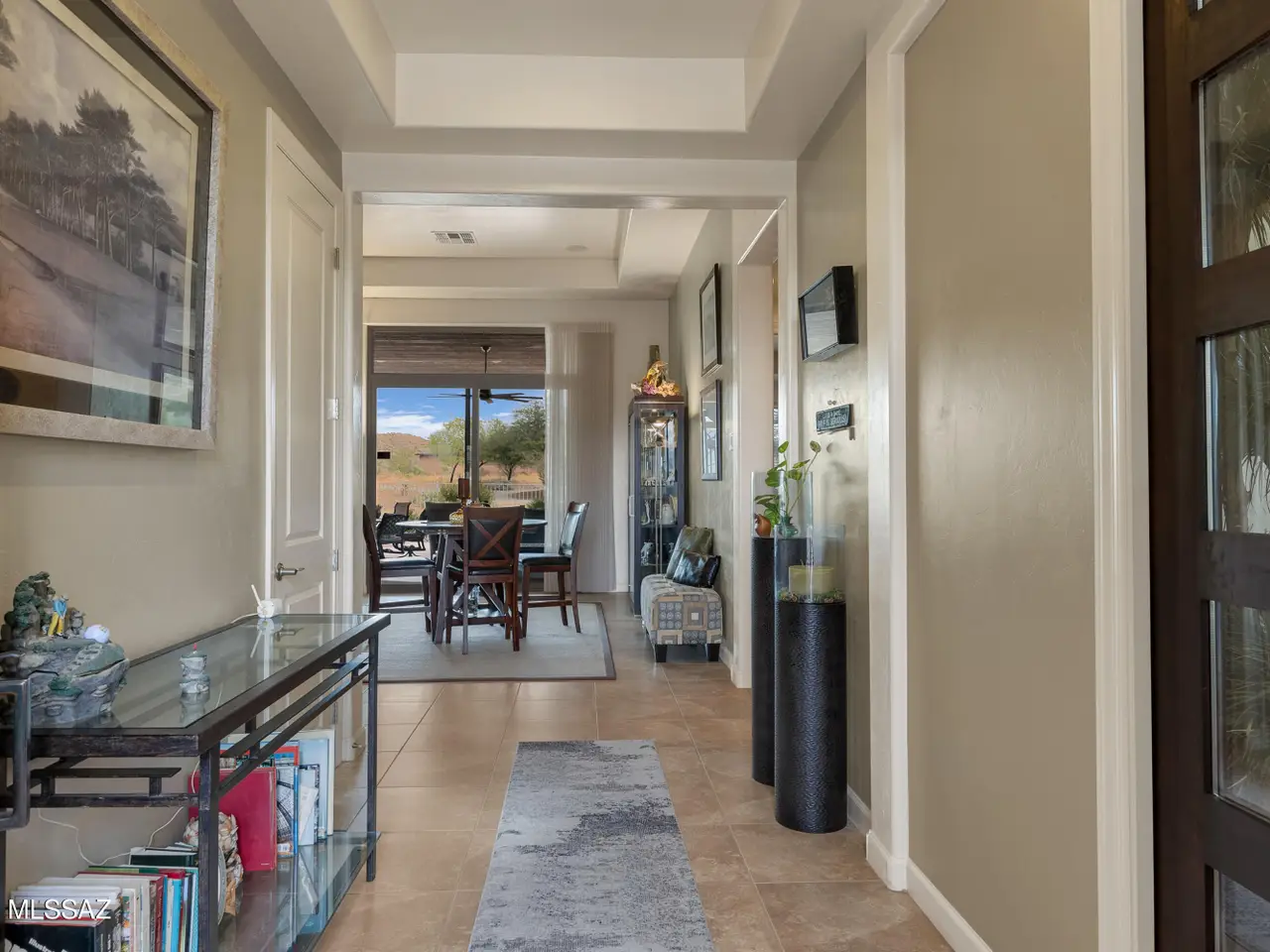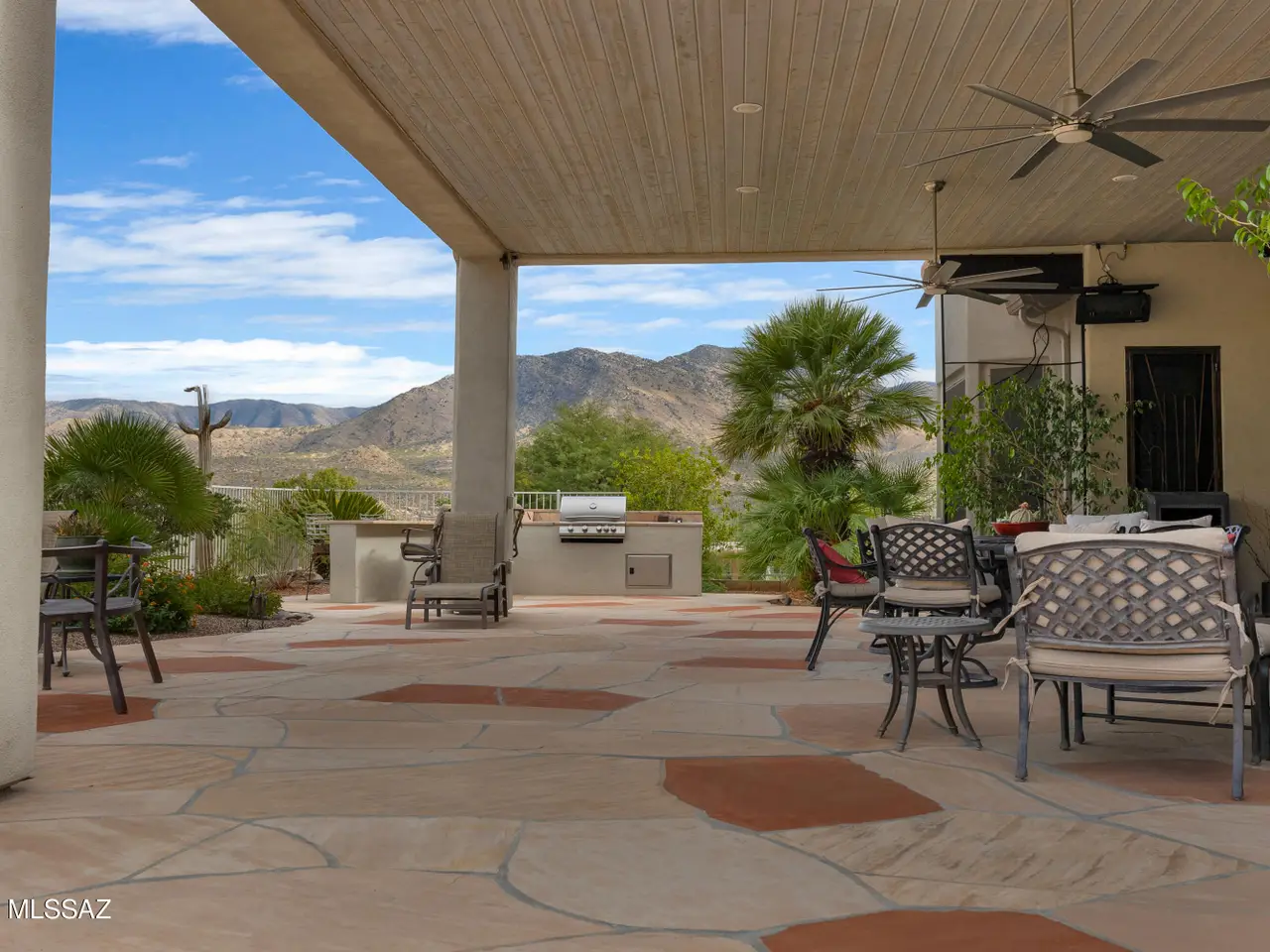 Highly upgraded SABINO model sits above the 11th hole and 12th tee box of The Preserve golf course with sweeping views of the Catalina Mountains from both the front courtyard and the expanded rear patio. Home features an owned 9.5kW solar system, Tesla Powerwalls, 2023 Trane 18 seer HVAC system, new water heater and R30 insulation. Kitchen has a custom cabinet, quartz countertop, built-in ice maker and wine cooler. Rear patio roof has been extended 8ft with tongue and groove ceiling. 2 Bromic gas heaters and flagstone patio. Large entertaining backyard has Pebbletec spool, rock waterfall, fire pit, BBQ island that seats six and endless mountain views. Also has a side load garage and windows have sun screens. Contact today for your private showing.