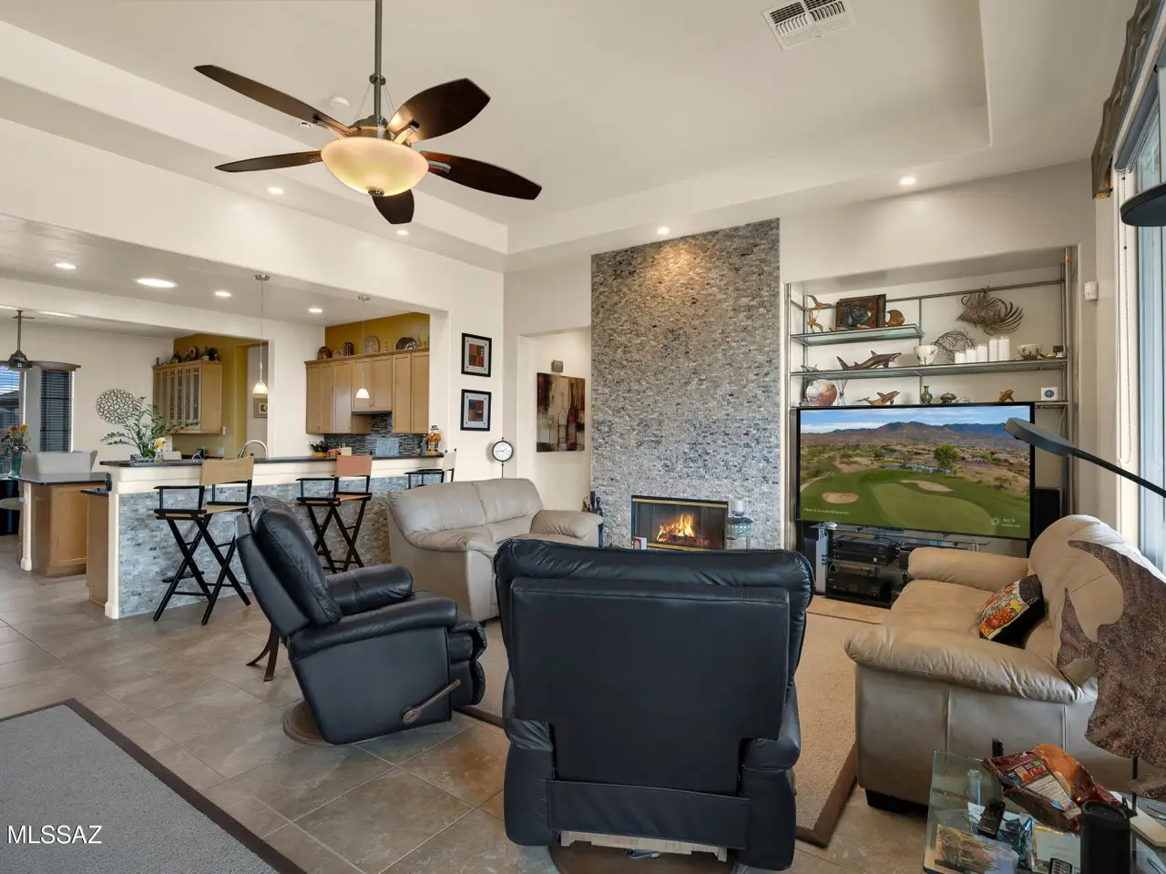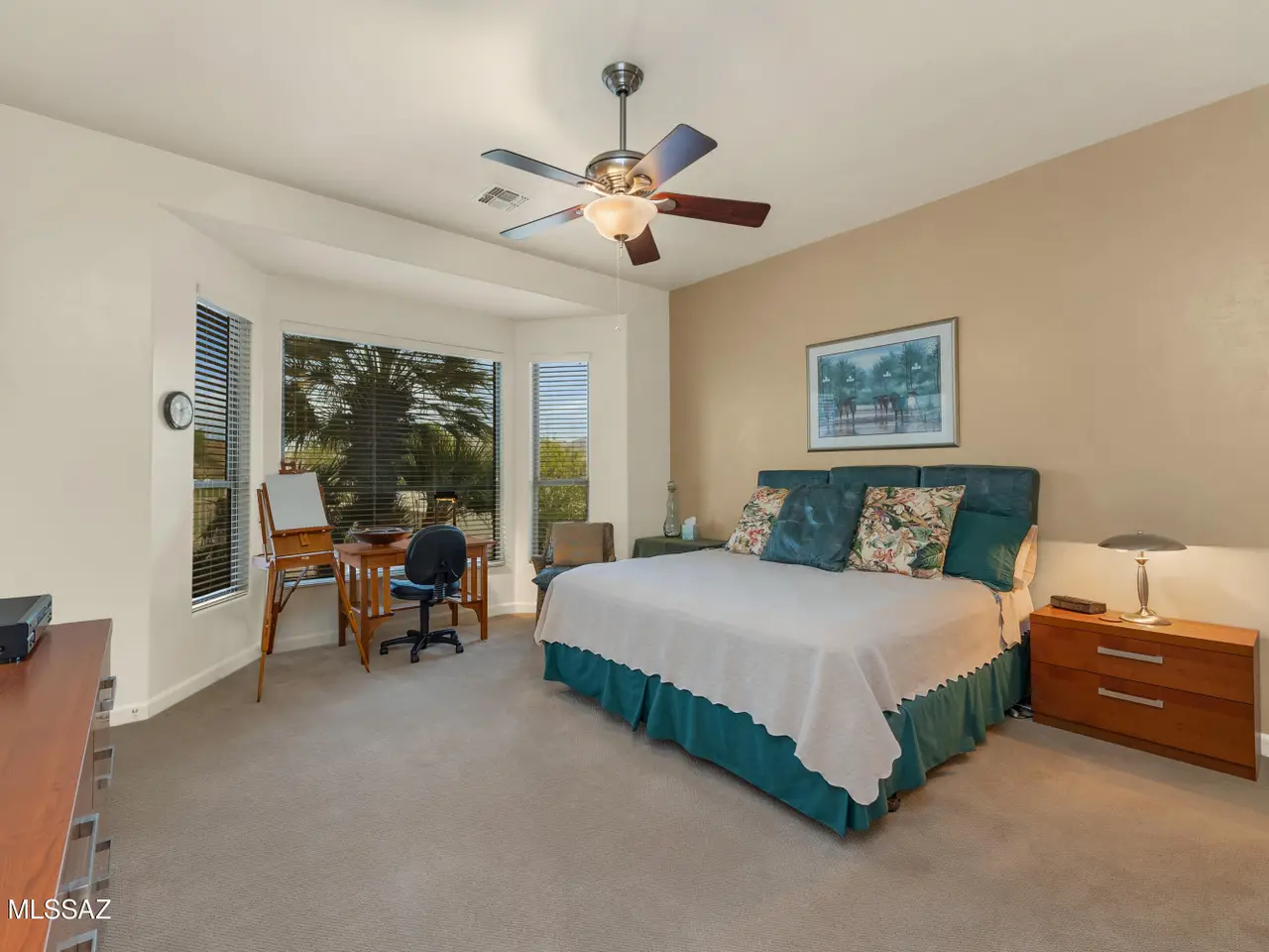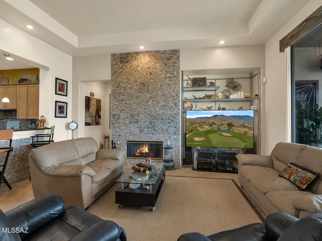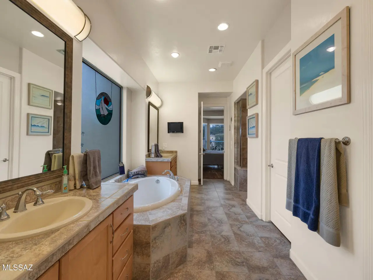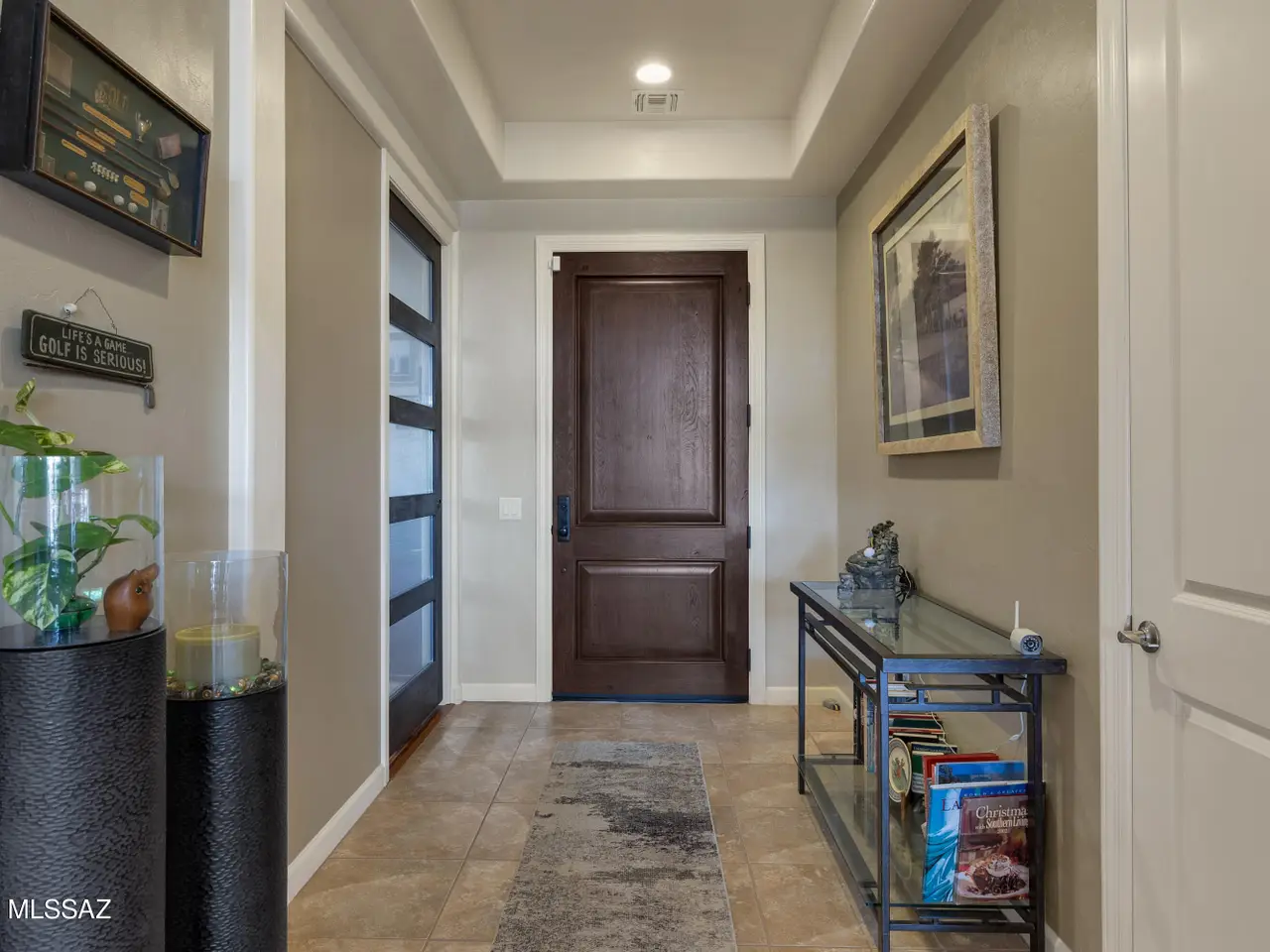 Highly upgraded SABINO model sits above the 11th hole and 12th tee box of The Preserve golf course with sweeping views of the Catalina Mountains from both the front courtyard and the expanded rear patio. Home features an owned 9.5kW solar system, Tesla Powerwalls, 2023 Trane 18 seer HVAC system, new water heater and R30 insulation. Kitchen has a custom cabinet, quartz countertop, built-in ice maker and wine cooler. Rear patio roof has been extended 8ft with tongue and groove ceiling. 2 Bromic gas heaters and flagstone patio. Large entertaining backyard has Pebbletec spool, rock waterfall, fire pit, BBQ island that seats six and endless mountain views. Also has a side load garage and windows have sun screens. Contact today for your private showing.
