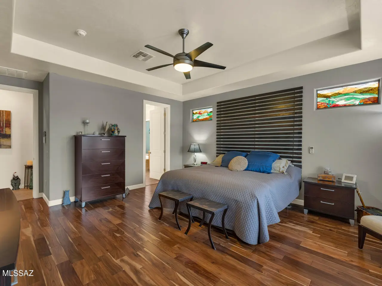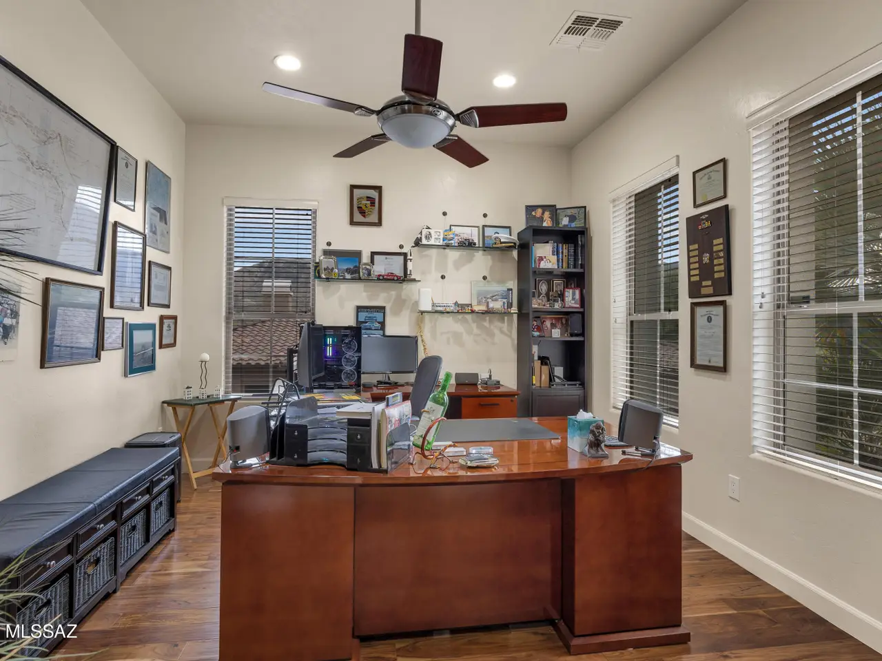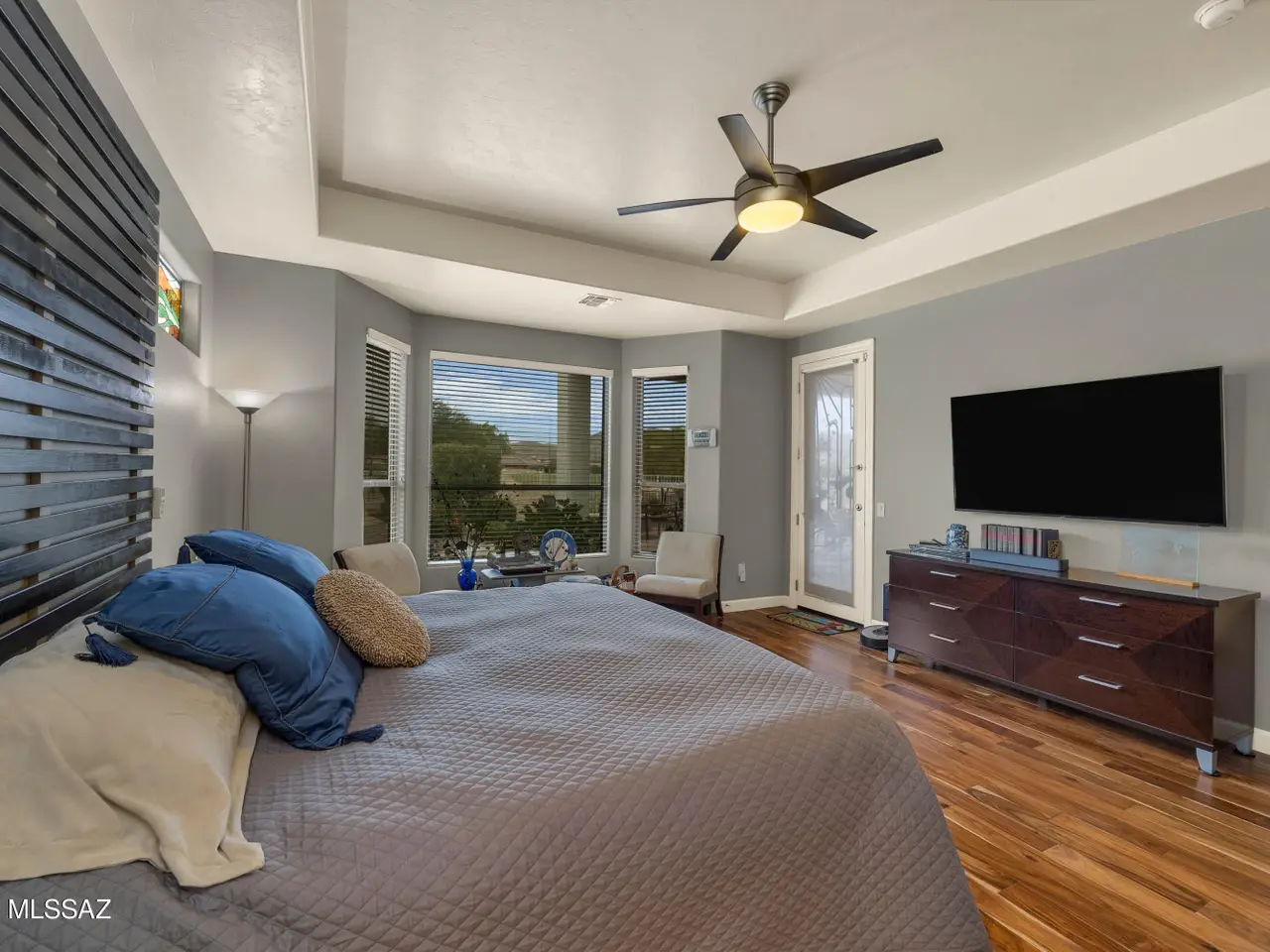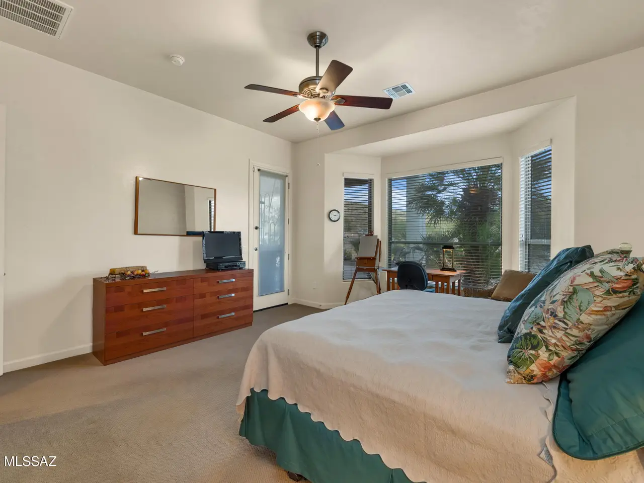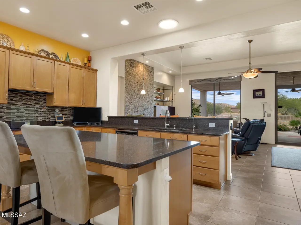 Highly upgraded SABINO model sits above the 11th hole and 12th tee box of The Preserve golf course with sweeping views of the Catalina Mountains from both the front courtyard and the expanded rear patio. Home features an owned 9.5kW solar system, Tesla Powerwalls, 2023 Trane 18 seer HVAC system, new water heater and R30 insulation. Kitchen has a custom cabinet, quartz countertop, built-in ice maker and wine cooler. Rear patio roof has been extended 8ft with tongue and groove ceiling. 2 Bromic gas heaters and flagstone patio. Large entertaining backyard has Pebbletec spool, rock waterfall, fire pit, BBQ island that seats six and endless mountain views. Also has a side load garage and windows have sun screens. Contact today for your private showing.