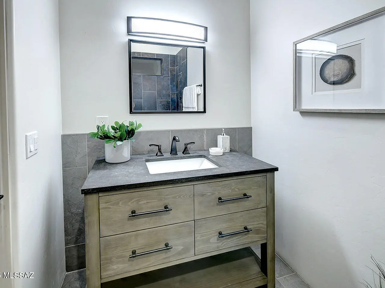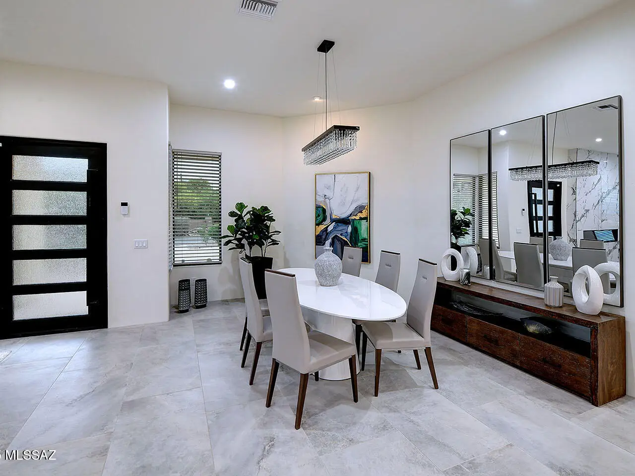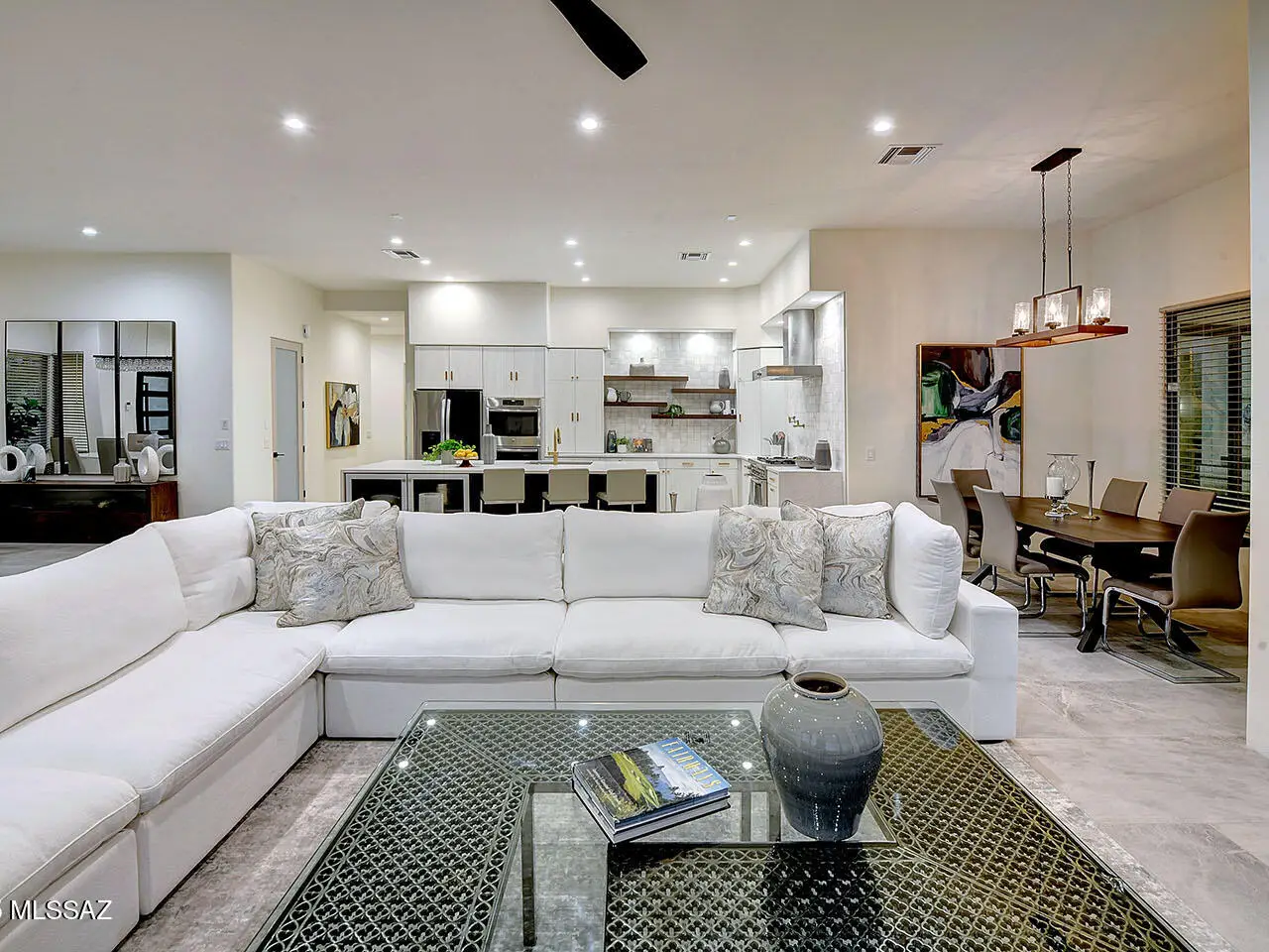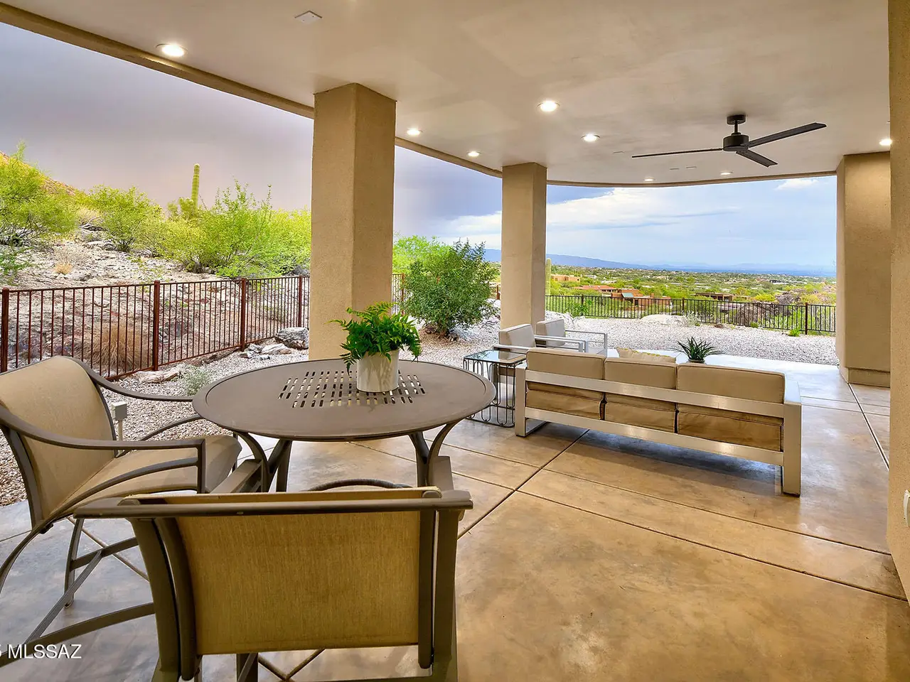 Stunning, like-new 2023 contemporary perched on La Paloma Drive, the highest street in the coveted Coronado Foothills Estates of Tucson's Catalina Foothills. Set on a glorious one-acre lot embraced by the Catalina Mountains and Coronado National Forest, this 3, 605 sq. ft. residence offers 4 bedrooms, 4.5 baths, and a 3-car garage--designed to showcase sweeping city lights, mountain vistas, and dramatic sunrise and sunset views from every room. Built by renowned master builder Paul Rondelli, the home welcomes you into a striking great room with soaring ceilings, walls of glass, porcelain tile flooring, a sleek fireplace, and an open dining area--perfect for entertaining. The chef's kitchen is both functional and modern, featuring stainless steel appliances, a spacious center island with a breakfast bar, abundant counter space, and a walk-in pantry. The luxurious primary suite is a private retreat with a fireplace, direct access to the covered patio, and a spa-inspired bathroom boasting quartz finishes, a walk-in glass shower, a soaking tub, and a generous walk-in closet with custom built-ins. Each bedroom has an en-suite bath and a walk-in closet. Additional highlights include a large laundry room with a sink, and a light-filled garage with windows and epoxy coated floors. Located within the Catalina Foothills School District #16, this home offers the perfect blend of contemporary style, move-in-ready convenience, and unrivaled views, all just minutes from shopping, dining, and city amenities, yet peacefully above the bustle of daily life.