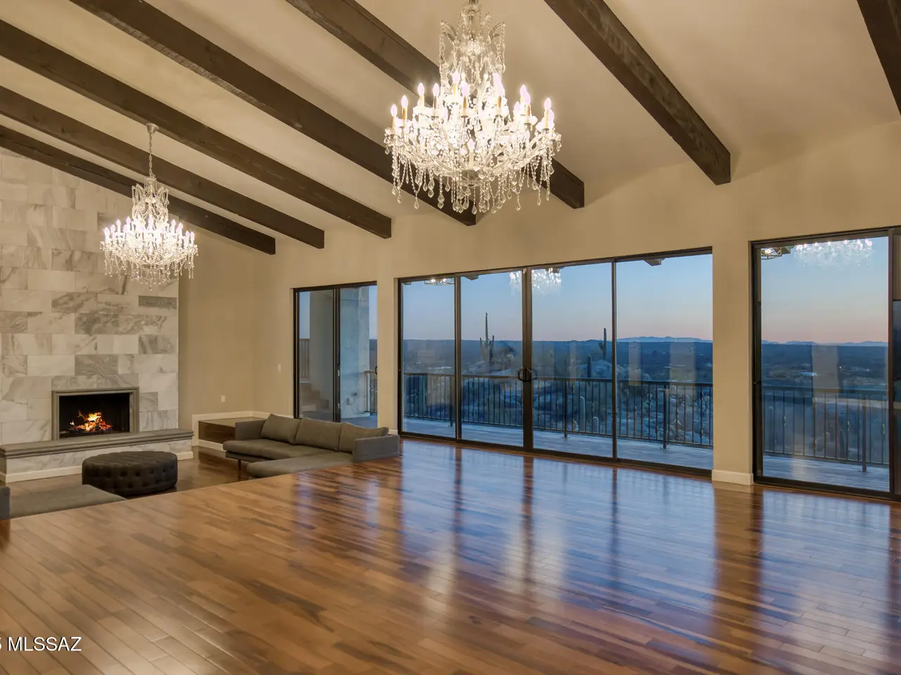 Panoramic views of mtn, city & Tanque Verde valley beckon through walls of windows adorning this luxurious home beautifully set on 7.22 hillside acres in the heart of La Cebadilla Estates. Gleaming pecan wood floors, etched marble FP, fabulous kitchen with 48-inch dual fuel range, double ovens, 2 DW, separate column refrigerator/freezer, oversized island w/bar seating, solid wood cabinets & casual dining w/jaw-dropping views. Full remodel also included luxe baths throughout; split plan offers romantic owner's suite w/FP, city lights & ''wow'' spa-like bath w/soaking tub & pool access; the lower level is great entertaining or kid hang-out space w/exercise rm, wet bar, potential media room. All new exterior decking in front & bath for 2053 covered outdoor living enjoyment.