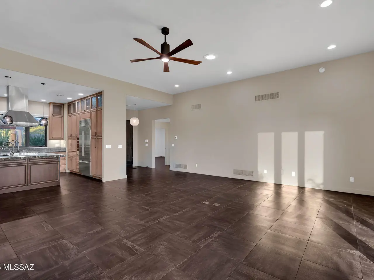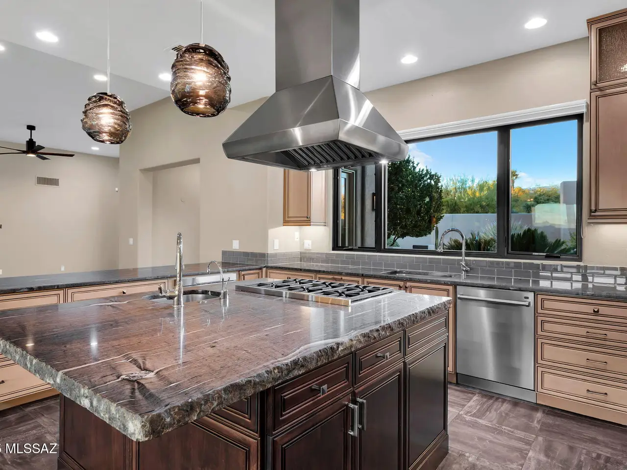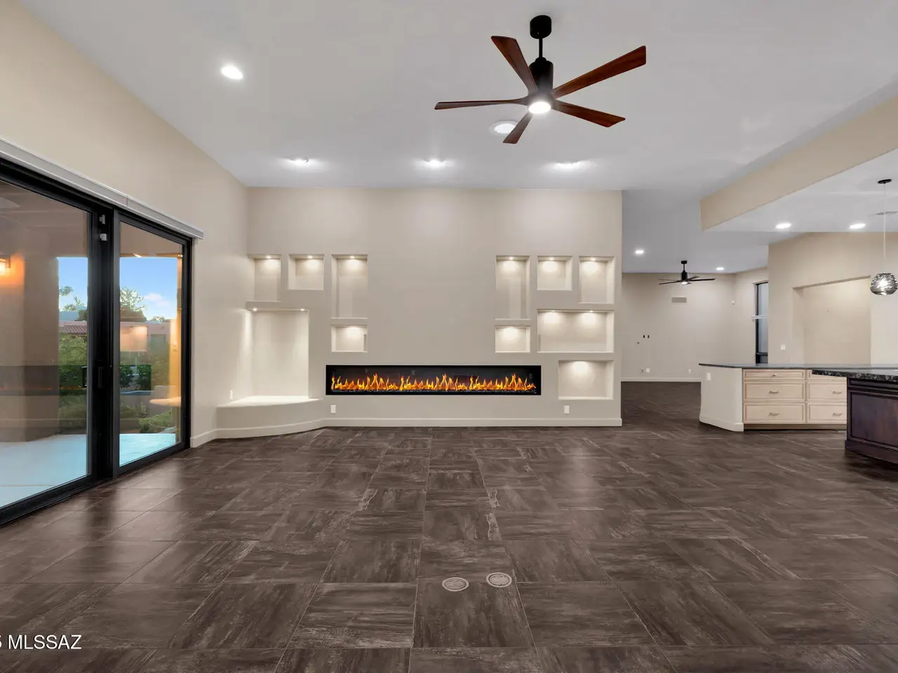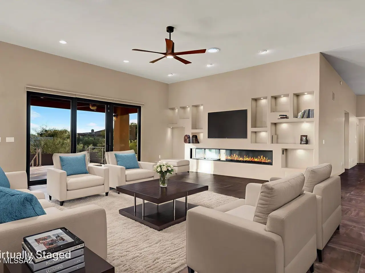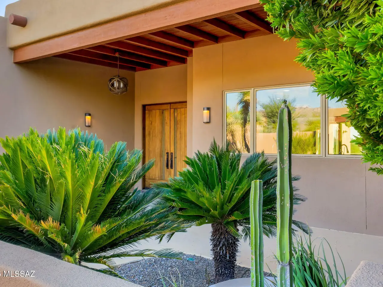 A superb blend of southwestern and contemporary architecture and design makes this an ideal retreat on the grounds of, the recipient of Michelin Guide honors, Canyon Ranch Health and Fitness Resort. The current improvements, additions, and remodeling done with delicate simplicity and quality construction adhering to minute details in its functionality. A comfortable open floor plan flows seamlessly from the living room through the kitchen and the dining area into the rest of this 4 bedrooms and 4 bathroom house. A wide streamlined 10 ft electric fireplace adds soothing warmth to the space. Fine quality of the custom-designed kitchen cabinets, granite tops and the high-end appliances is immediately apparent. Primary Suite includes a workout studio, floor to ceiling windows inviting in landscape and the Rincon Mountain views. Second and third bedrooms enjoy ensuite bathrooms and spacious walk-in closets. High-end porcelain tiles flooring, except for the fitness room, laid with special luxury vinyl plank flooring recommended for heavy workouts and waterproof surfaces provides comfort, safety and flexibility. Enjoy the views while entertaining friends on your multi-level travertine tiled patio descending towards a custom designed pool and spa. Desert plants and mature saguaro cacti breathe life into these immaculately landscaped grounds. The detached pool house/studio has full bathroom and a closet. Enjoy total immersion into Canyon Ranch healthy living philosophy and recharge and rejuvenate. Start your early morning walk on the iconic 2 mile loop followed by plethora of group fitness classes, meditation, yoga, pilates, aerobics and strength at the spa and gym facilities. Treat yourself to a massage, consult with expert practitioners, counselors and physicians in areas of nutrition, integrative and traditional medicine. Enjoy organized desert and mountain hikes and cycling. Build an appetite for healthy, delicious meals at one of the two dining venues. All at your fingertips.