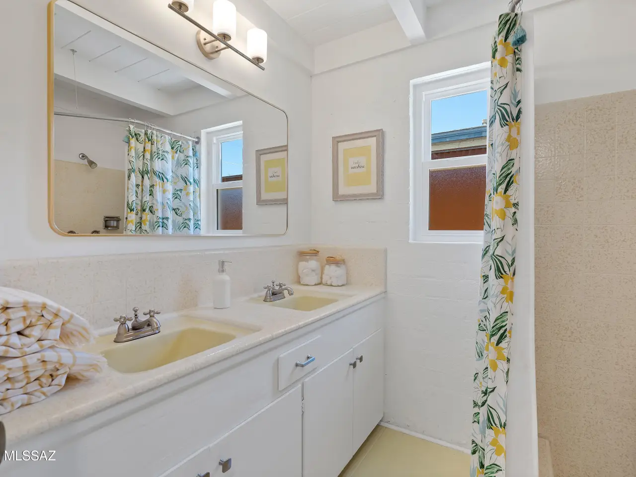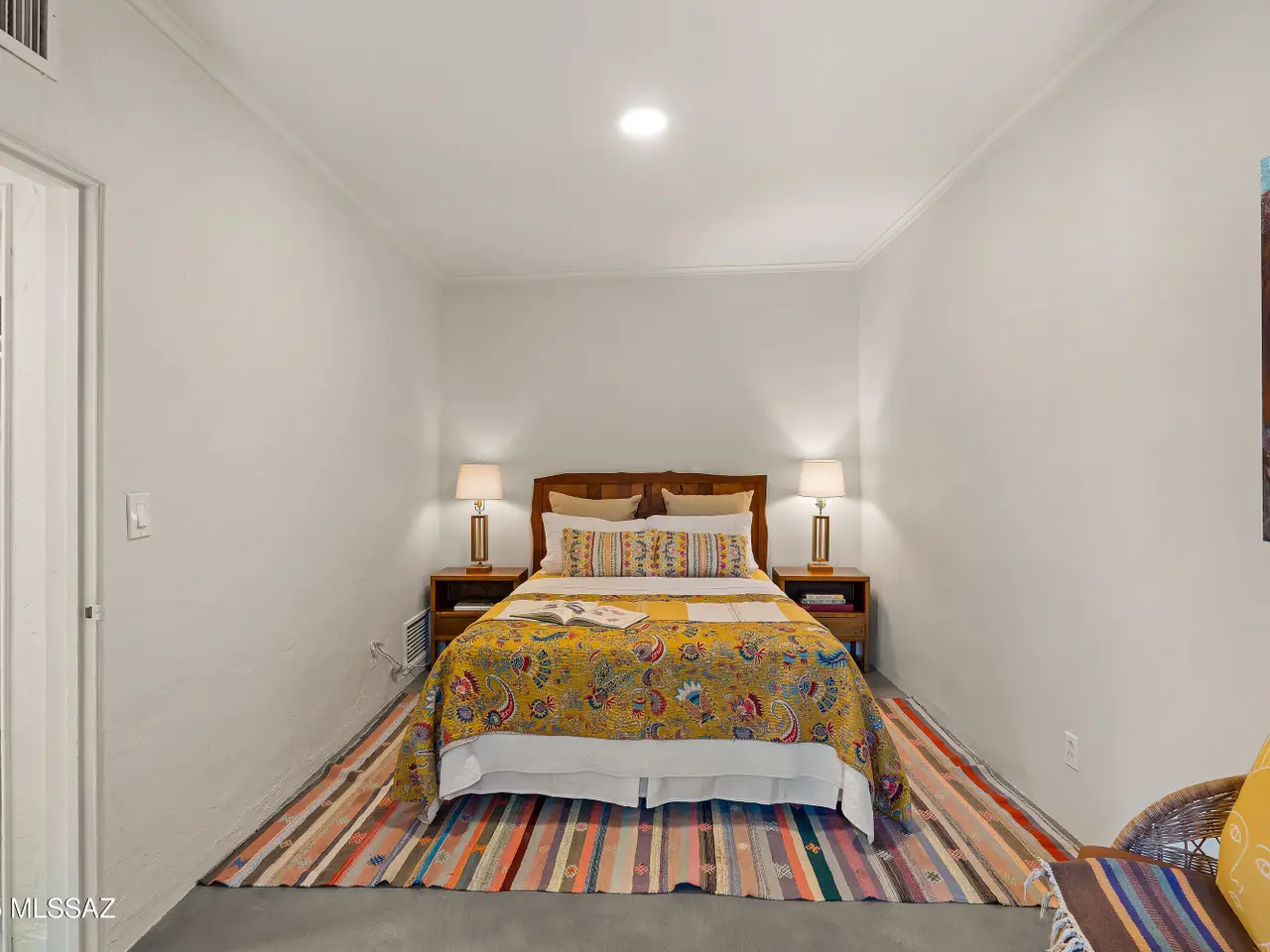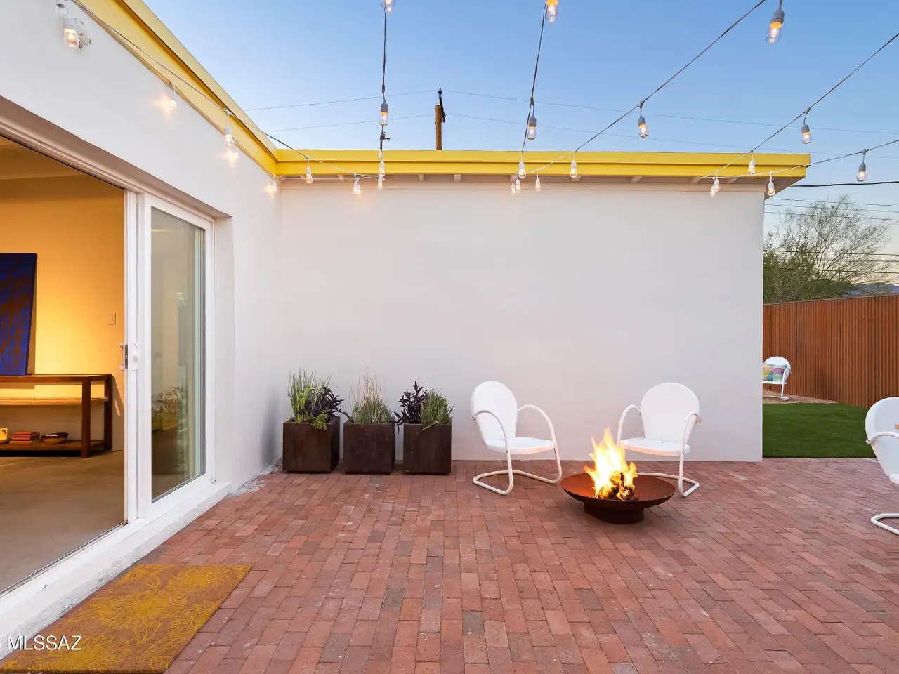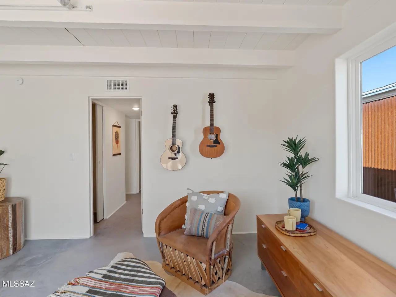 This stunningly reimagined home in coveted Catalina Vista exhibits a beautiful balance of its historic architectural roots and the modern amenities. Each space is infused with era-sensitive materials and functional upgrades. With great care the current owners have replaced systems and refurbished character-rich details. New roof, HVAC units, water heaters, lighting, landscaping, windows, insulation, concrete floors, premium smooth stucco, and both interior and exterior paint to name just a few. The main home centers around a new kitchen with high-end appliances, honed quartz counters, seating for eight, and a spacious pantry/laundry room adjacent. Wood beamed ceilings, expansive natural light through the many sliding glass doors, and period lighting exude the Mid-Century modern aesthetic classic to the 1950's era of this home. The primary suite has two walk-in closets, a private patio and spa retreat style bathroom with a dual sinks and a private commode. Three additional bedrooms and a den/office complete the main home. Across the brick patio or conveniently through the foyer the uncommonly spacious guest quarters feature one bedroom, a walk-in closet and kitchenette in the living room. All this just a short distance to the University of Arizona, Banner Hospital, Tahoe Park, and the Arizona Inn.