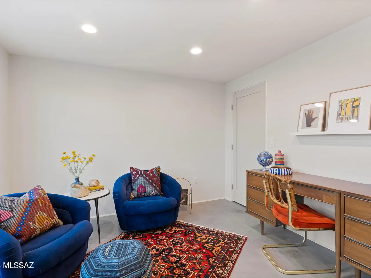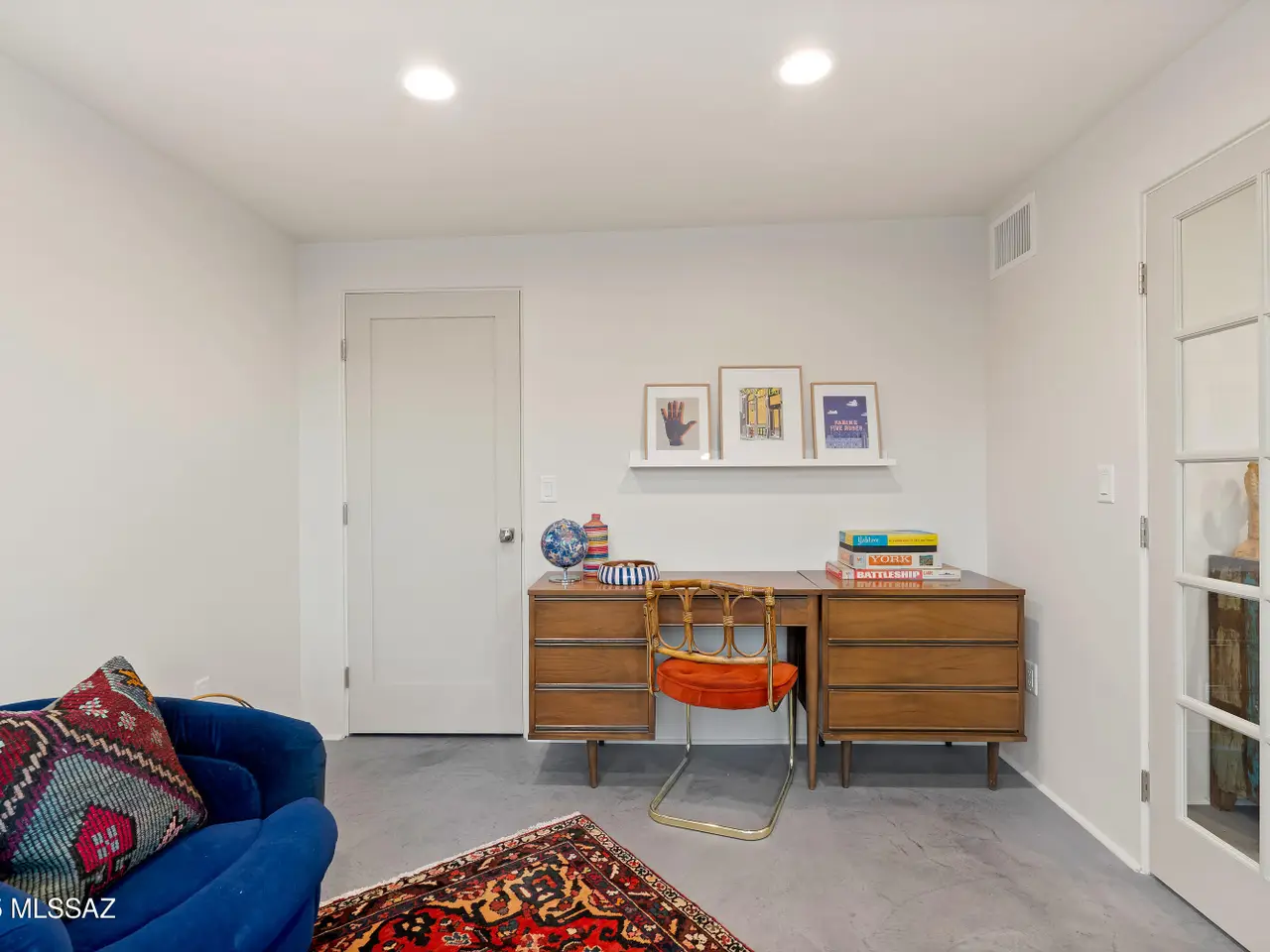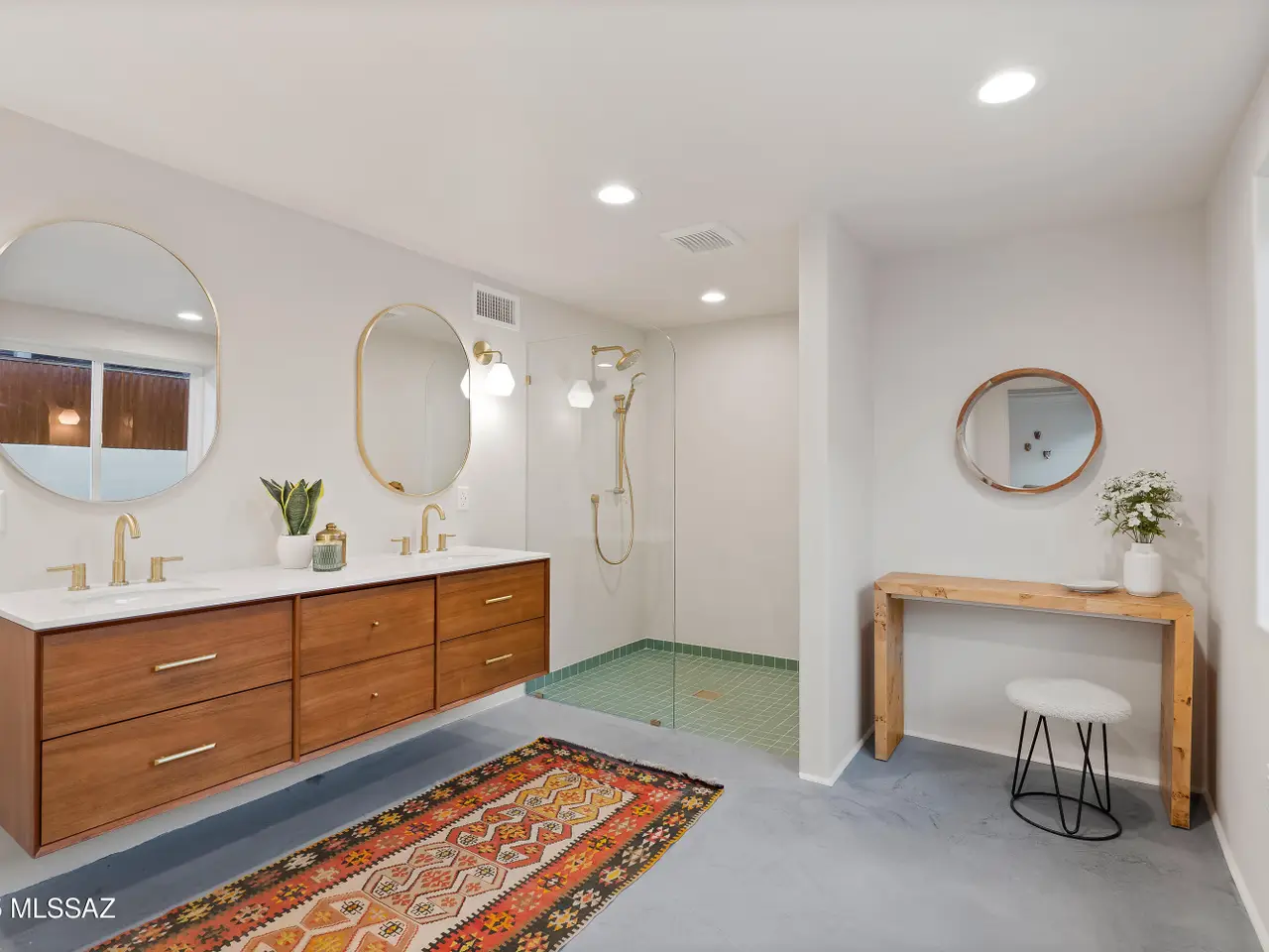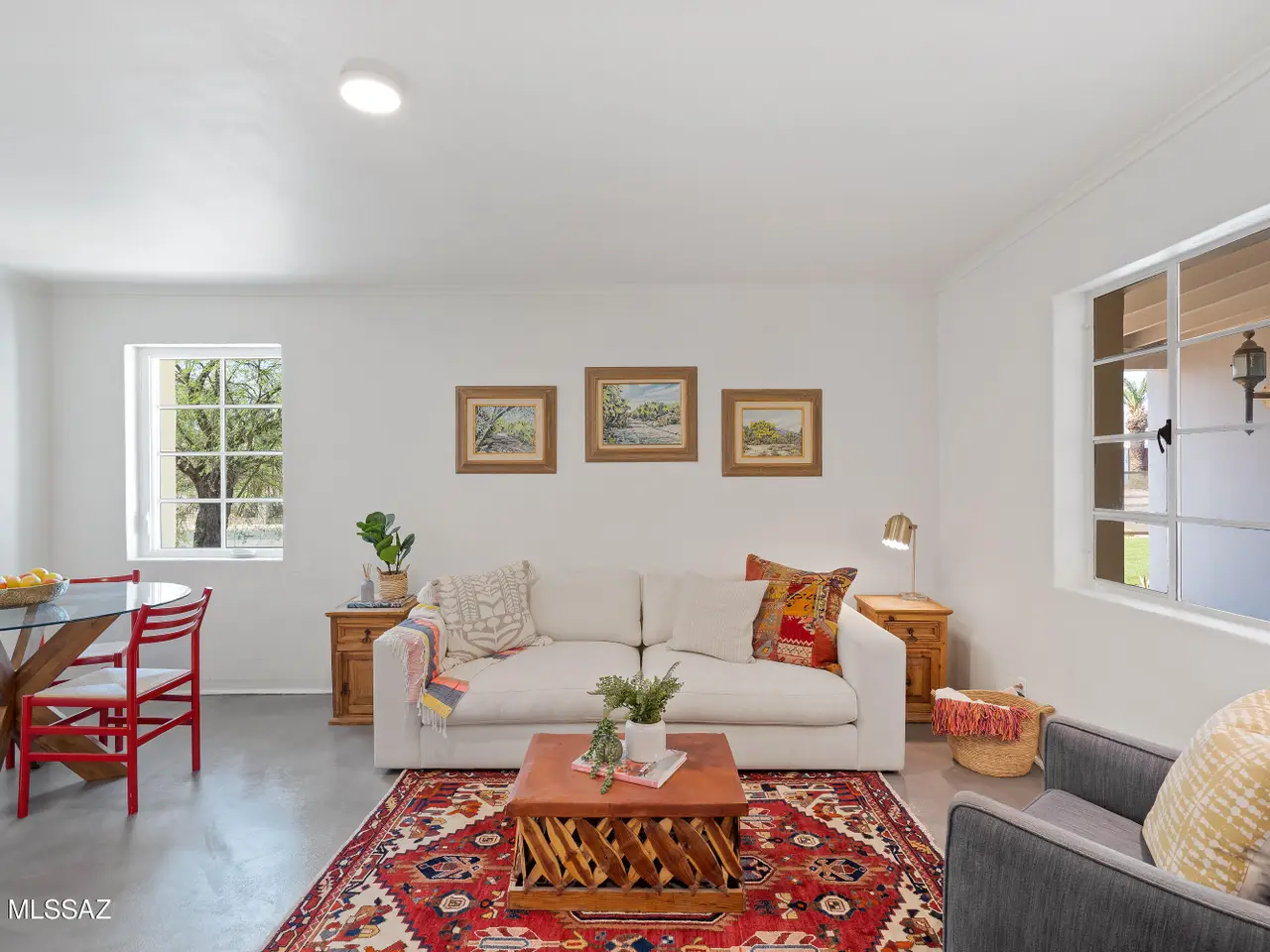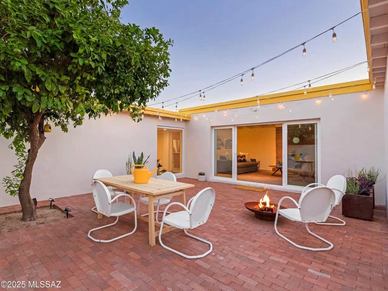 This stunningly reimagined home in coveted Catalina Vista exhibits a beautiful balance of its historic architectural roots and the modern amenities. Each space is infused with era-sensitive materials and functional upgrades. With great care the current owners have replaced systems and refurbished character-rich details. New roof, HVAC units, water heaters, lighting, landscaping, windows, insulation, concrete floors, premium smooth stucco, and both interior and exterior paint to name just a few. The main home centers around a new kitchen with high-end appliances, honed quartz counters, seating for eight, and a spacious pantry/laundry room adjacent. Wood beamed ceilings, expansive natural light through the many sliding glass doors, and period lighting exude the Mid-Century modern aesthetic classic to the 1950's era of this home. The primary suite has two walk-in closets, a private patio and spa retreat style bathroom with a dual sinks and a private commode. Three additional bedrooms and a den/office complete the main home. Across the brick patio or conveniently through the foyer the uncommonly spacious guest quarters feature one bedroom, a walk-in closet and kitchenette in the living room. All this just a short distance to the University of Arizona, Banner Hospital, Tahoe Park, and the Arizona Inn.