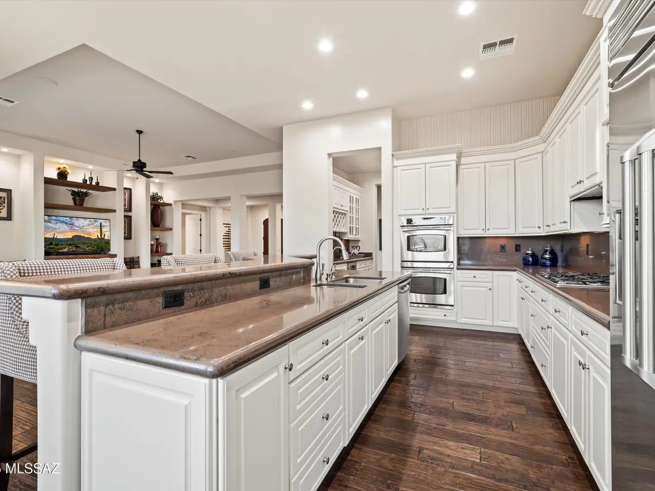 Stunning Golf Course Living in The Preserve! Tierra model w/ casita on a premium golf course lot offering stunning mountain views & easy access to upscale community amenities. Formerly a model home, features a gourmet kitchen w/ premium cabinetry, solid quartz countertops & backsplash, gas range, and a convenient butler's pantry. Spacious great room & den showcase custom built-ins, while the luxurious primary suite includes a soaking tub, oversized shower, makeup vanity, & dual walk-in closets. Guests enjoy a Jack & Jill bath with separate vanities. The 400+ sq ft casita features a fireplace, kitchenette, full bath, and walk-in closet. Outdoor living is ideal w/ a covered patio, pool, & soothing waterfalls. 3-car garage + temperature-controlled workshop complete this must-see home!