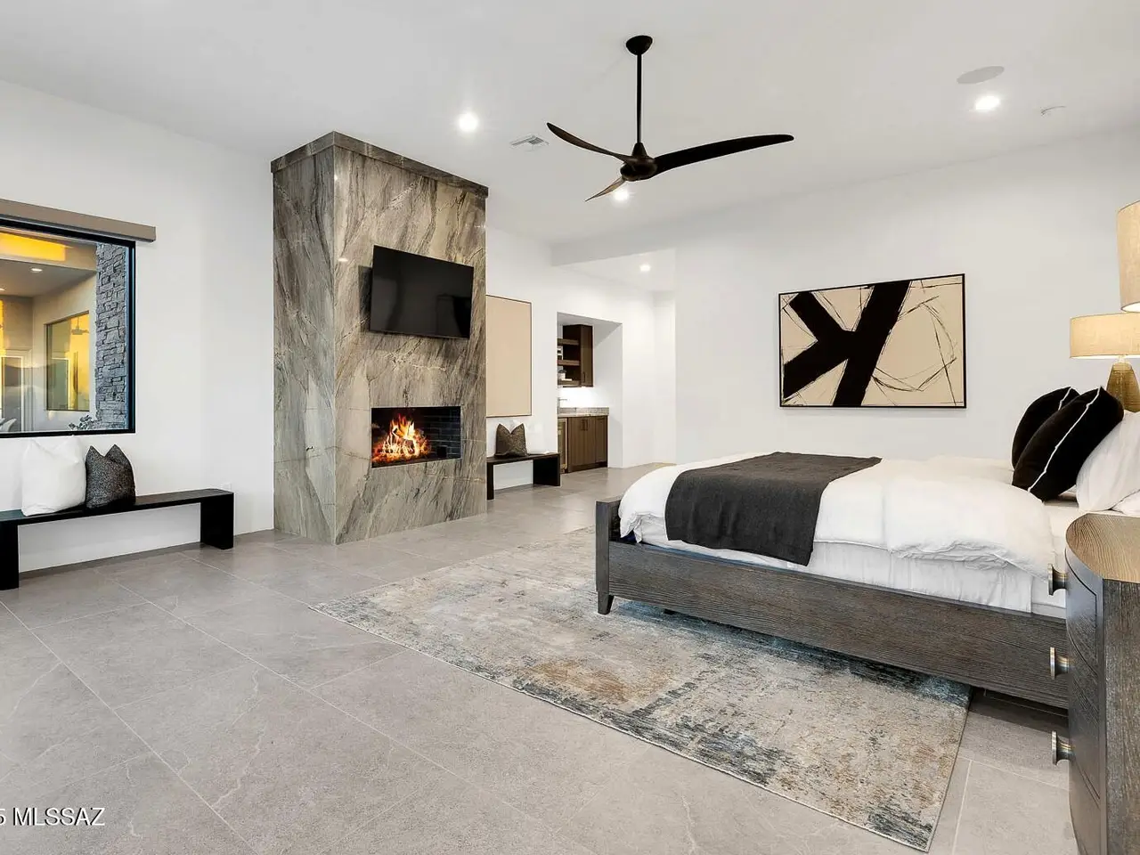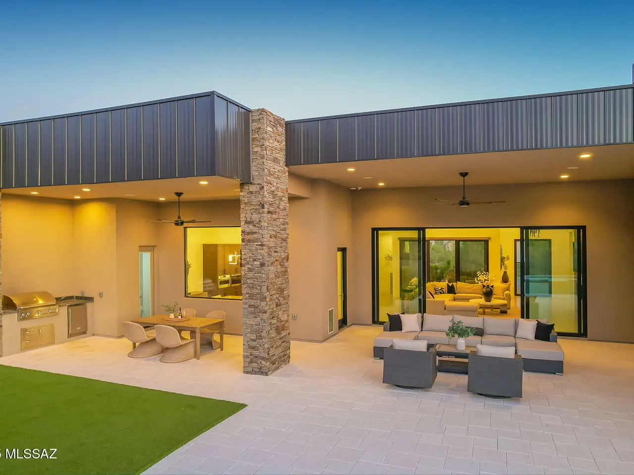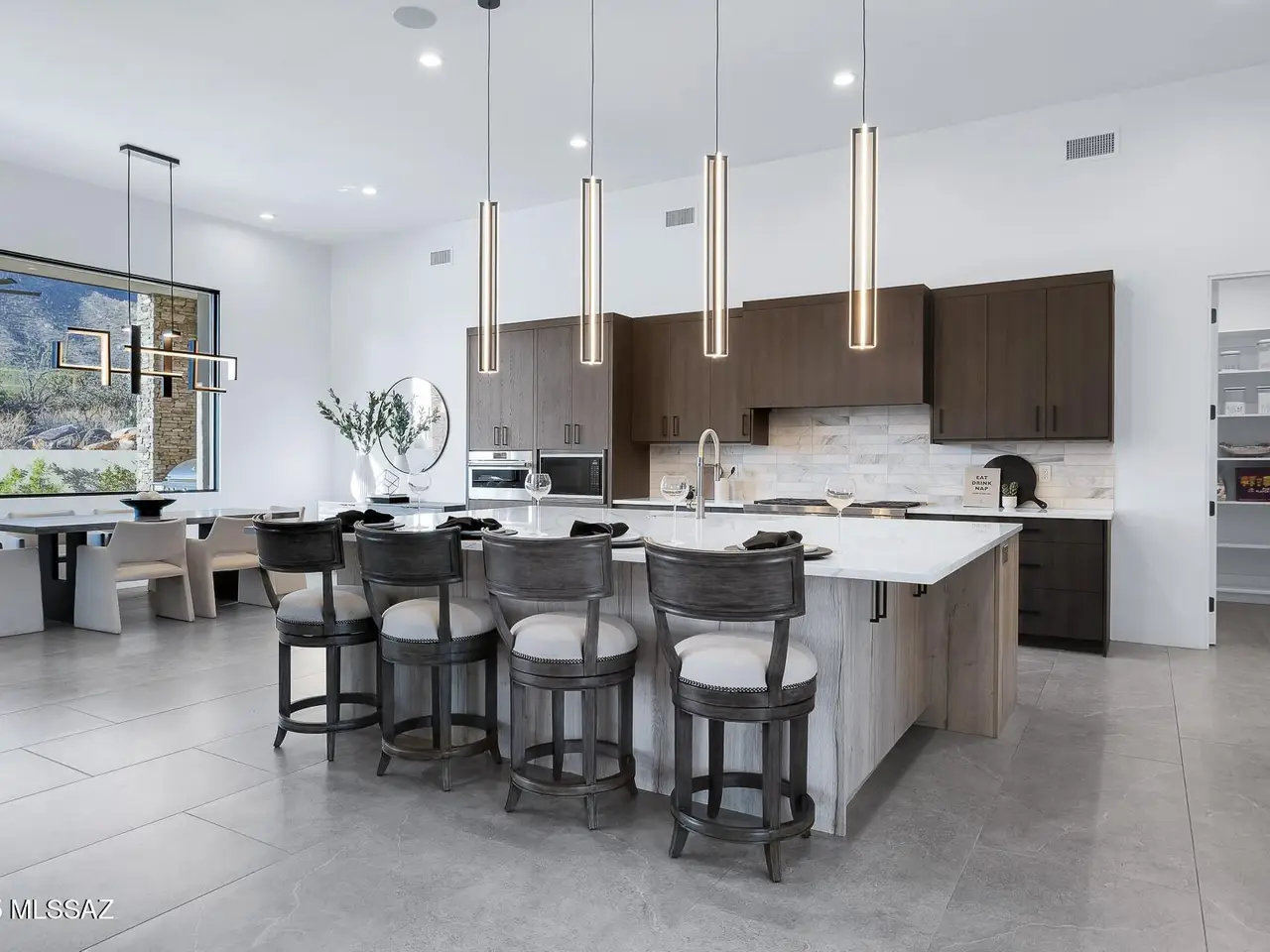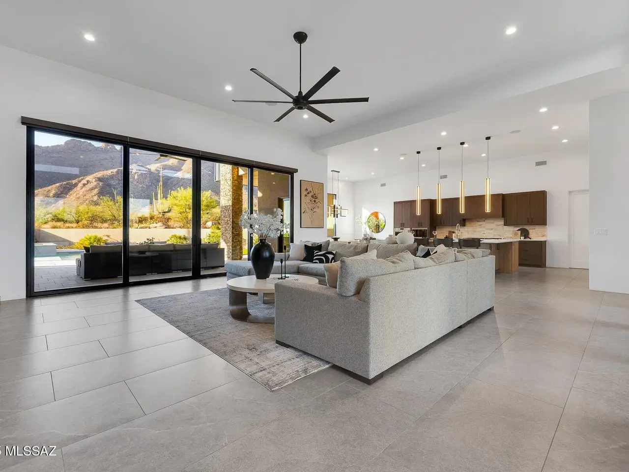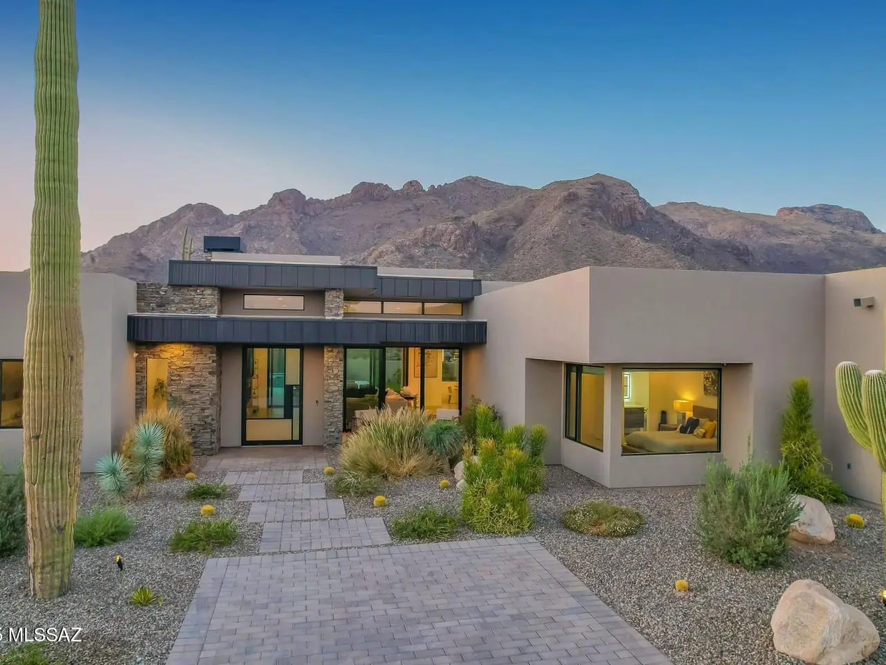 Welcome to the epitome of luxury living in the prestigious, double-gated Sunset Gardens enclave of Pima Canyon Estates. Designed by the renowned Simmons Design Group and completed in 2023, this striking modern residence offers 5189 square feet of masterfully crafted space with breathtaking north-facing views into majestic Pima Canyon. Step inside to find an open-concept layout with high-end finishes, soaring ceilings and brilliant window design providing elegant natural lighting. Four spacious, en-suite bedrooms plus a built-in office and fully equipped home gym, perfect for today's modern lifestyle. Outdoors, enjoy the generously sized Pebble Sheen pool and spa, massive north-facing rear patio and glorious desert sunsets. Auto enthusiasts will appreciate the oversized four-car garage.