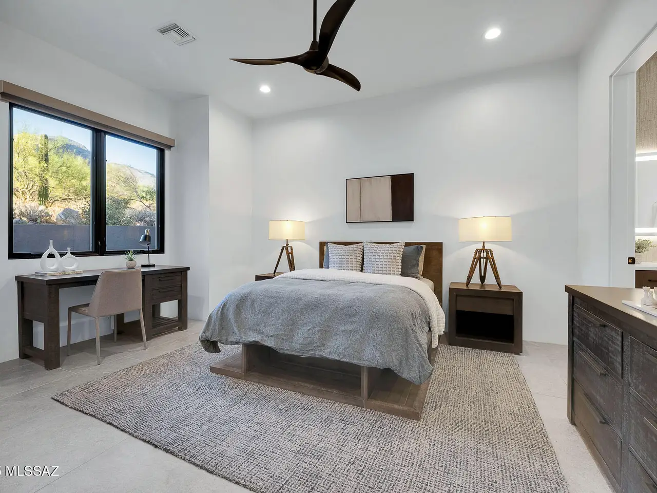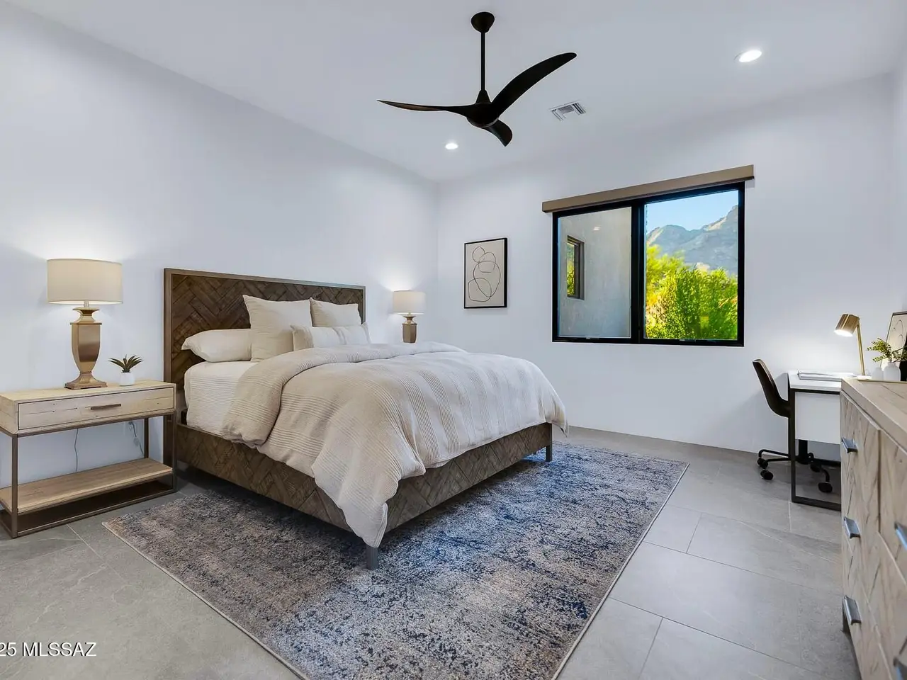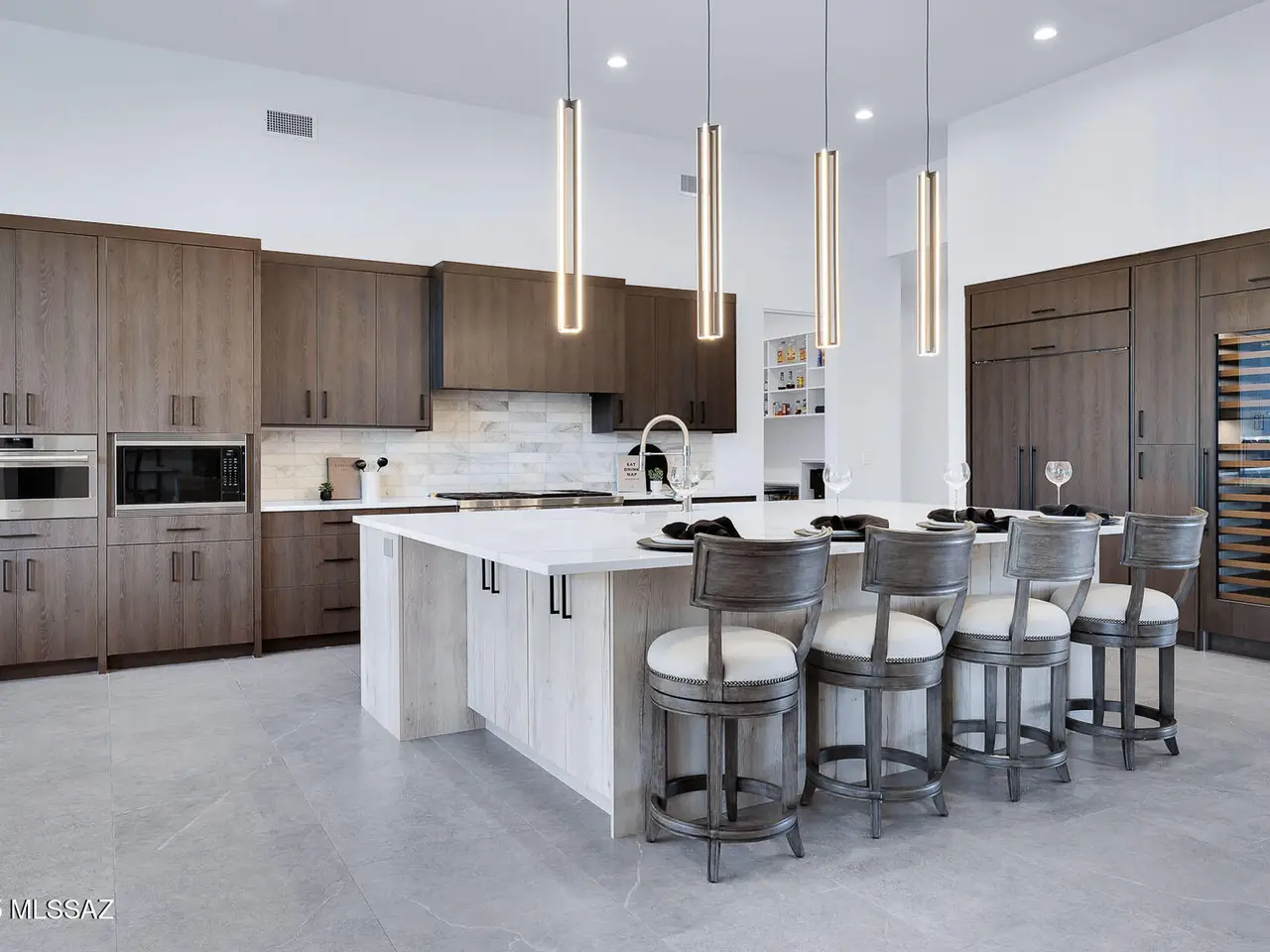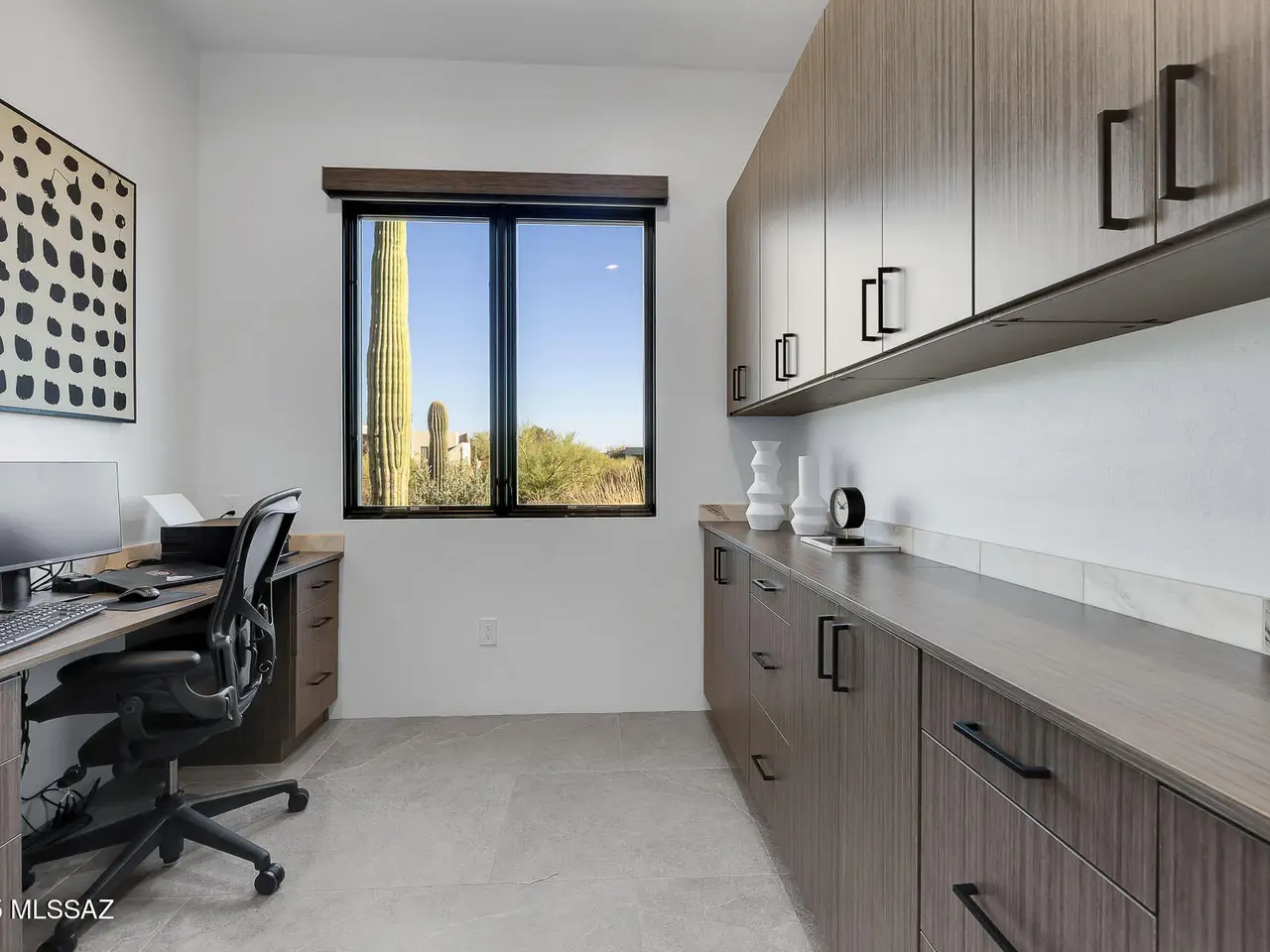 Welcome to the epitome of luxury living in the prestigious, double-gated Sunset Gardens enclave of Pima Canyon Estates. Designed by the renowned Simmons Design Group and completed in 2023, this striking modern residence offers 5189 square feet of masterfully crafted space with breathtaking north-facing views into majestic Pima Canyon. Step inside to find an open-concept layout with high-end finishes, soaring ceilings and brilliant window design providing elegant natural lighting. Four spacious, en-suite bedrooms plus a built-in office and fully equipped home gym, perfect for today's modern lifestyle. Outdoors, enjoy the generously sized Pebble Sheen pool and spa, massive north-facing rear patio and glorious desert sunsets. Auto enthusiasts will appreciate the oversized four-car garage.