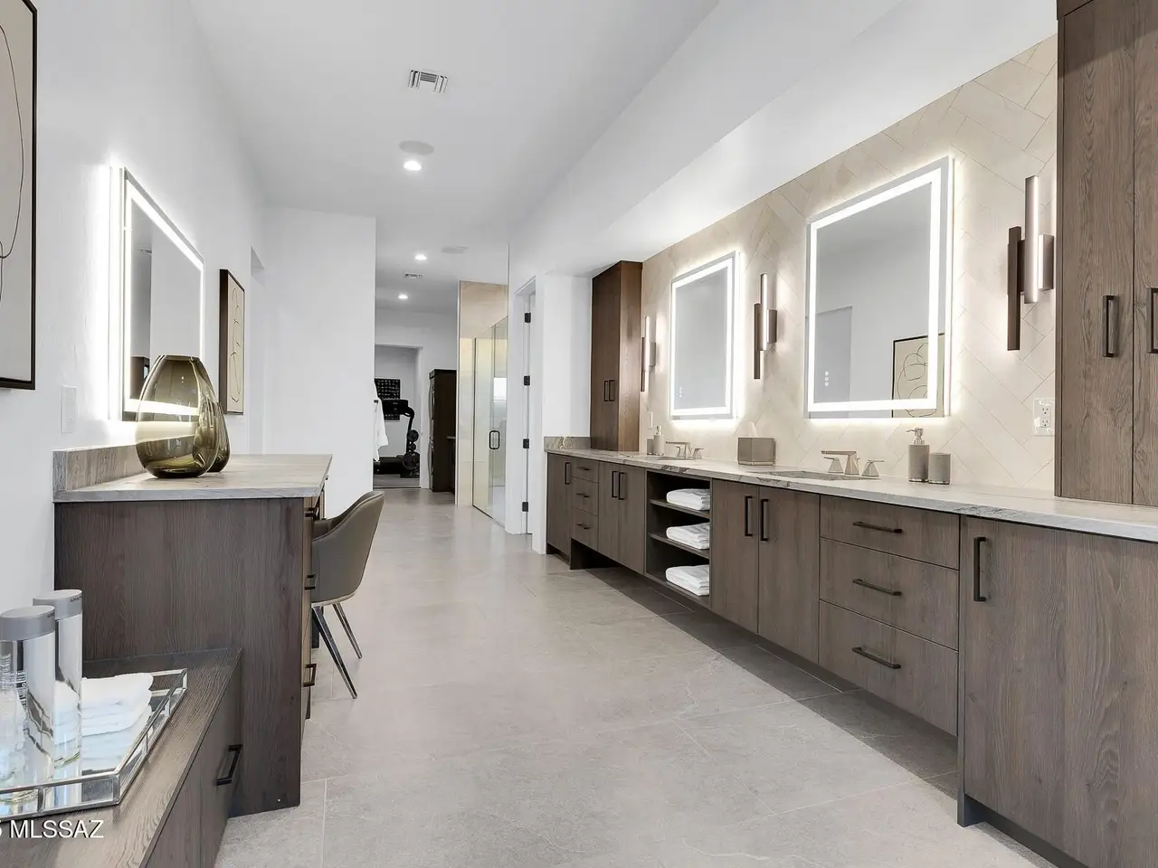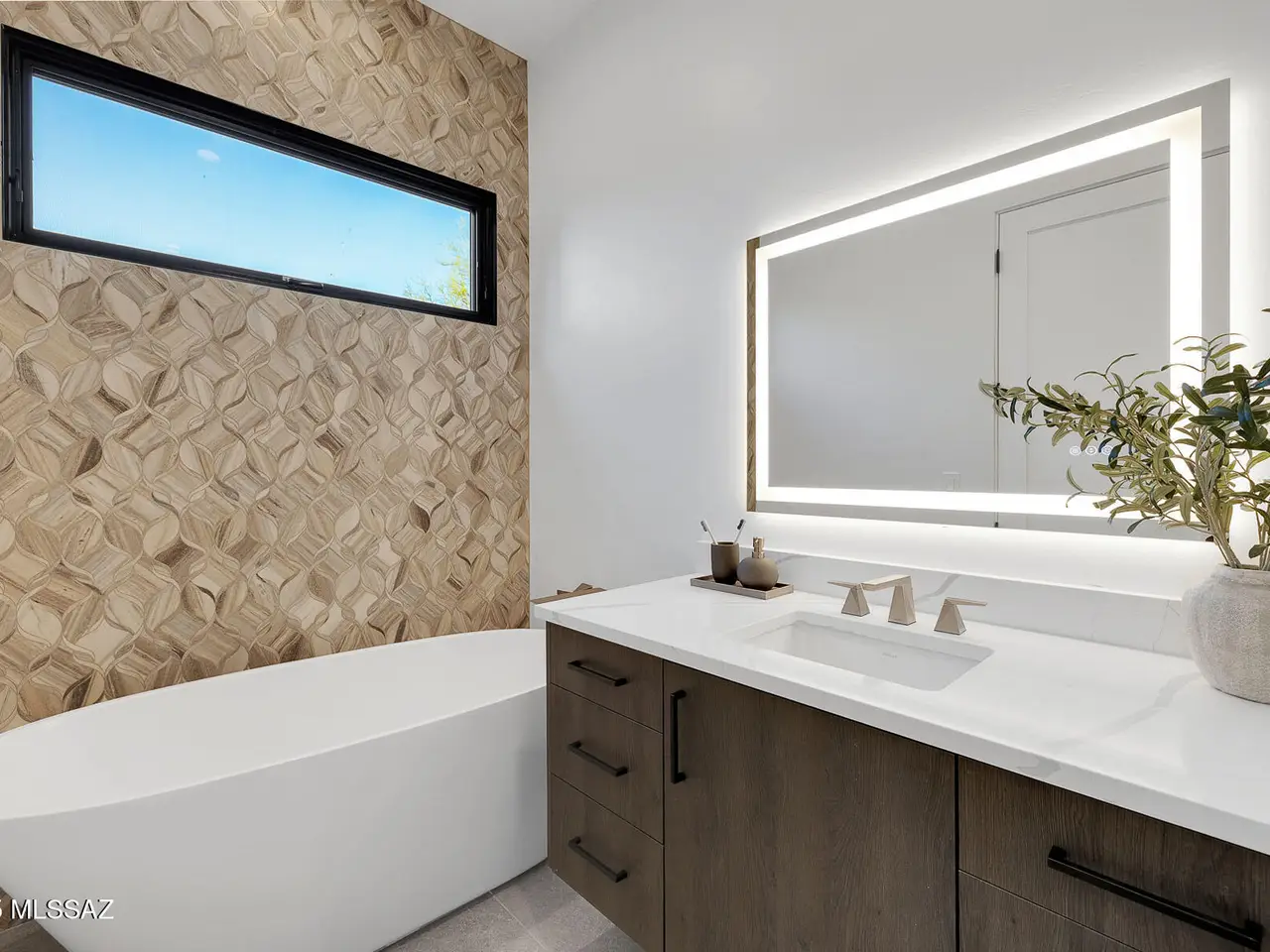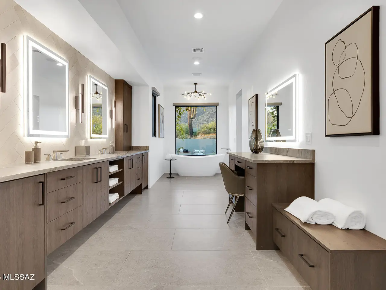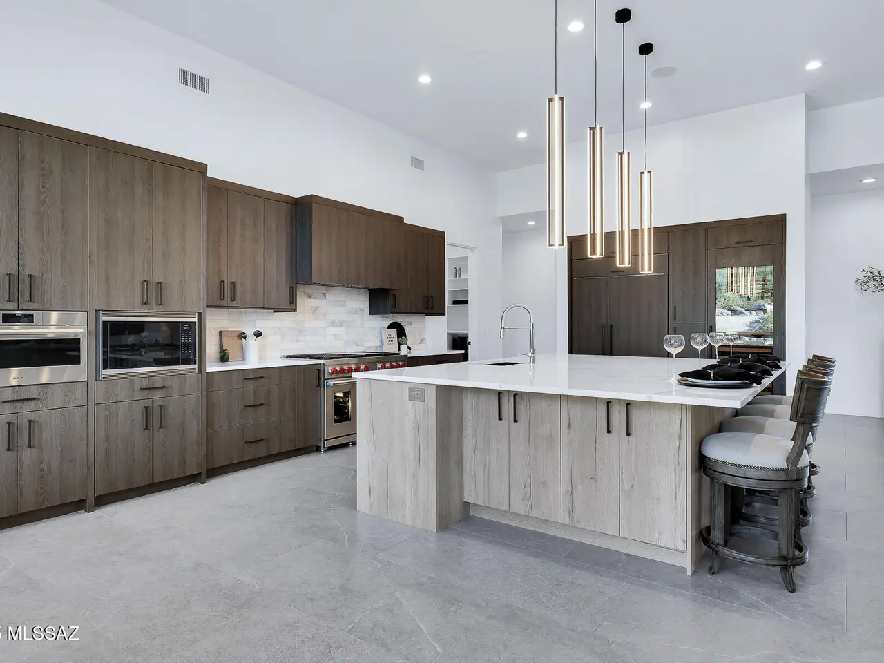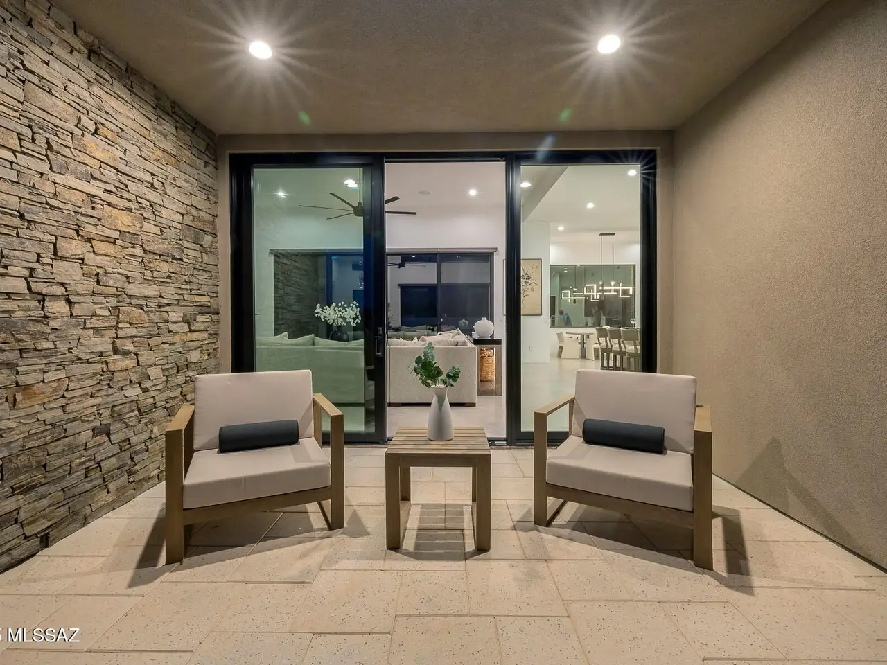 Welcome to the epitome of luxury living in the prestigious, double-gated Sunset Gardens enclave of Pima Canyon Estates. Designed by the renowned Simmons Design Group and completed in 2023, this striking modern residence offers 5189 square feet of masterfully crafted space with breathtaking north-facing views into majestic Pima Canyon. Step inside to find an open-concept layout with high-end finishes, soaring ceilings and brilliant window design providing elegant natural lighting. Four spacious, en-suite bedrooms plus a built-in office and fully equipped home gym, perfect for today's modern lifestyle. Outdoors, enjoy the generously sized Pebble Sheen pool and spa, massive north-facing rear patio and glorious desert sunsets. Auto enthusiasts will appreciate the oversized four-car garage.