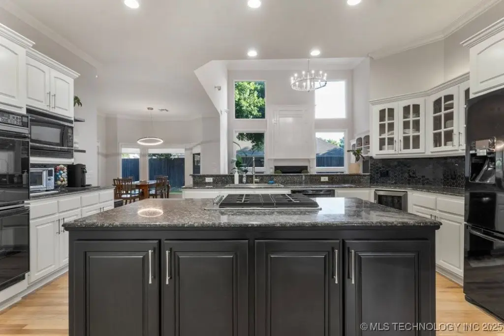 ABSOLUTELY STUNNING full brick home on corner lot. Beautiful landscaping and circle drive adorns the entrance to this home. Gorgeous backyard and Pool. This home has a 4 Car Garage and resides in the award winning Jenks SE School district! Grand open entry, dual staircase, formal dining. Study and living with fireplace with wall of windows overlooking the sparkling pool! Kitchen opens to breakfast nook & the large vaulted living. Lovely split first floor master and guest suite down, 3 large Bedrooms with en-suite baths & expansive game room with wet bar up! This home has it all, great for entertaining and your family. You do not want to miss out on this lovely family house in the beautiful established neighborhood of Southern Park Estates. Won't last, make this one yours.