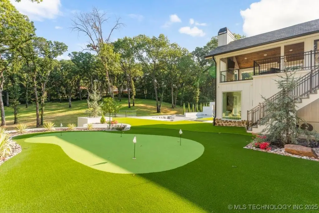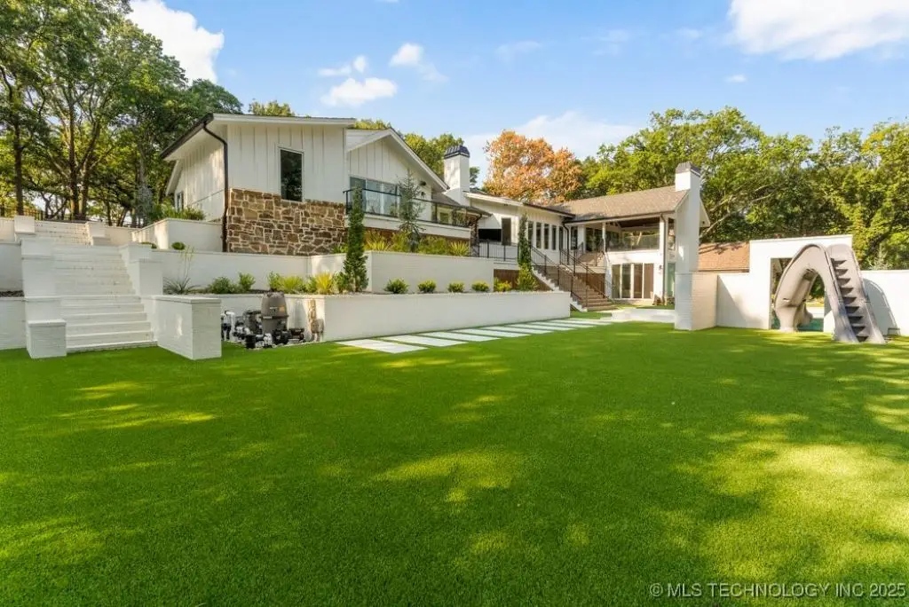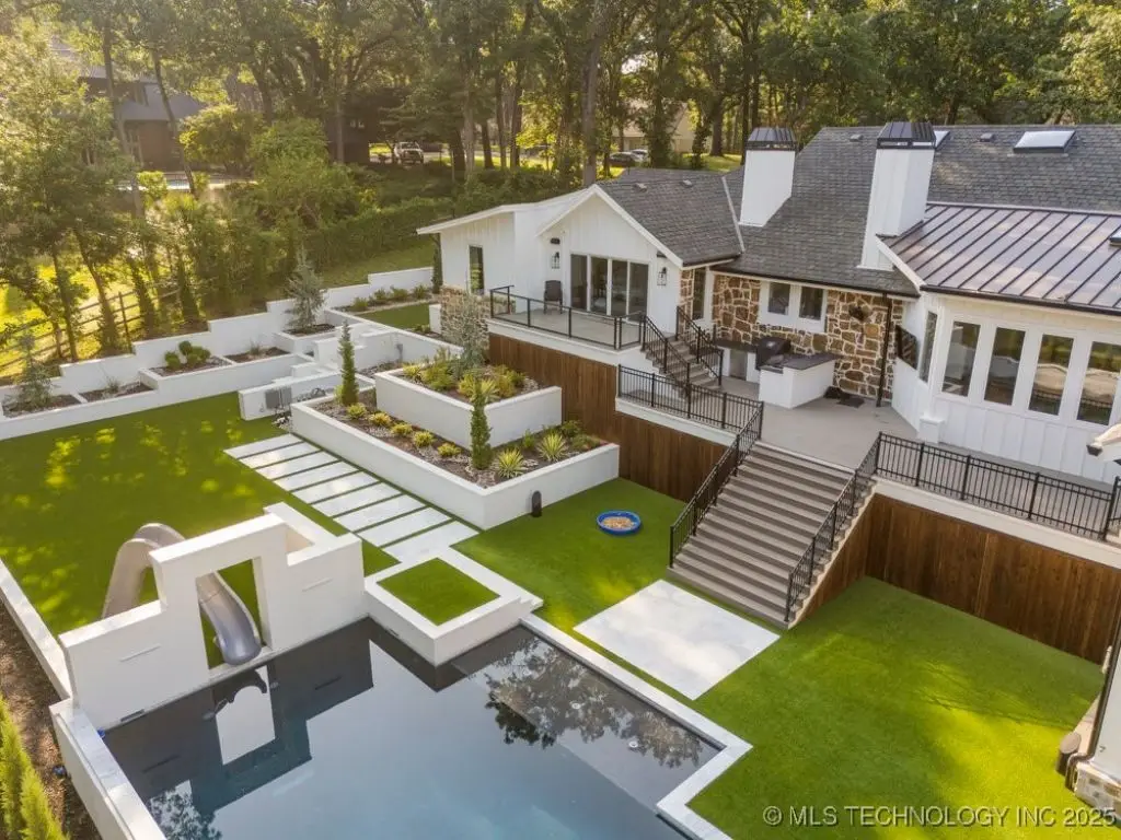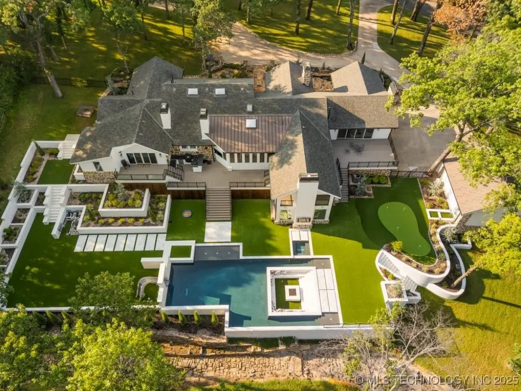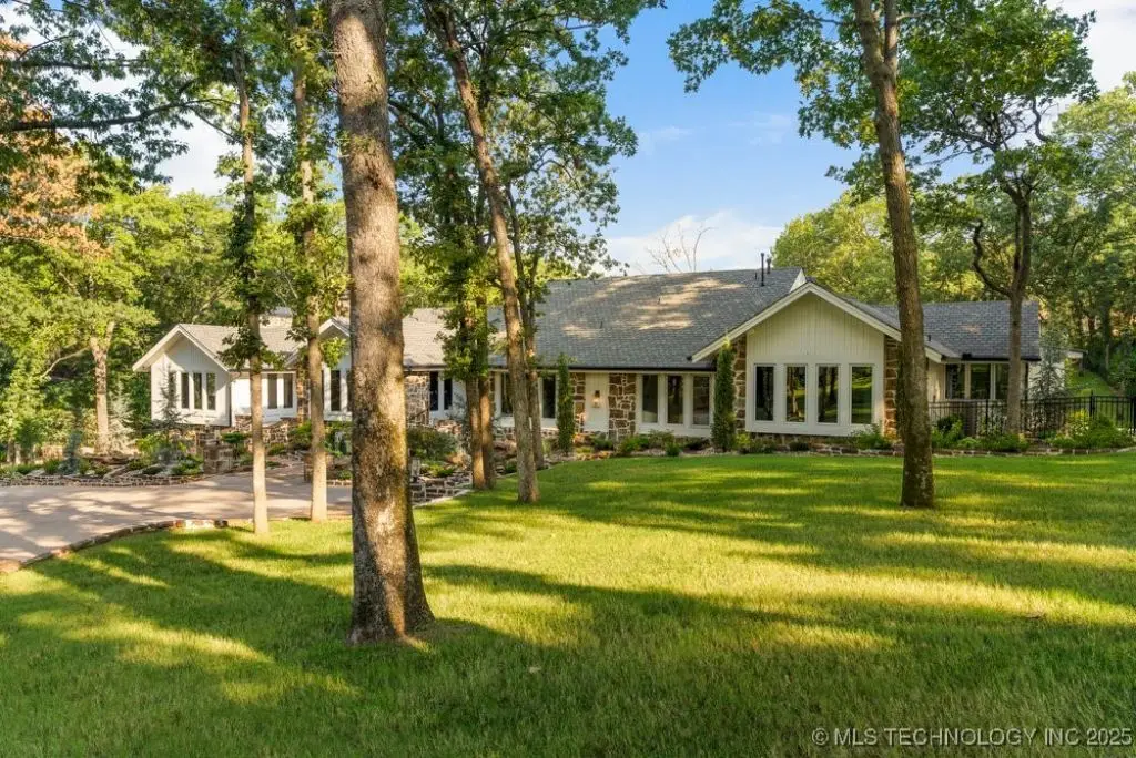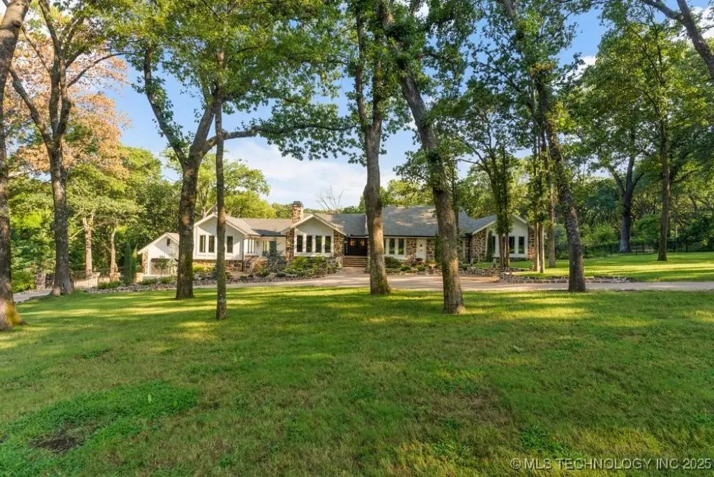 Welcome to your dream oasis in South Tulsa! This completely remodeled stunner sits on an expansive 2.5 acres (m/l), offering both luxury and space for endless possibilities. With five spacious bedrooms, including a charming bunk room, every bedroom boasts its own en suite for ultimate convenience and privacy. Step inside to discover two inviting living areas, dedicated game room and a private media room, perfect for entertaining family and friends. Inside you will find SEVEN fireplaces that boast coziest and ambience. The cabana room provides a relaxing retreat, enhancing the home's resort-like ambiance. The outdoor space is nothing short of spectacular! Multi-level decks beckon you to the impressive backyard, featuring a stunning Gunite pool, complete with cascading water features and a thrilling water slide. Gather around the sunken fire pit that comfortably accommodates over 20 guests, perfect for cozy evenings under the stars. The putting green adds an exciting touch for the golf enthusiast, or the outdoor kitchen beckons for all alfresco dining and entertainment. This remarkable home is truly a must-see, an extraordinary blend of comfort, style, and outdoor fun that defines the essence of luxurious living. A true MUST SEE!!