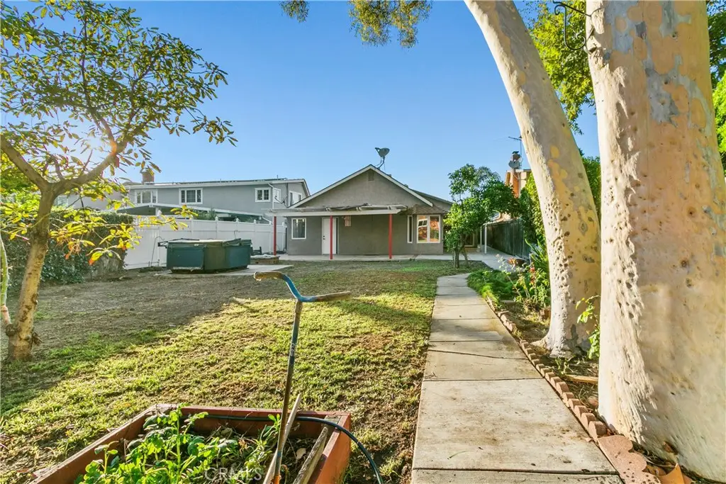 Welcome to 14902 Foxcroft Road, a single-story 3-bedroom, 2-bath home on one of the larger lots in the Tustin Meadows community. The large backyard offers mature avocado and citrus trees, wide open lawn space, and plenty of room for barbeques, gatherings, or outdoor relaxation. Inside, the home features solid wood flooring throughout, remodeled bathrooms, an updated fireplace, a newer HVAC system, and the benefit of paid-off solar. High ceilings in select living areas give the home an open feel, while the layout provides flexibility for everyday living. Tustin Meadows residents enjoy private pools, expansive greenbelts, playgrounds, and a clubhouse that hosts neighborhood events throughout the year. The location offers unmatched convenience with The District at Tustin Legacy, Costco, Target, Whole Foods, and the Tustin Marketplace just minutes away, along with quick access to the freeways and John Wayne Airport. Served by the highly regarded Tustin Unified School District, this property combines location, upgrades, community, and potential. This is a rare opportunity to own a single-story home on a large lot in one of Tustin's most desirable master-planned neighborhoods. Homes with this combination of size, setting, and community amenities don't come up often, making this an opportunity you won't want to miss!