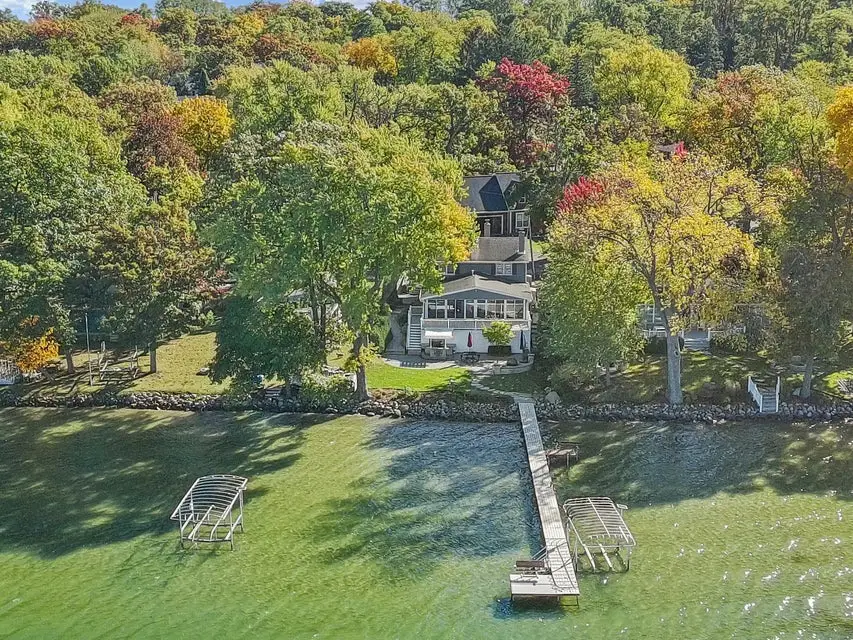 Enjoy lake living at its best with a prof. designed outdoor kitchen, fire pit, deck, and hardscaped patio overlooking the water--perfect for entertaining or quiet evenings by the shore. Updated 4BR, 3BA home with 57' of level, sandy frontage on all sport Lake Mary. Newer hardwood floors, granite countertops, custom wood trim/doors, and renovated baths. A spacious living room with a stone gas fireplace, sunroom with deck access and lake views, and large eat-in kitchen offer inviting spaces for family and guests. The primary suite overlooking the lake provides a private escape. Prime location! Walk to town, and just a short drive to Wilmot Mountain (Vail Resorts) and Lake Geneva. Ideal as a full-time residence or weekend getaway--a rare combination of style, comfort, and level lake frontage.