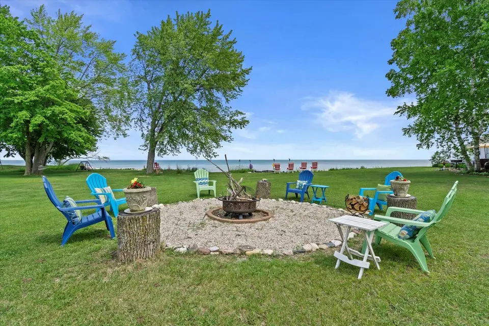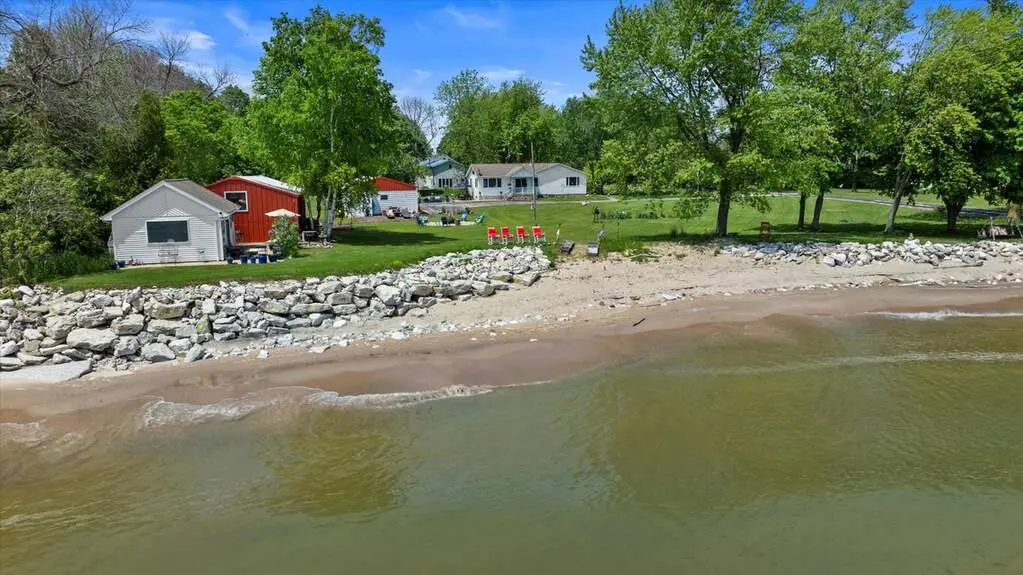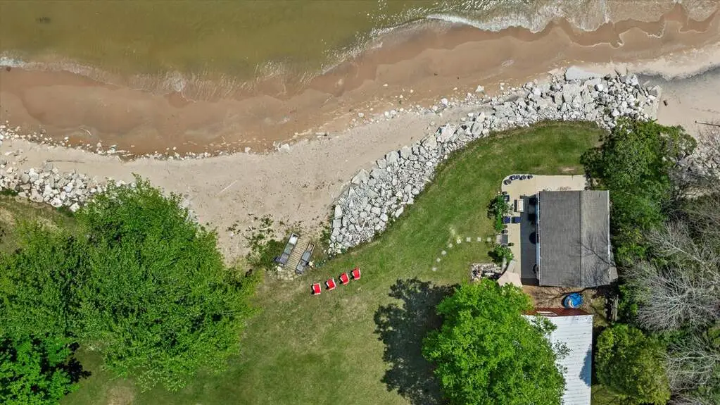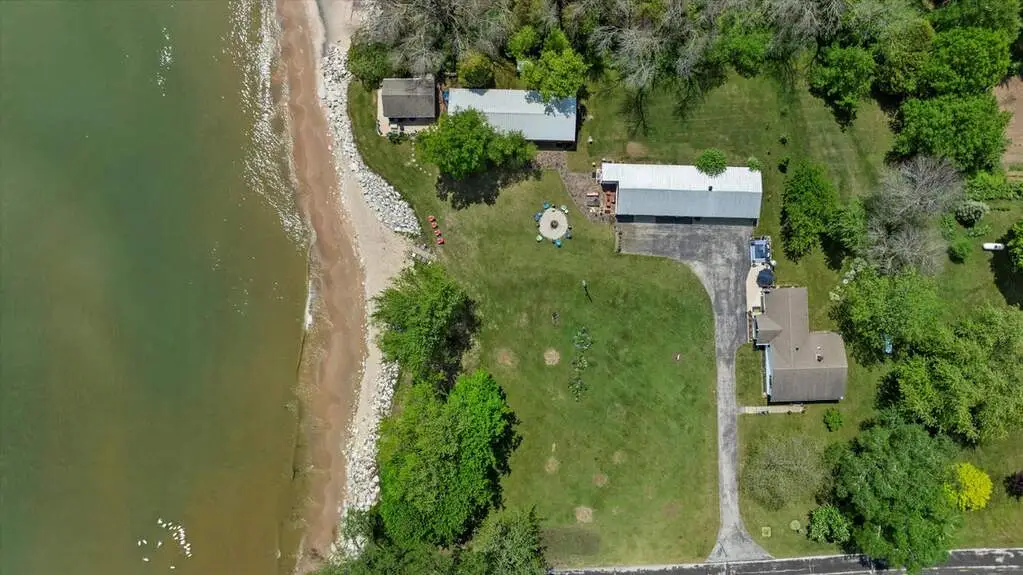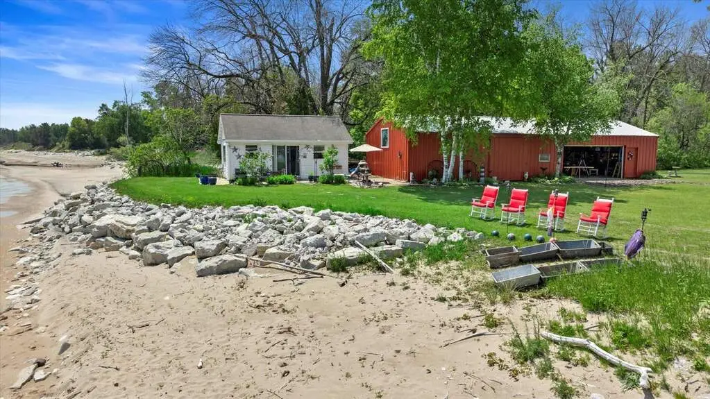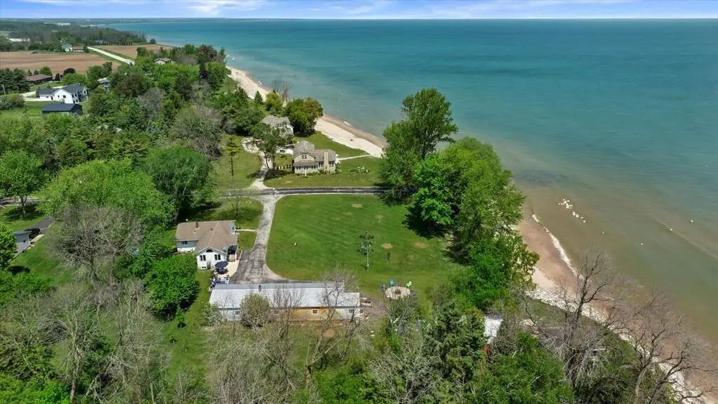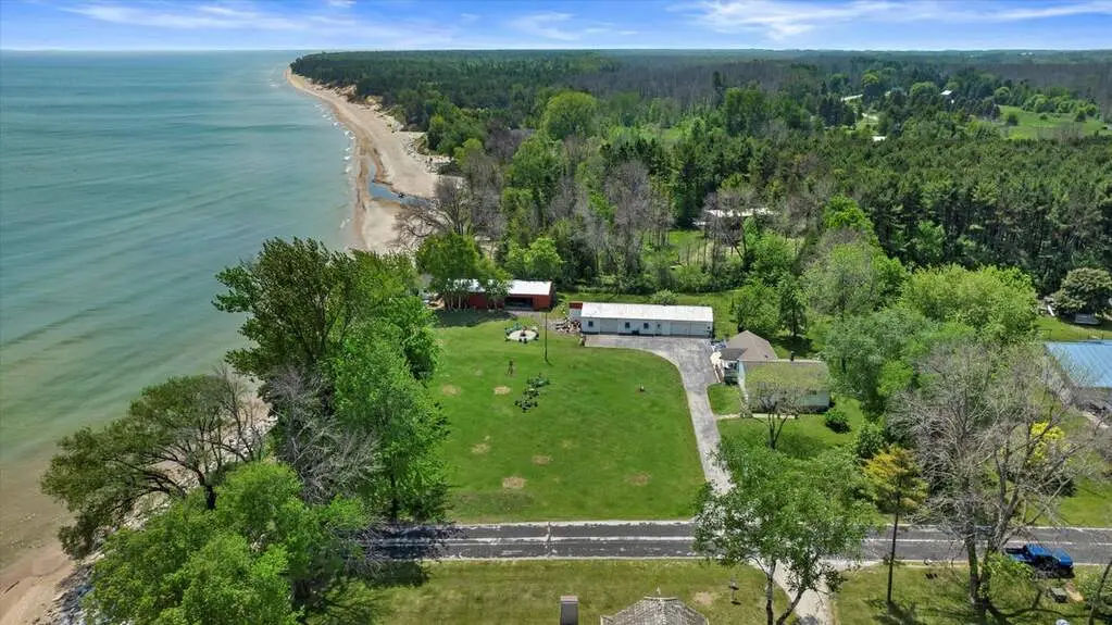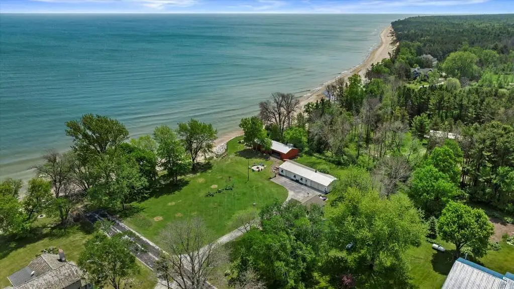 With 180 degree views of Lake Michigan, this family compound has it all w/over 292+/- feet of sandy beach w/no bluff, but a protected shoreline! On over 2.66+/- acres this property features a completely updated main house, stunning family room w/vaulted ceilings, new white kitchen & eating area, open concept dining room w/ sitting area, 2 new full bathrooms, & 2 large bedrooms w/2 more bedrooms on the lower level, a den/office area w/space that can be finished or storage. The Party Barn 24X60 w/several gaming/dining tables, rec area, additional sleeping area w/full bath. Adjacent to the beach, a private guest house w/kitchenette & new full bath. There is a 24x70 garage w/3 garage doors 6+cars. Private retreat property sleeping 20+, or vacation rental investment opportunity, you decide!