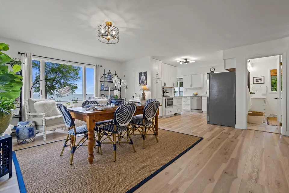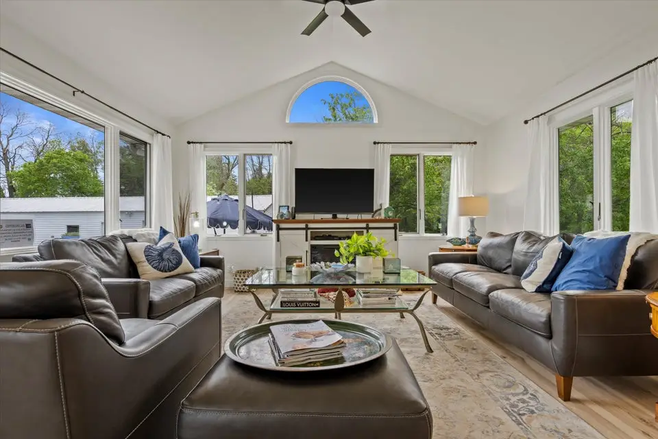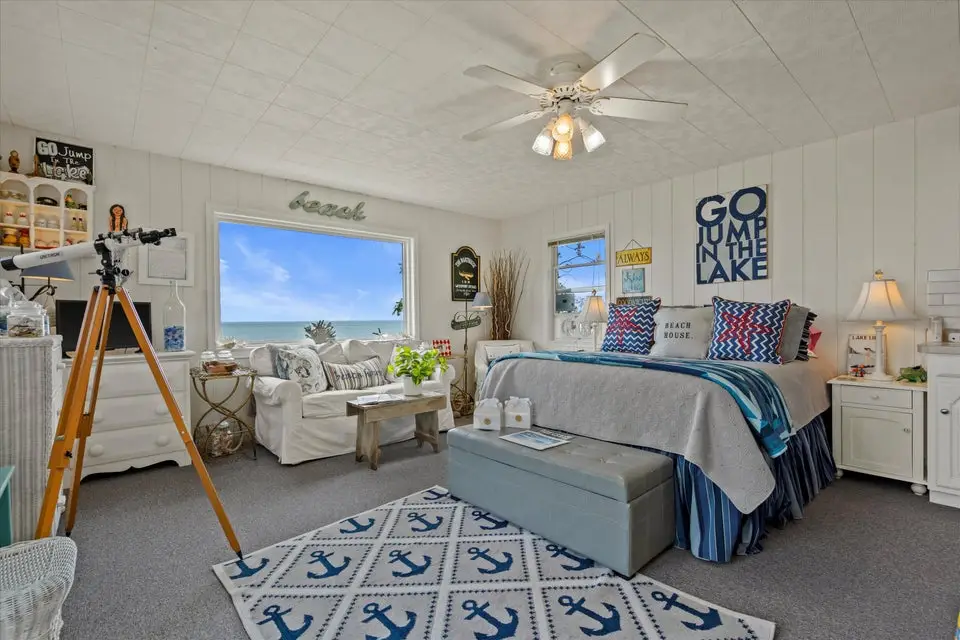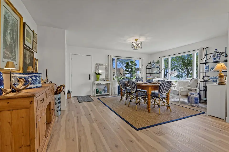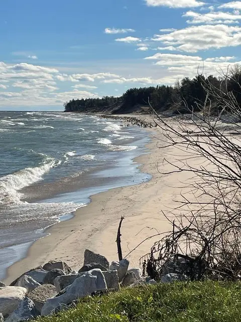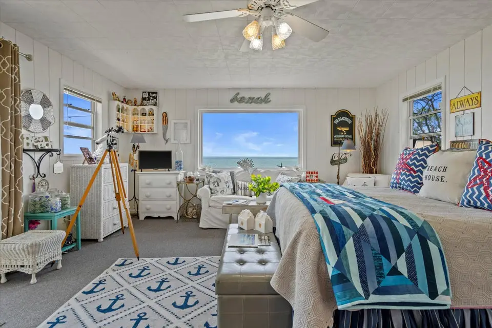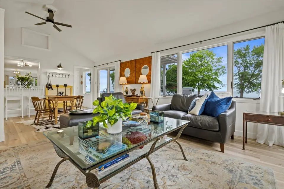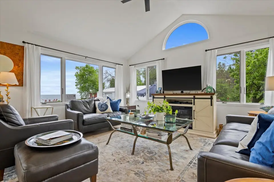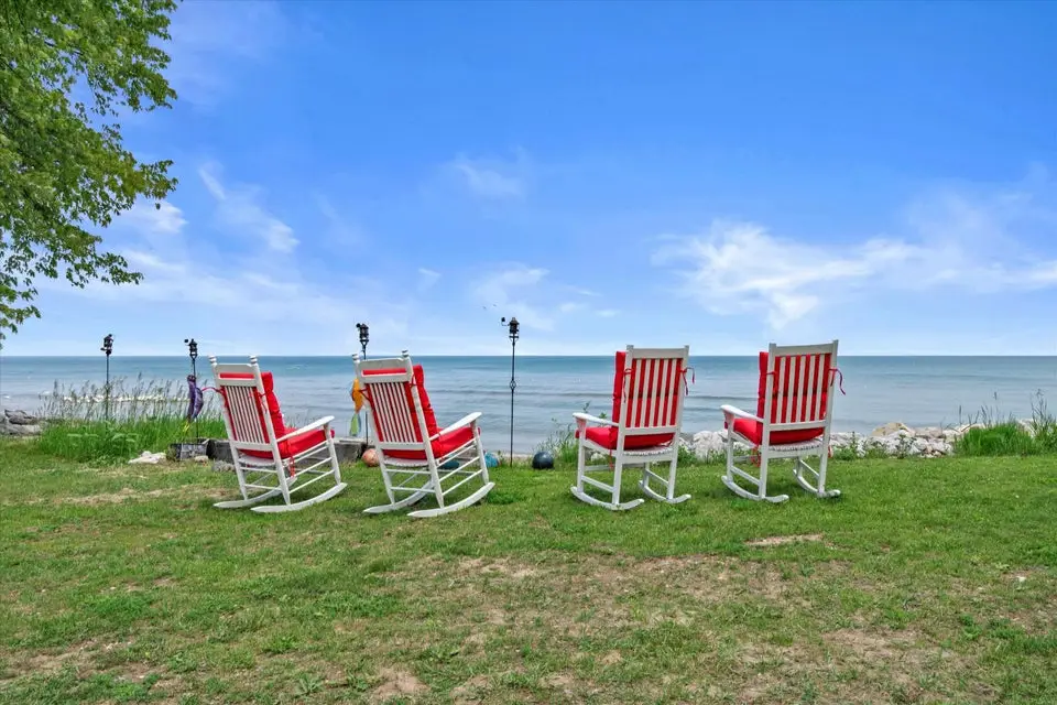 With 180 degree views of Lake Michigan, this family compound has it all w/over 292+/- feet of sandy beach w/no bluff, but a protected shoreline! On over 2.66+/- acres this property features a completely updated main house, stunning family room w/vaulted ceilings, new white kitchen & eating area, open concept dining room w/ sitting area, 2 new full bathrooms, & 2 large bedrooms w/2 more bedrooms on the lower level, a den/office area w/space that can be finished or storage. The Party Barn 24X60 w/several gaming/dining tables, rec area, additional sleeping area w/full bath. Adjacent to the beach, a private guest house w/kitchenette & new full bath. There is a 24x70 garage w/3 garage doors 6+cars. Private retreat property sleeping 20+, or vacation rental investment opportunity, you decide!