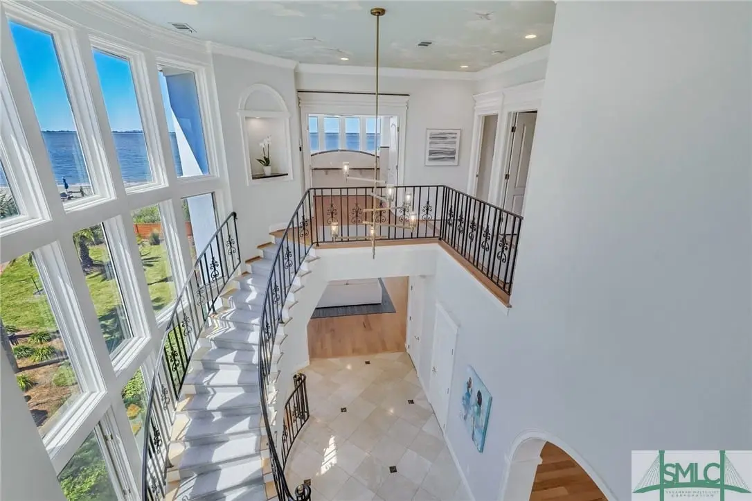 Imagine waking up to breathtaking views in this coastal paradise! This stunning home offers amazing vistas & boasts extensive updates inside & out. With four bedrooms, two offices, a workout room, workshop, elevator & garage, this home caters to every need. As you enter through the foyer, you are greeted by the impressive winding staircase. Main level has an open layout with panoramic views & includes a gourmet kitchen, butler's pantry, living room, dining room, & garden room that leads to expansive deck. The deck offers extraordinary views of the infinity pool & shipping channel beyond. Lower level features bedroom, office, & half bath, with the highlight being the underwater themed bar that opens to the pool area. The third floor including the large primary bedroom that faces the ocean & includes a luxurious ensuite, two additional bedrooms with private baths & an office overlooking the main level. On the top level, an observation deck provides 365-degree views of the area.