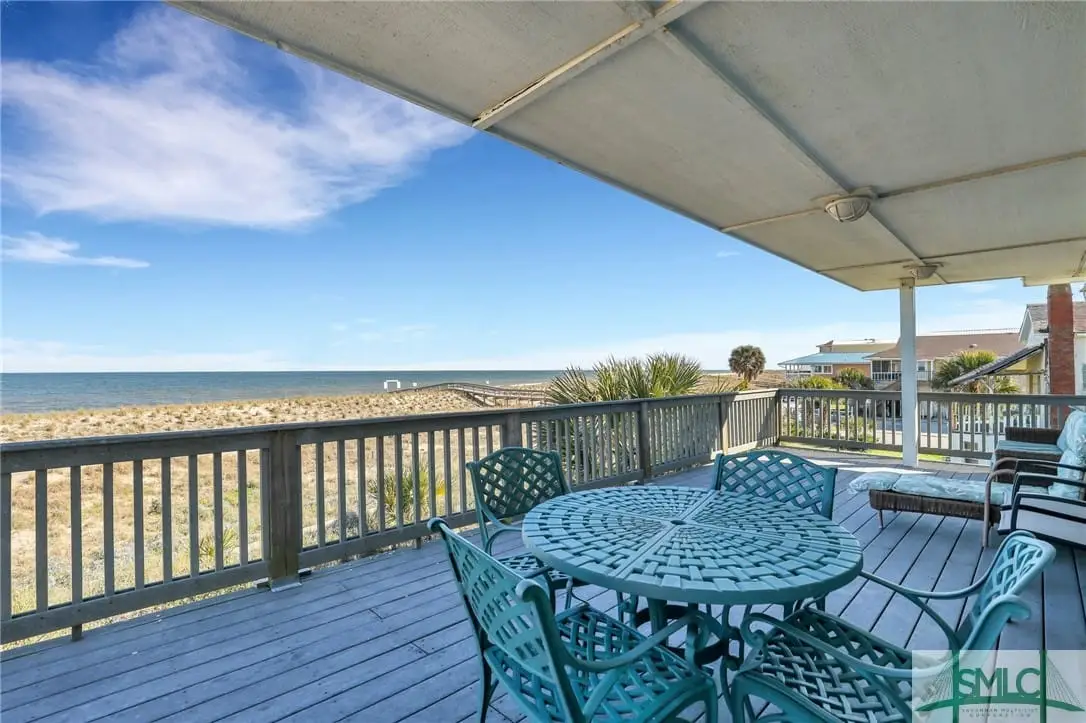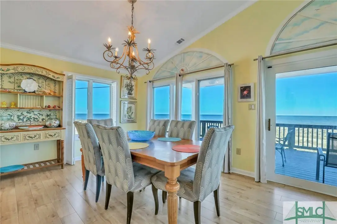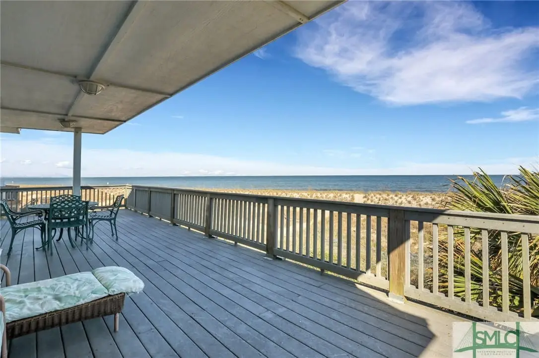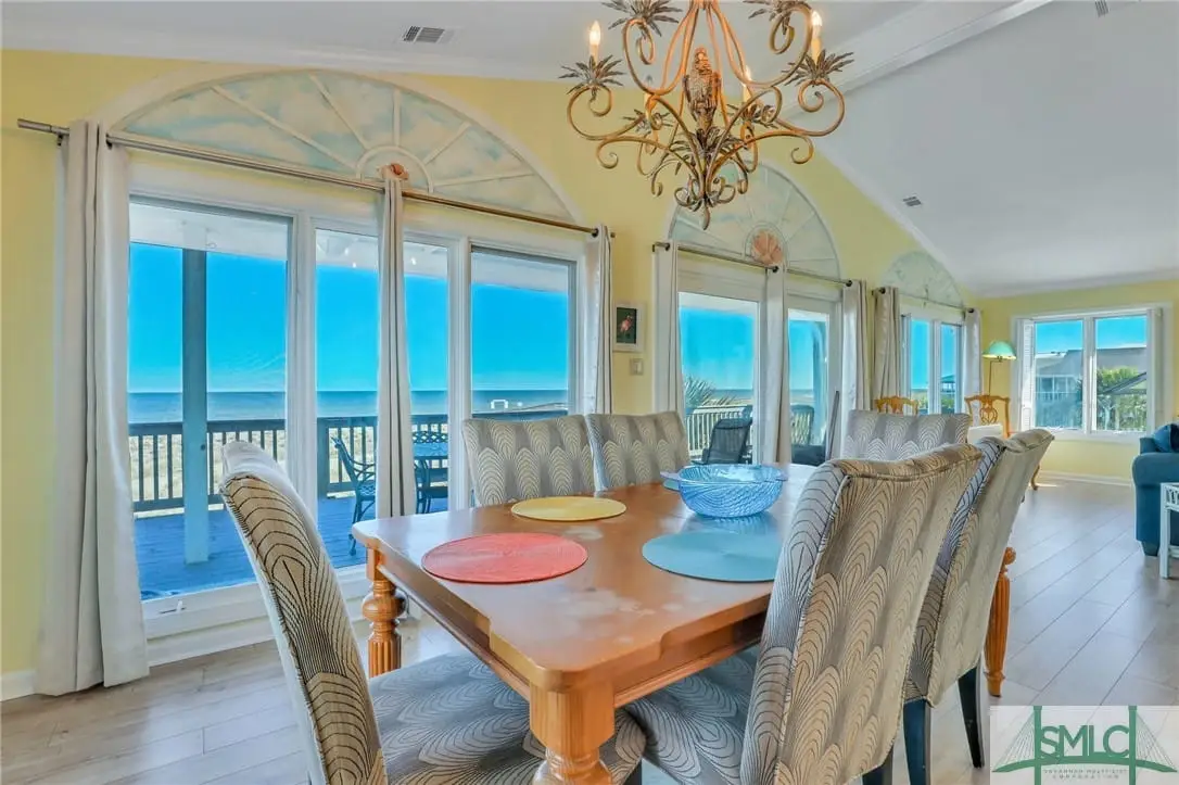 OCEANFRONT in the RT zone on Tybee Island steps away from dipping your toes into the Atlantic Ocean. Known as Bella Luna, this beach house has an open living concept with kitchen, dining, living areas featuring hand painted murals and unparalleled panoramic view of the Ocean and beach from the upper lever. From there step out onto the sun deck to take in the sounds of the sea with frolicking dolphins and shore birds, watch the international ship traffic entering channel while soaking up the sun or toasting the end of the day. This level also includes 1 guest room & bath plus generous in-law suite with morning kitchen, fireplace and deck. The lower-level consists of entrance foyer, elevator, sizable laundry, 3 bedrooms, 2 baths and easy to maintain tile floors throughout. The front facing garage includes a handicap ramp and additional parking for 6 cars in the driveway. Bella Luna is an income-producing property with a strong rental history and is the essence of Coastal Living.