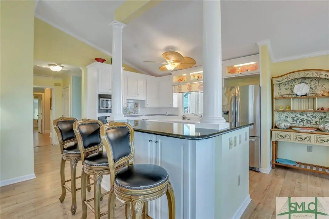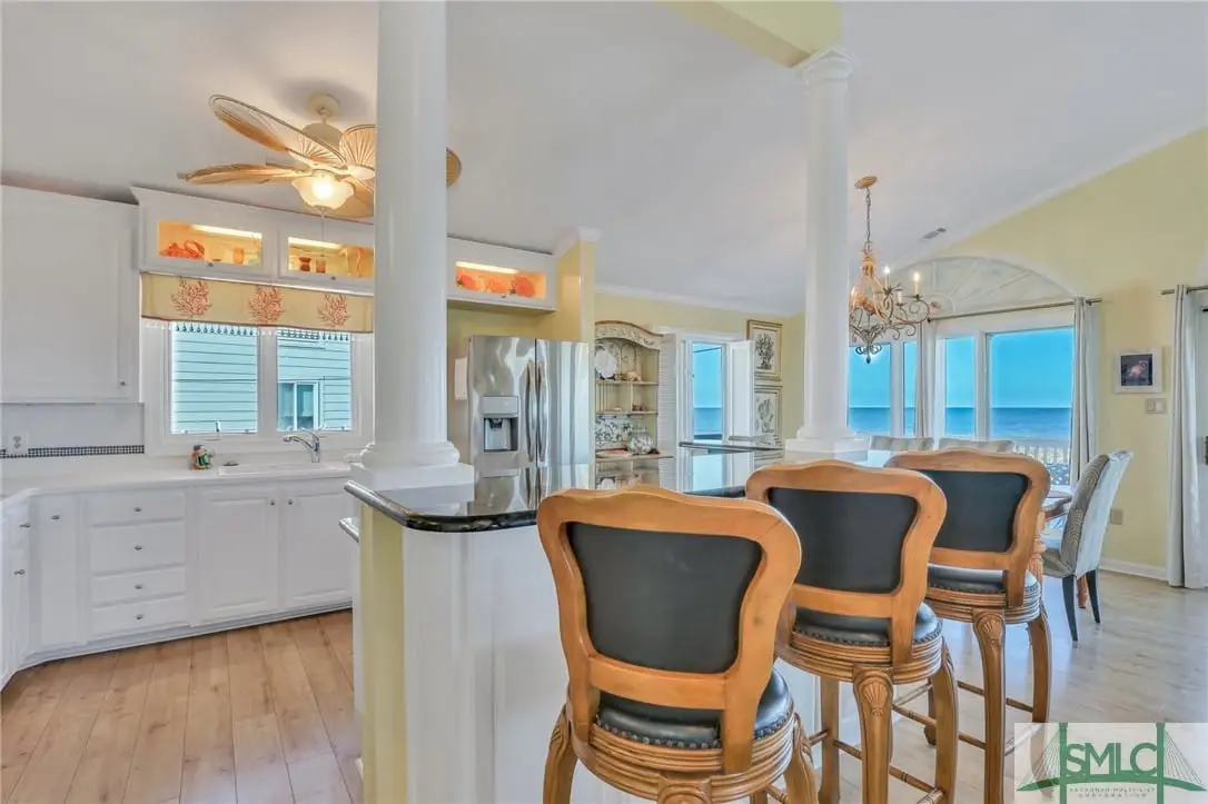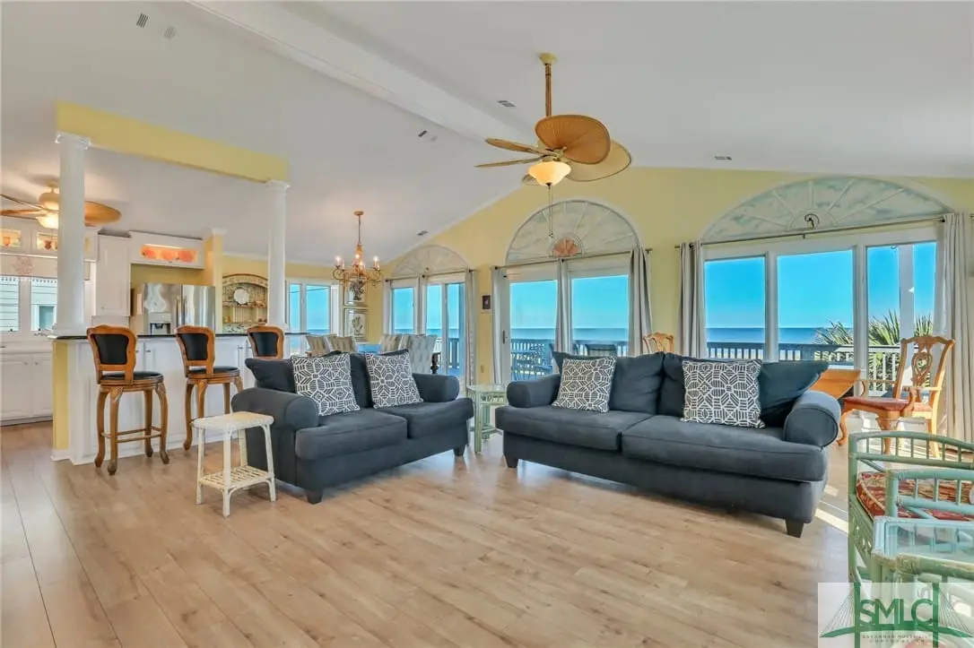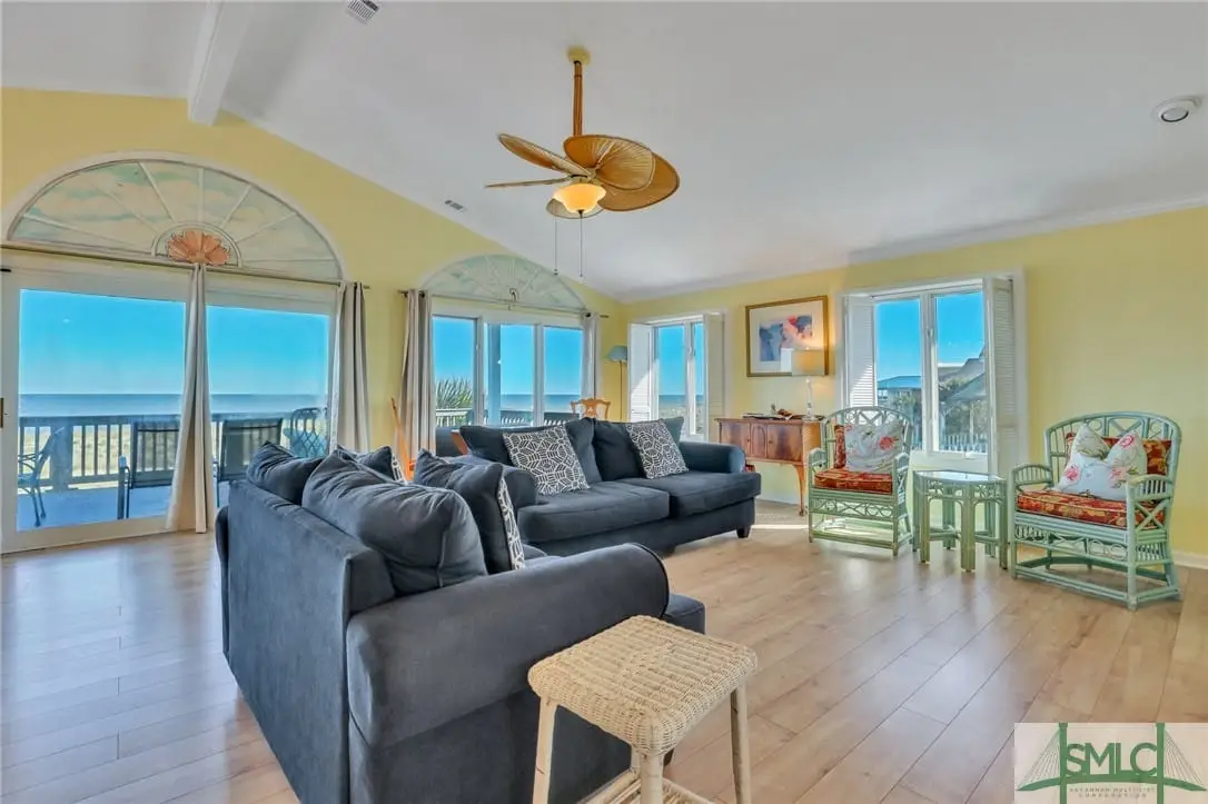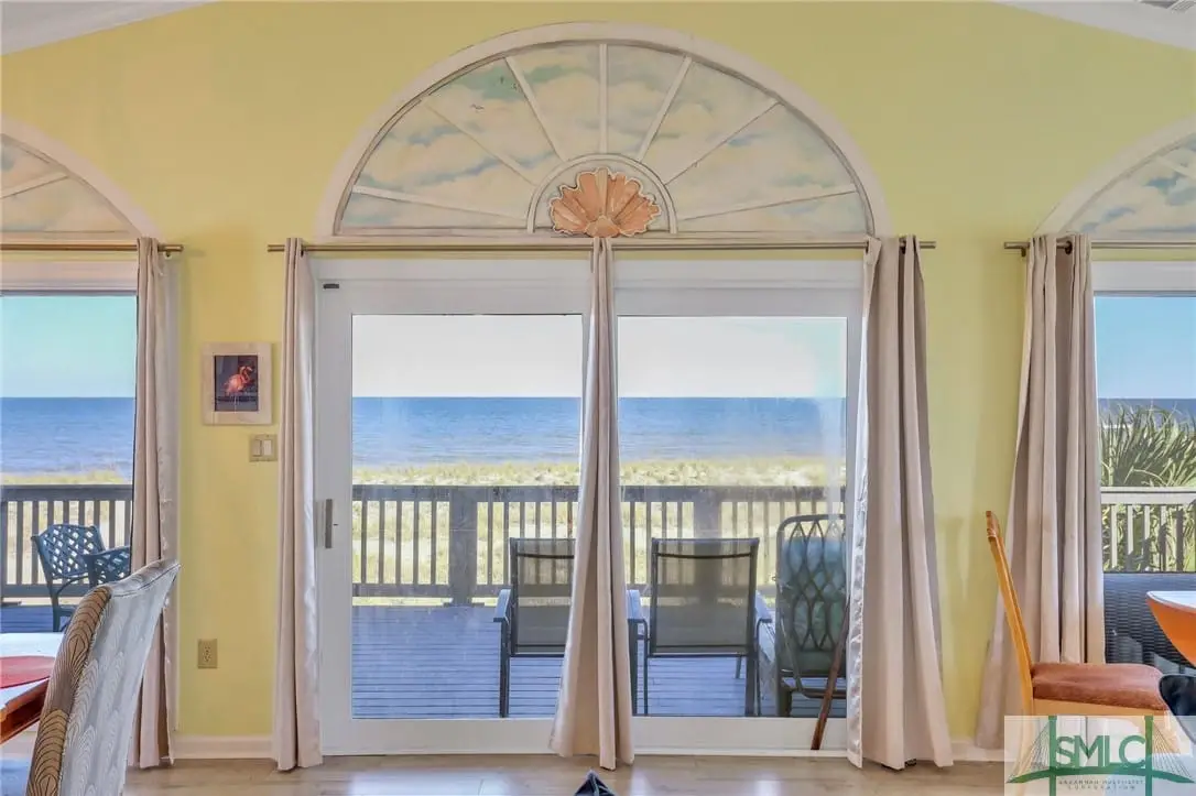 OCEANFRONT in the RT zone on Tybee Island steps away from dipping your toes into the Atlantic Ocean. Known as Bella Luna, this beach house has an open living concept with kitchen, dining, living areas featuring hand painted murals and unparalleled panoramic view of the Ocean and beach from the upper lever. From there step out onto the sun deck to take in the sounds of the sea with frolicking dolphins and shore birds, watch the international ship traffic entering channel while soaking up the sun or toasting the end of the day. This level also includes 1 guest room & bath plus generous in-law suite with morning kitchen, fireplace and deck. The lower-level consists of entrance foyer, elevator, sizable laundry, 3 bedrooms, 2 baths and easy to maintain tile floors throughout. The front facing garage includes a handicap ramp and additional parking for 6 cars in the driveway. Bella Luna is an income-producing property with a strong rental history and is the essence of Coastal Living.