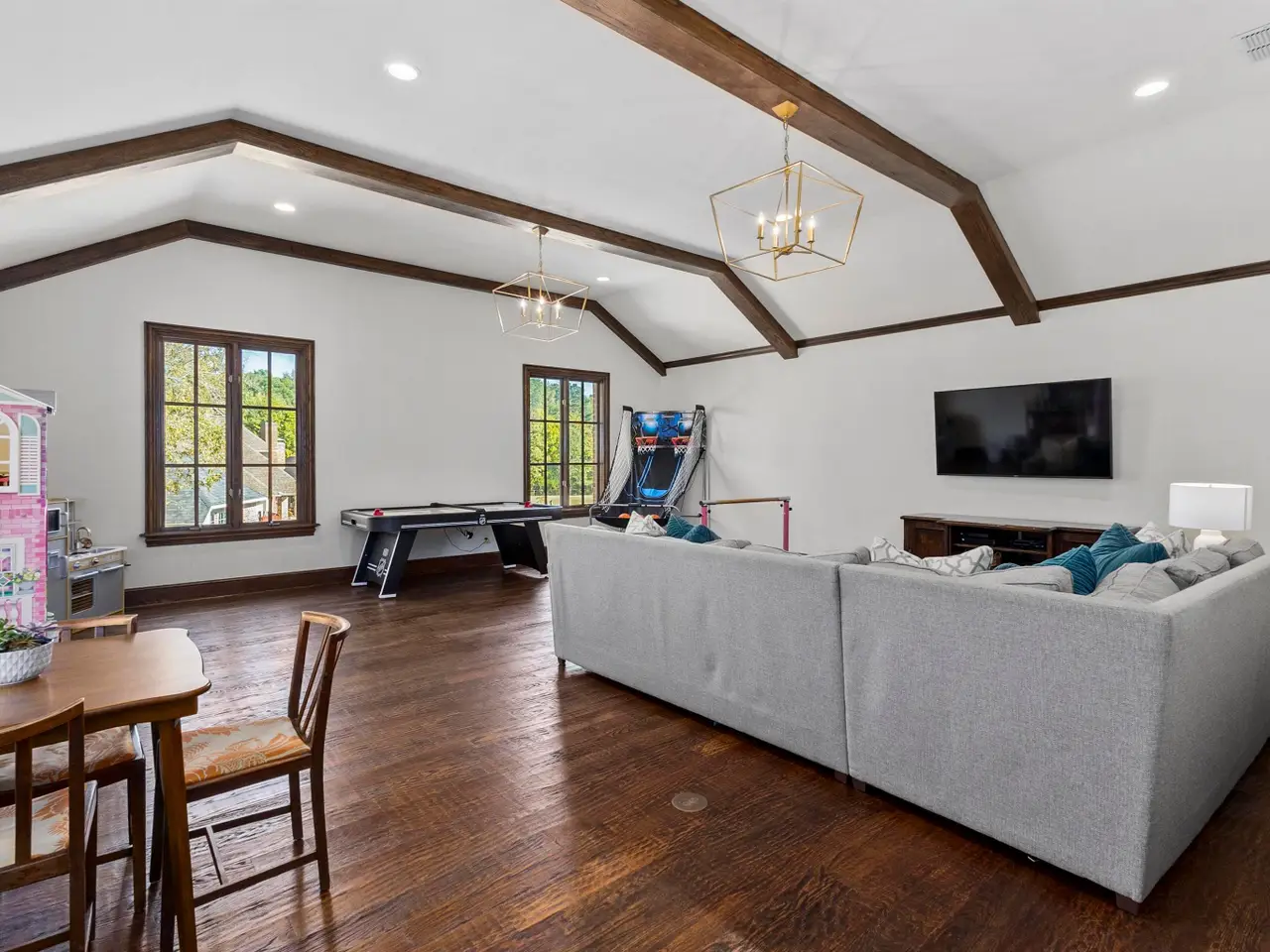Welcome to 2202 Woodlands of Hollytree West, where timeless elegance meets modern luxury. This meticulously maintained and thoughtfully designed custom-built 4-bedroom, 3.5-bathroom residence offers an unparalleled living experience. Upon entry, the elegant hand-scraped wood floors flow into a bright formal dining room, perfect for gathering. The generous-sized living room is inviting with natural light highlighting the beautiful built-ins and overlooking the pristine backyard. The kitchen exudes charm while being highly functional. Light through the leaded glass window enhances the gorgeous coffered ceiling with hand-hewn beams, Taj Mahal countertops, butcher block island and brick floors. Wolf and Sub-Zero appliances accompany. Enjoy meals and drinks at the bar or breakfast area. Nearby, freshly painted laundry room and office. Down stairs is also host to a half bath and the master bedroom. The vaulted ceiling will catch your eye until you see the completely remodeled spa-like bathroom. The walk-in closet offers built-ins and pull-down extensions for efficiency and convenience. Hardwood oak stairs and barely twist spindles lead you upstairs to 3 bedrooms and 2 bathrooms and an oversized game room. You'll find fresh paint and wallpaper, new countertops and flooring throughout. You will love the abundant, climate-controlled storage too! The house sits on a steel-reinforced slab with 65-drilled piers, 30 seer insulation, 2 new tankless water heaters and 3 easily accessible HVAC units. Solid-core doors with Baldwin hardware, wood-clad energy-efficient windows and copper flashing and gutters provide beauty and function. The new gated driveway, privacy fencing and landscaping enhance the recently constructed pool, hot tub and patio that create an ideal backyard retreat. There is a mosquito misting system too! This exceptional property offers a rare combination of luxury, comfort, and thoughtful design. Schedule your private showing today.