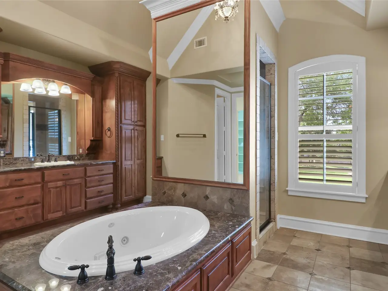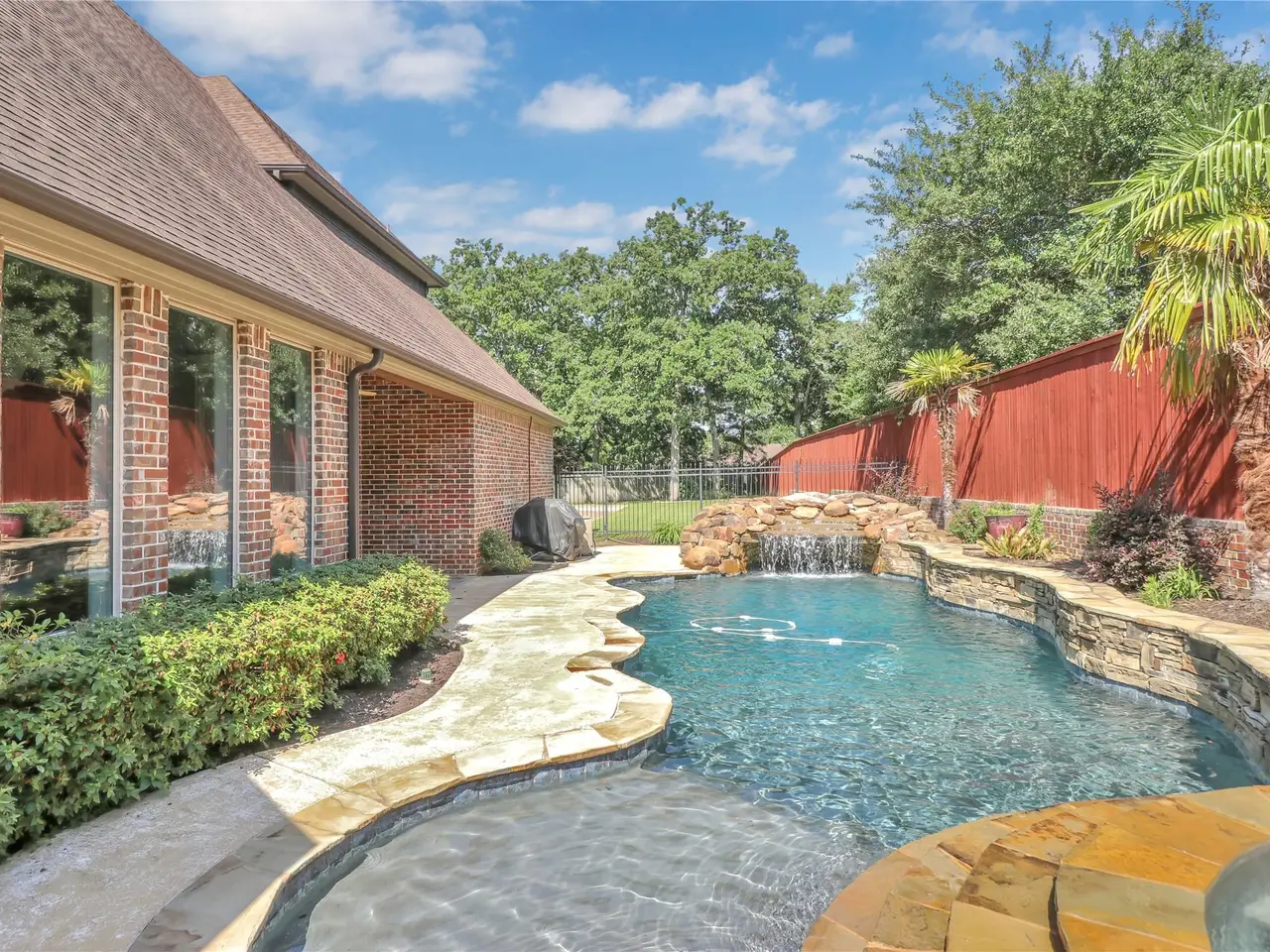 Hollytree hidden gem! 6805 Castle Pines CT, just a few beautiful homes on this cul de sac. You will love the curb appeal.Stately home, boasting a gorgeous Stone fasade. Extra parking and a drive through Porte cochere. On the left side of thehome, an extra garage and Mother in Law Suite, Guest Quarters or private office. The home has 5 bedrooms, (4 on mainfloor, 1 upstairs), 5 full baths, media room, office, family room, hearth room, utility room, Kitchen, and 1 bedroom upstairs withprivate bath and a game room with a small kitchen for serving and a wine cellar. The Guest Quarters off the Porte cocherehas one bedroom and a full bath, storage and a one car garage. Total property has 6 bedrooms and 6 baths. The kitchen ismagnificent. Light, bright, tall cabinetry, glass accents, large island, separate counter with prep sink, ice machine, 6 burnergas range, warming drawer, double ovens, wine refrigerator and a side by side built in refrigerator. The Master Suite isbeautiful, boxed ceiling, see through fireplace with a sitting area for reading and a coffee bar. The Master bath is lovely,jetted garden tub, with walk through shower, separate lavatories for each person and a walk in closet. Stay home and watchmovies in your private media room, enjoy your very own wine cellar, located beneath the stairs. Fenced backyard, .509Acre with a gunite, heated pool with a built in hot tub and waterfall. Such a relaxing back yard. You need to see this Happyproperty today!