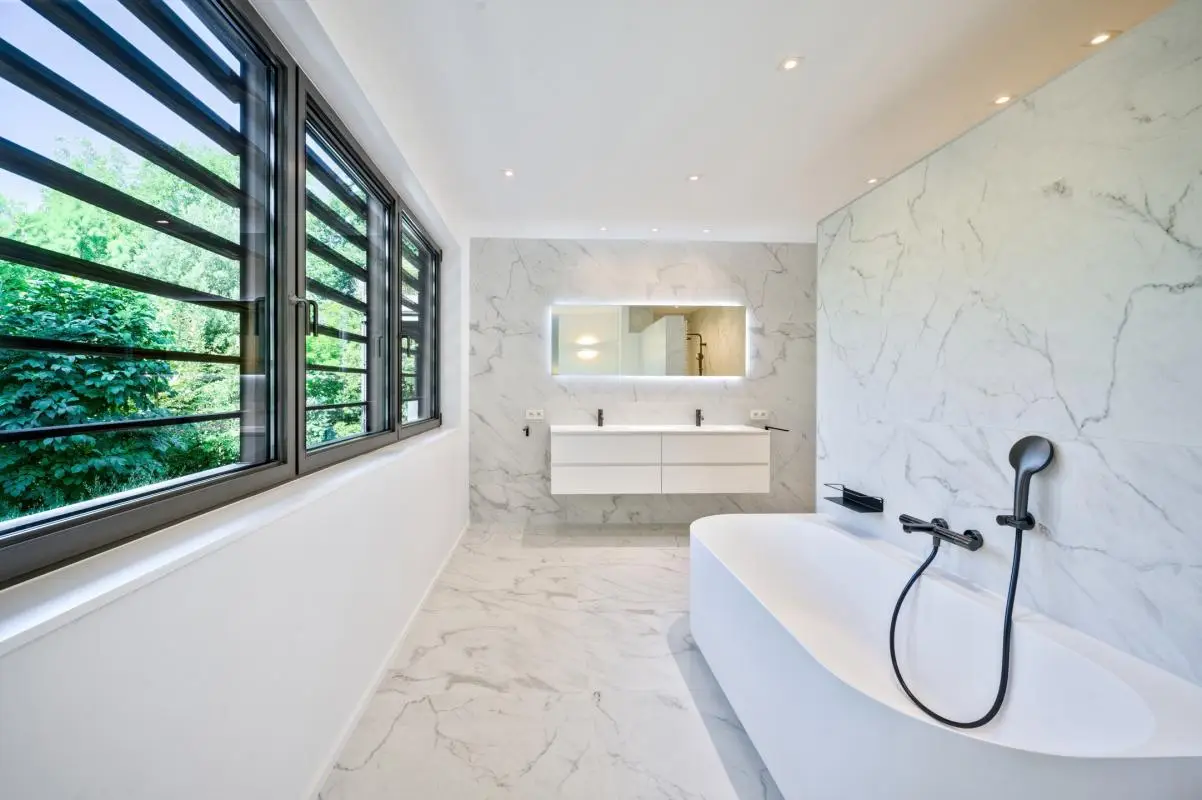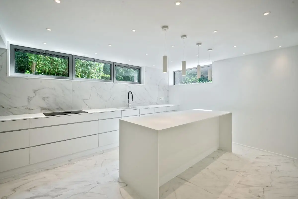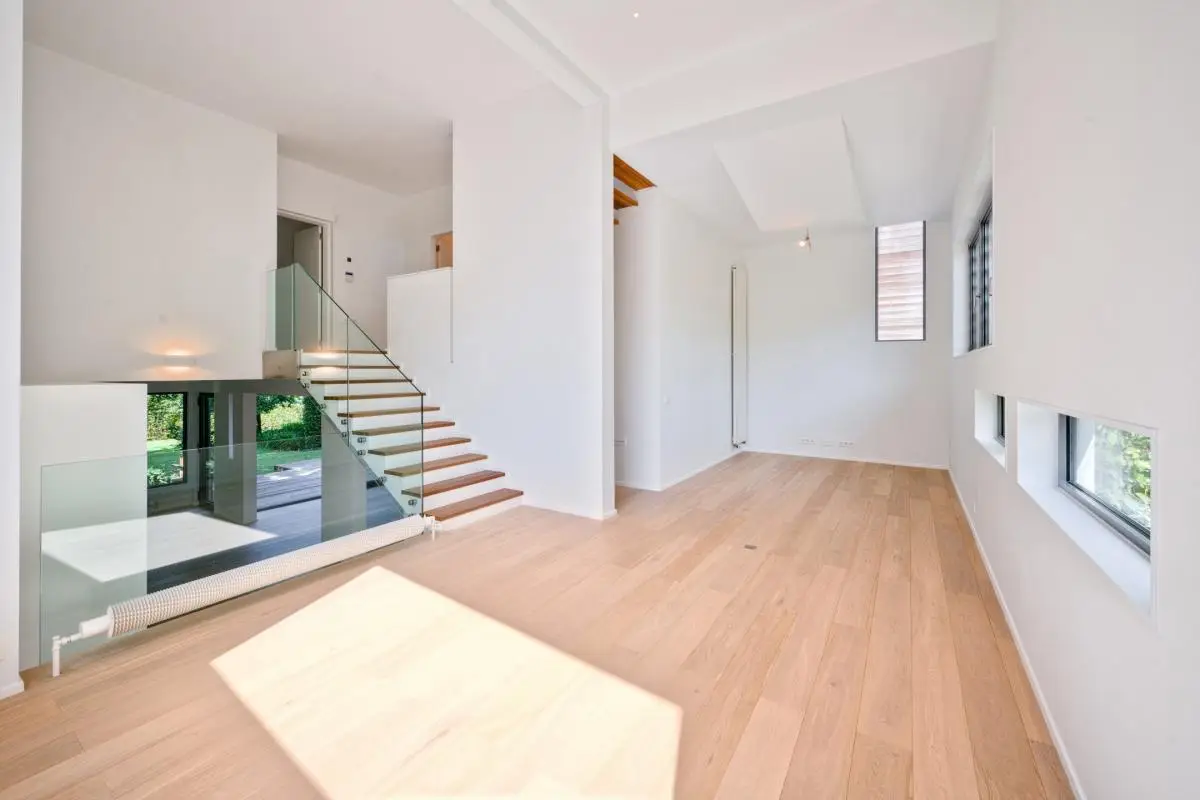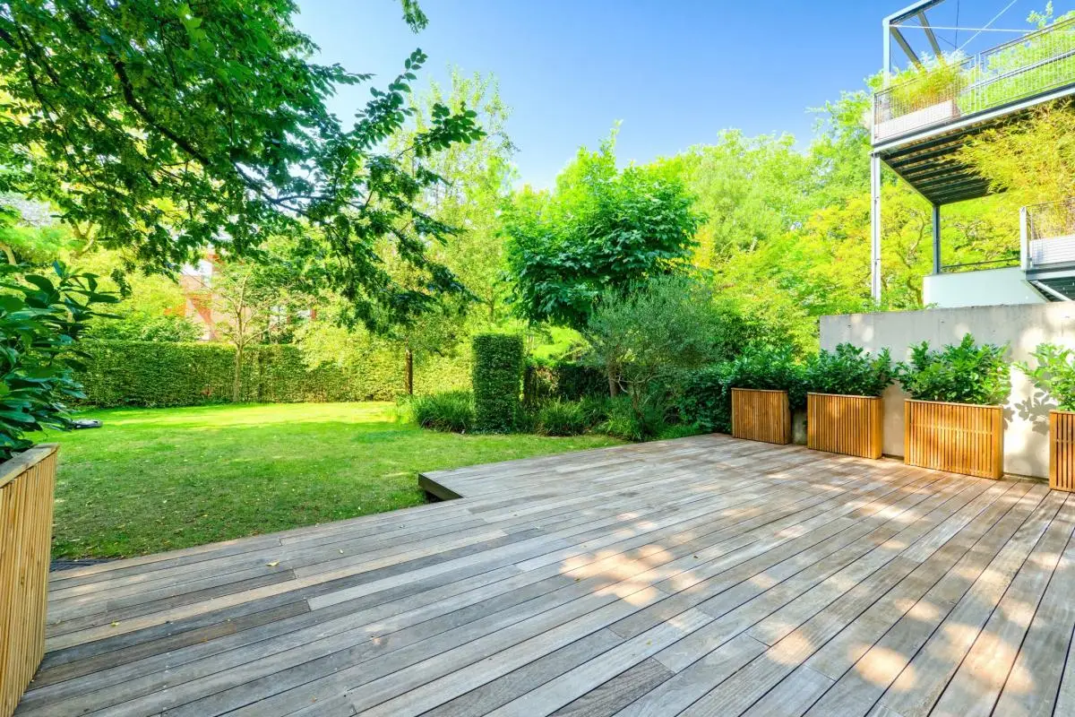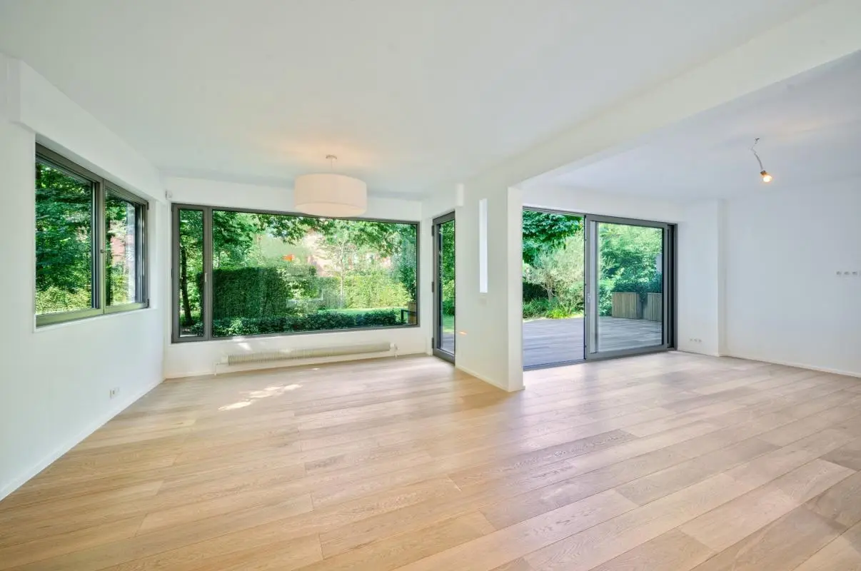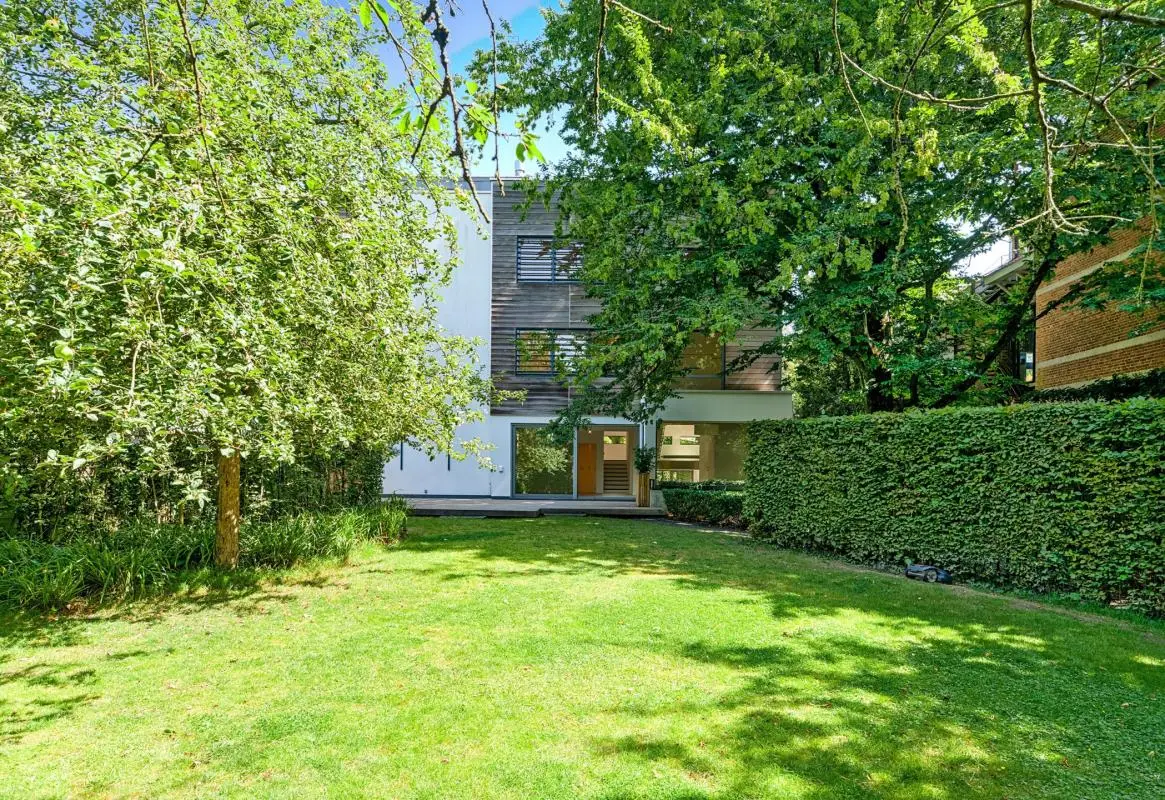 In the highly sought-after residential neighbourhood of l'Observatoire, this contemporary villa with three façades, built in 2002 in a triplex style, charms with its architectural originality and beautiful south-west facing private garden (± 10 ares 50). With a living area of approximately 350 m², the house is spread over split levels and offers spacious reception rooms on two levels, an elegant, fully equipped kitchen and a library area. The upper floor comprises 4 bedrooms and 3 bathrooms. A garage and ample outdoor parking facilities complete the property. EPC: C- (currently being updated). A bright and functional contemporary villa in the heart of a quiet and green neighbourhood in Uccle.