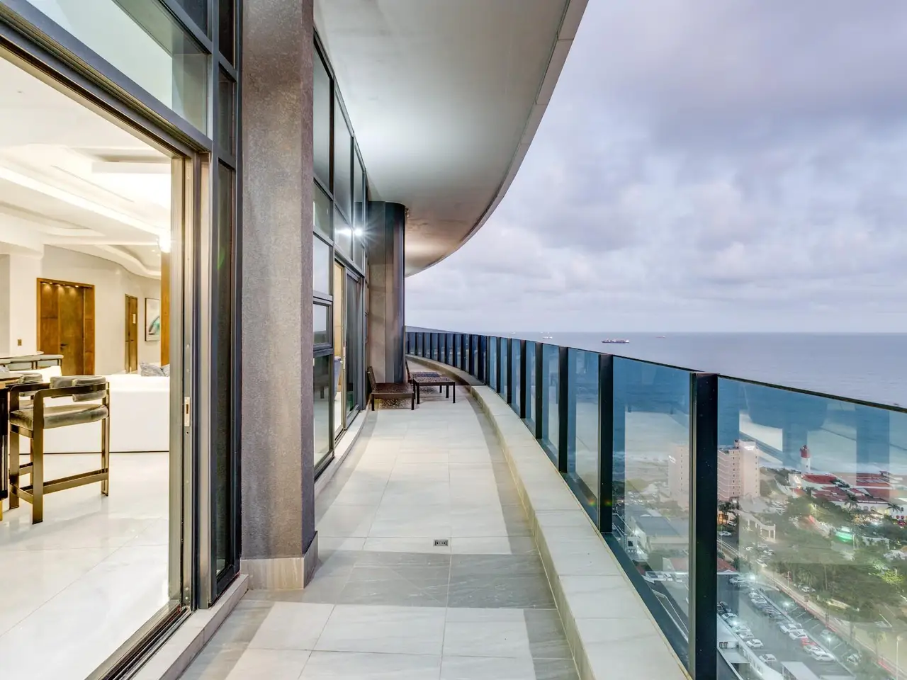 Introducing a masterpiece of luxury living in Umhlanga, South Africa, where opulence meets sophistication. This exclusive penthouse is a beacon of prestige, offering an unparalleled lifestyle for the world's elite. Located just moments away from gourmet dining, pristine beaches, vibrant nightlife, and elite shopping destinations, this penthouse epitomizes the vibrant essence of Umhlanga. Step into sheer modern brilliance as the elevator whisks you to the ultra-chic living space spanning 400m2. Italian and European tiles adorn the floors and walls, leading you to the state-of-the-art kitchen equipped with top-of-the-line appliances, including a walk-in freezer and cold room. Indulge in the epitome of luxury living with stone and marble countertops, bath-ware sourced from South Africa and Germany's finest ranges, and custom-designed furniture. Each of the three generously sized bedrooms boasts its own ensuite, while the open-plan living design enhances the sense of space and elegance. Ascend to the 27th floor via a private elevator, where a breathtaking 244m2 deck awaits, complete with a 25m2 pool. The outdoor area features a tiled kitchenette and guest WC, all under the cleverly designed white sail roof, reminiscent of a luxury sailing yacht. Security is paramount, with bespoke locking systems ensuring peace of mind for the discerning buyer. Experience coastal living at its finest, with clean lines, dramatic designs, and unmatched comfort in every corner of this exceptional penthouse. Welcome to a lifestyle reserved for the elite.