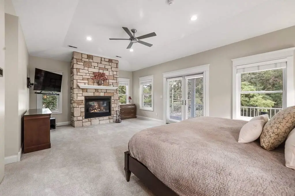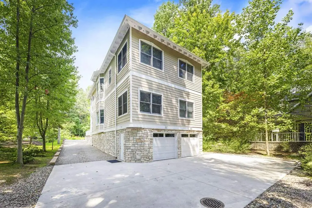 Just steps from the private sands of Gordon Beach, this architectural coastal cottage captures the essence of Harbor Country living with its signature double screened porches and timeless design. This home blends craftsmanship with modern comfort. The main level is anchored by an open great room with soaring ceilings & a stone fireplace, flowing into a gourmet kitchen appointed with upgraded appliances and custom Ash hardwood floors. Thoughtful details include a second stone fireplace in the upper level primary, expansive decks, and two levels of screened porches that blur the line between indoors and out. With 4-5 bedrooms and 3 full baths, the layout provides flexibility for guests or multi-purpose living. A generous lower-level bonus room offers a second gathering space, while the two-car garage is equipped with an EV charging station. Low-maintenance exterior finishes ensure the home lives as easily as it entertains!