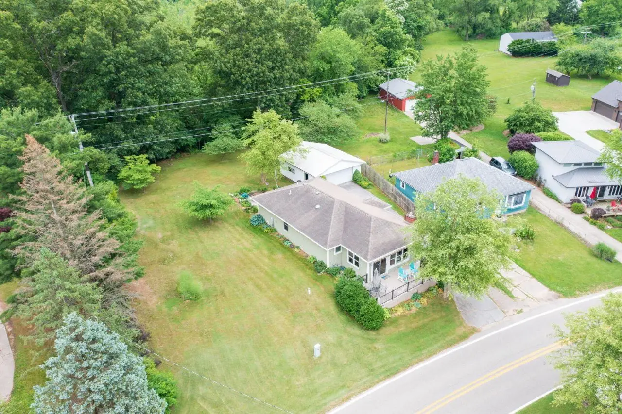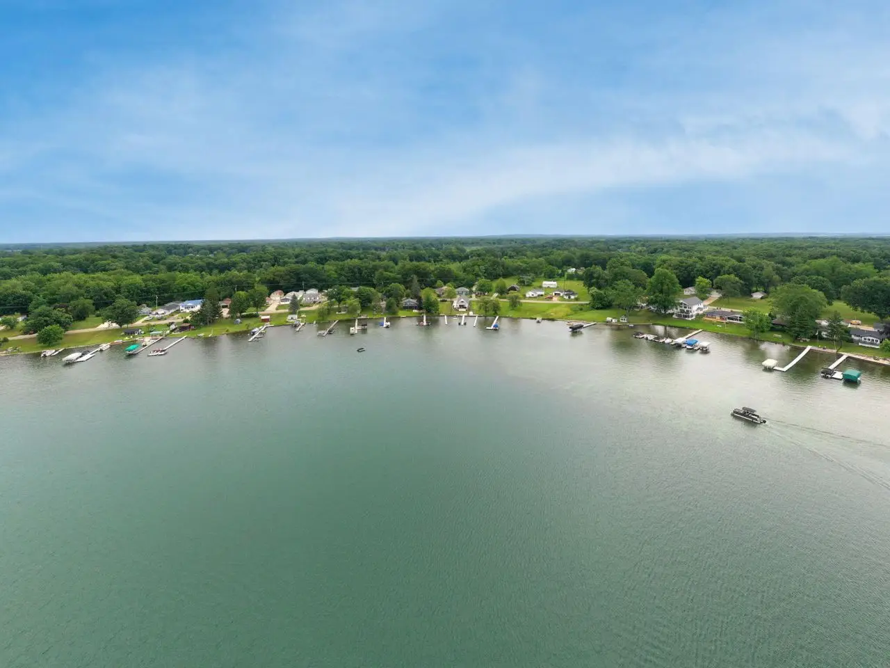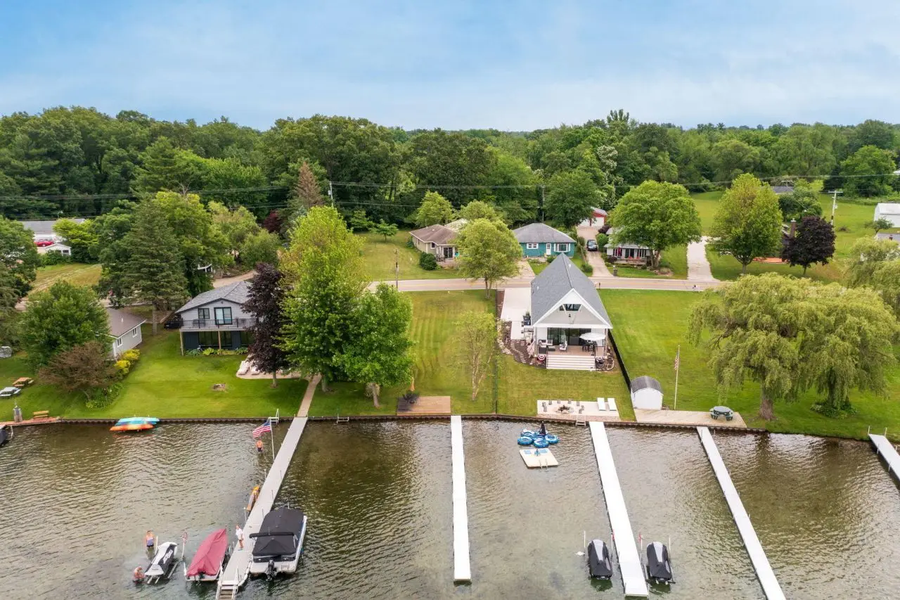 THIS TIDY AND WELL-MAINTAINED LAKE PROPERTY IS COMPRISED OF 4 TOTAL LOTS ON HIGHLY SOUGHT AFTER BALDWIN LAKE. THE HOME SITS ON ONE LOT WITH AN OPEN LAKEFRONT LOT ACROSS THE ROAD WITH UNOBSTRUCTED LAKE VIEWS AND 2 LARGE ADJACENT LOTS ON THE SIDE AND BACK. The home features an elevated kitchen with Brazilian Walnut floors and overlooks the dining and living area with a gas fireplace insert. In addition, there is a second living area on the upper level. The PRIMARY BEDROOM has a full bath and walk-in closet plus there is a second bedroom, laundry room and second bathroom. The house also has a clean, dry basement and 200 amp service. Enjoy sitting on the outside composite deck with a rollout awning or grilling on the backyard patio. Baldwin Lake is all sports, 45 minutes to Notre Dame and 2 and a half hours from Chicago.