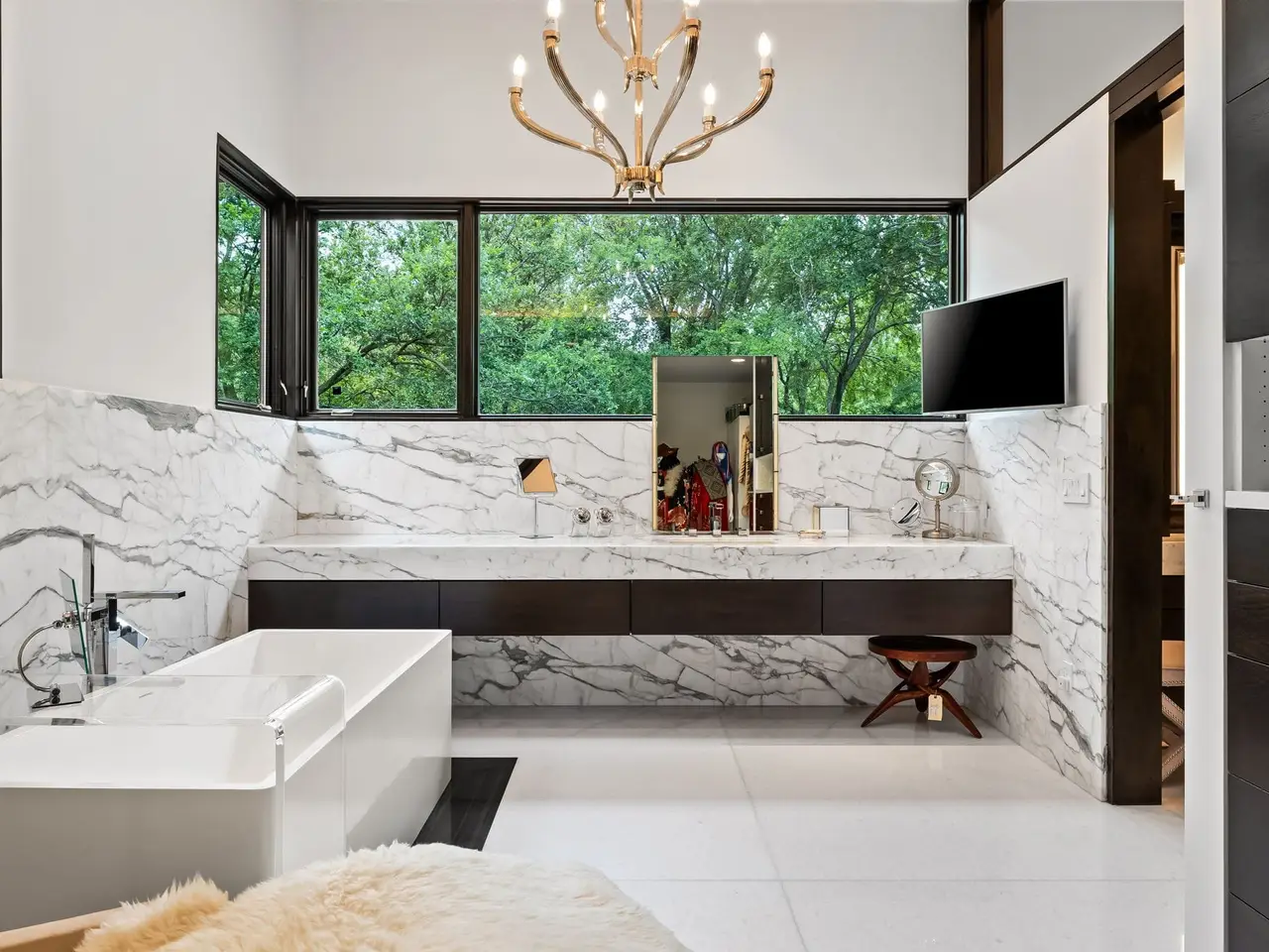 Welcome to one of University Park's most stunning contemporary homes ever built. Nestled on a remarkable 0.432-acre lot surrounded by mature trees, this home feels like a true treehouse retreat. Designed by noted Dallas architect Gary Cunningham, with the interior design by Trisha Wilson, every room is exceptional. Featuring a three-car garage, radiant heated floors throughout the main level, and stunning gallery-style windows, this home is truly a masterpiece.