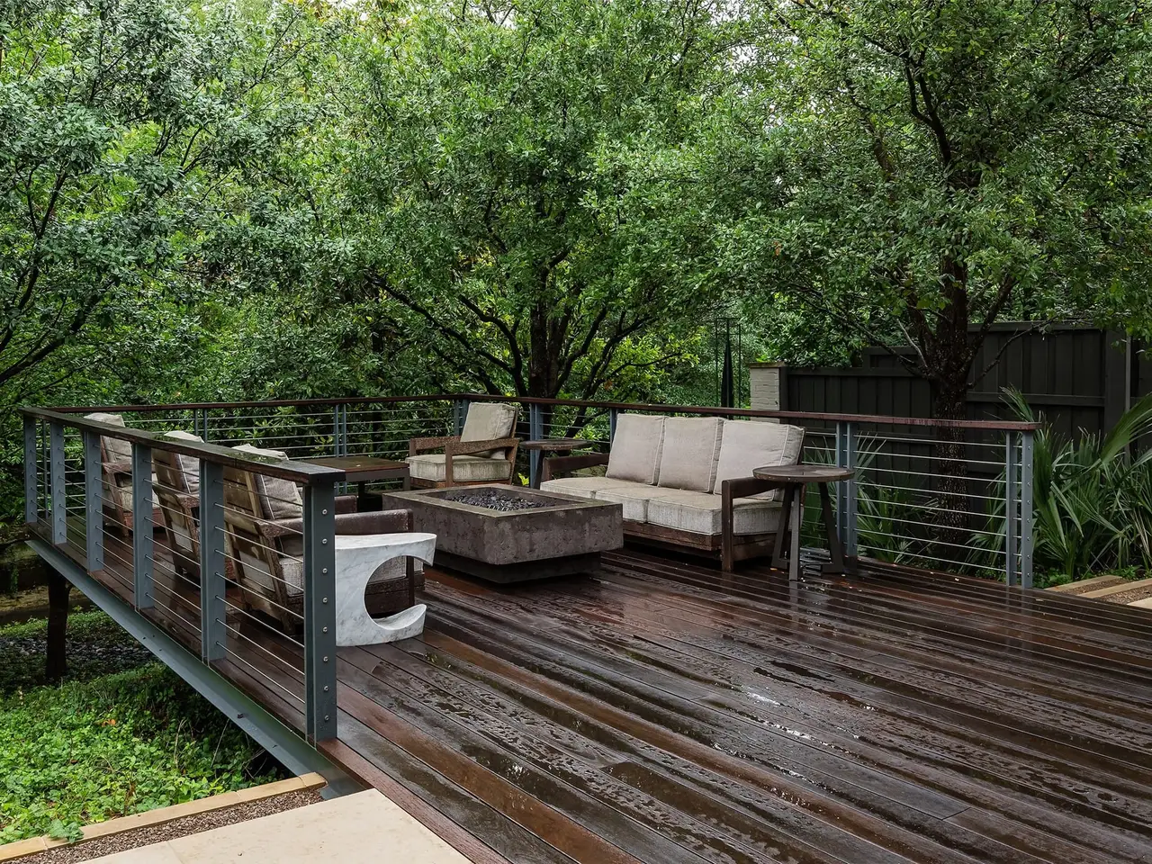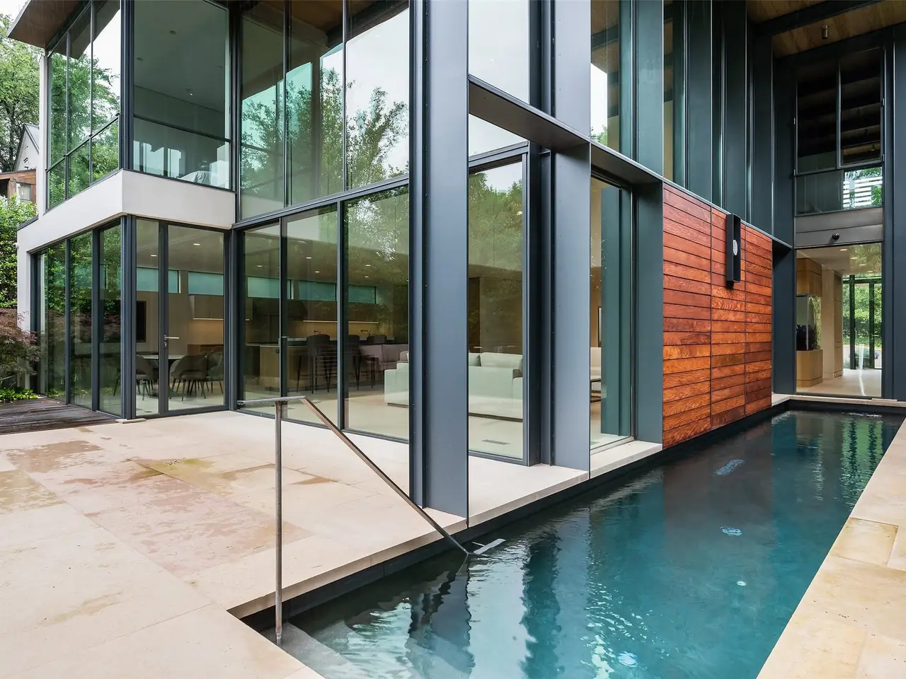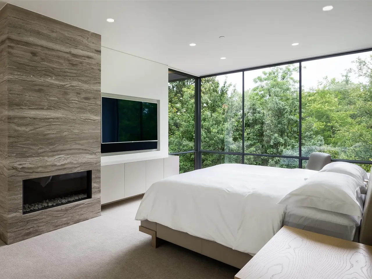 Introducing a stunning contemporary home in Park Cities. This architectural gem, designed by Oglesby Greene, offers an exceptional living experience. With 4 bedrooms and high-quality finishes, this home boasts floor-to-ceiling windows that bathe the interior in natural light. Enjoy the tranquil backyard in the cantilever deck overlooking the creek, a two-story living room with a fireplace, and a master bedroom featuring its own cozy fireplace. Don't miss the unique touch of the koi pond. This property is a true masterpiece of modern design.