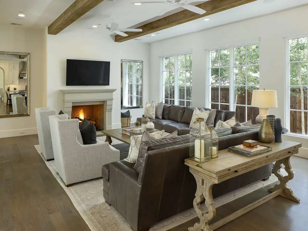 Downstairs primary suite with fireplace