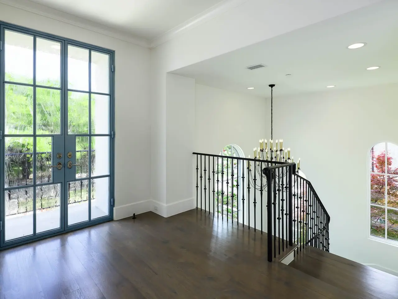 Soaring staircase with leaded glass windows