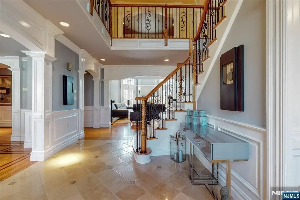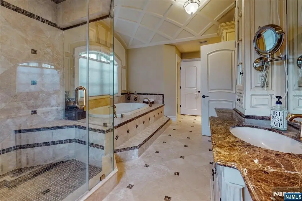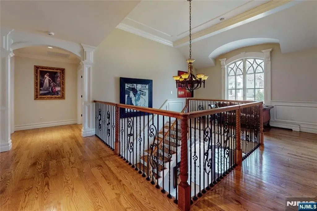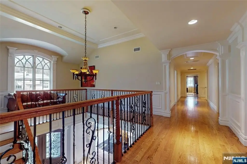 Stunningly elegant luxury manor situated at the end of a quiet cul-de-sac on .9 acres of property in beautiful Upper Saddle River. This home boasts 5 BRs on the 2nd fl. Relaxing & spacious primary suite w/sit area, 2 walk-in clsets, spa-like primary bth, addl storage closets, tray ceil & gas fpl. There are 2 additional en suite BRs w/private bths & walk-in custom closets in addition to 2 more BRs that share J&J bath between. The 2nd fl has a lrge landing & private sitting area w/ Juliette balcony overlooking stunning 2 story grt rm & focal fpl. The 1st fl boasts a banquet-sized DR, gorgeous LR w/FPL, a private library/office w/French doors to the outside (currently used as playroom), a gourmet Salerno kitchen w/cntr island & sunny breakfast room, custom butler's pantry/bar w/U-line wine ref, walk-in storage pantry, guest PR & spacious mudroom/laundry room, an addl back staircase to the 2nd flr, as well as a private den w/ensuite full bth & outside entrance to the backyard creates multiple options for addl office space or extended family on this main level. Expansive basement is plumbed for future bath and/or bar area should the next owner desire even more living space. Detailed trim work & tasteful custom detailing throughout. Convenient circular drive. Move right in & enjoy the desirable town's award winning schools, beautiful parks & recreation programs. Close proximity to schools, shopping & major highways/transportation. This home has it all!