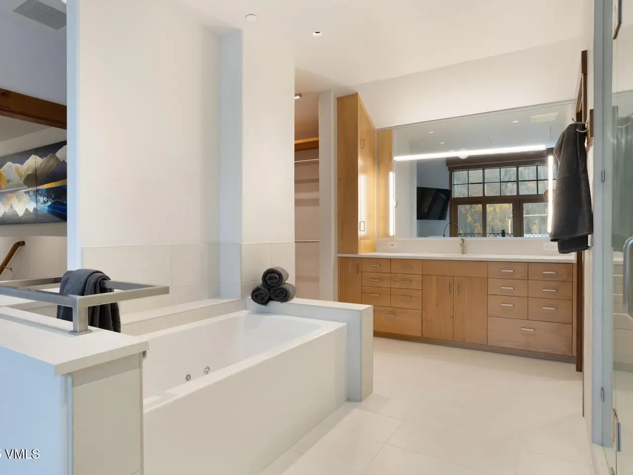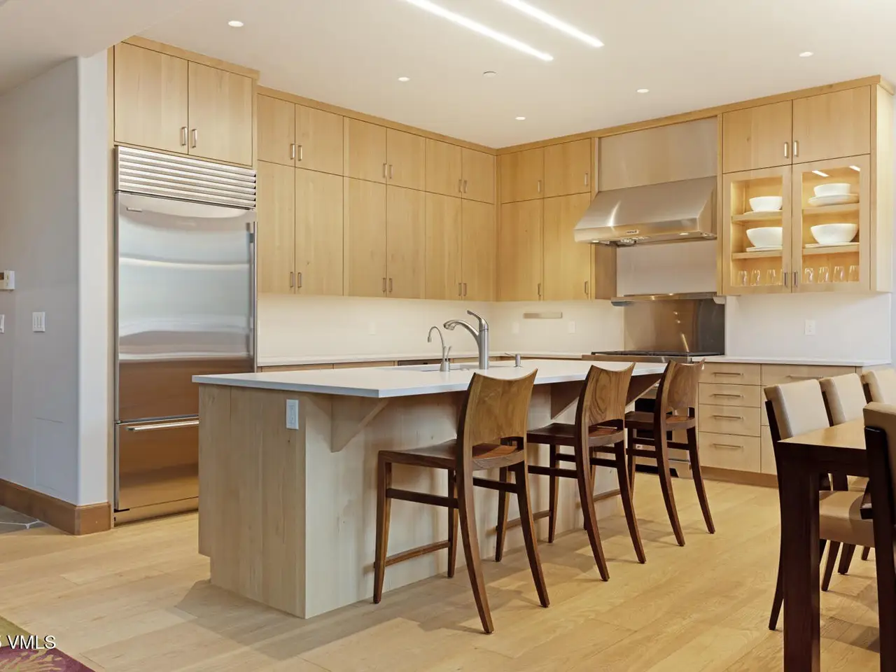 Nestled in the heart of Lionshead, 609 Landmark welcomes you with breathtaking 180-degree views of the world-renowned Vail Mountain. Fully renovated in 2022, this stunning residence boasts 3 spacious bedrooms, 3.5 bathrooms, and vaulted ceilings throughout, creating a perfect blend of modern luxury and convenience. Each of the three generously sized bedrooms features an en-suite bathroom, while the primary suite offers a luxurious soaking tub, walk-in shower, and a private balcony with stunning mountain vistas. The open-concept living room features a cozy fireplace and a spacious balcony, while the chef's kitchen is equipped with top-of-the-line Wolf and Sub-Zero appliances. The unification of these spaces provides an ideal area for entertaining. The complex is amenity-rich, offering residents access to a full-service front desk, on-site management, a fitness center, an inviting pool deck complete with a heated outdoor pool and 3 hot tubs, a convenient parking garage, and ski storage room. Just steps away from the ski slopes, this property provides prime ski access, making it an ideal choice for both permanent residents and those seeking a vacation residence. Experience the ultimate mountain getaway with this exceptional condominium that combines the best of mountain living with unparalleled luxury and convenience.