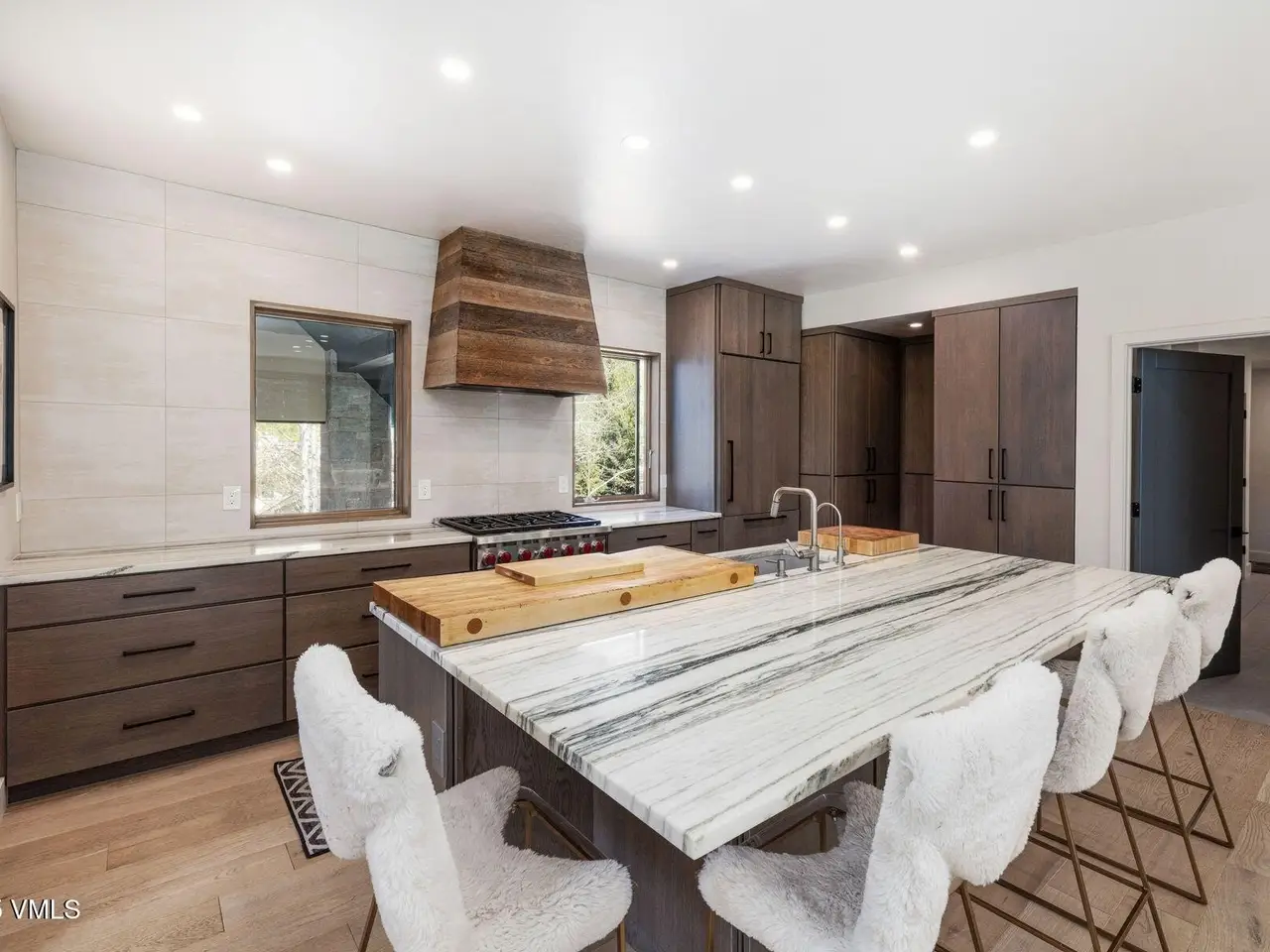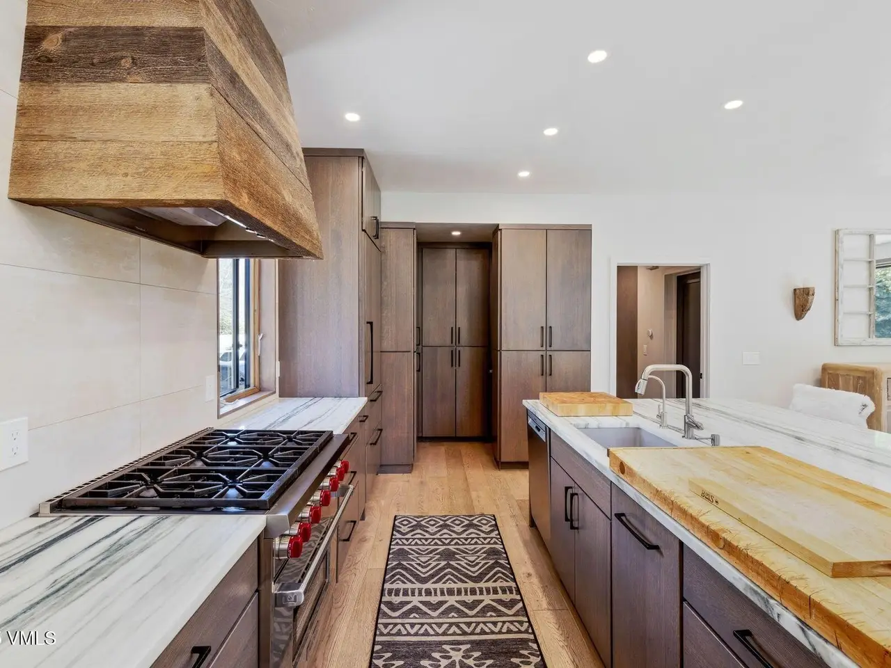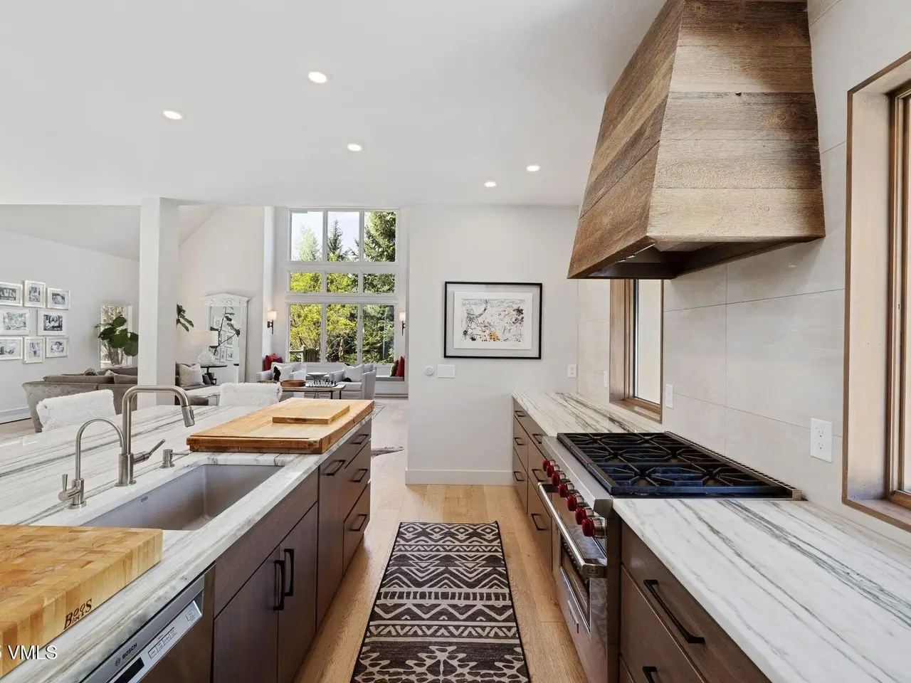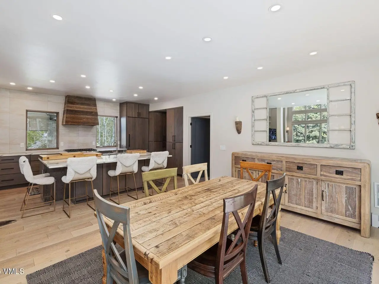 Modern Luxury Meets Mountain Living - Just Minutes from Vail. Welcome to this meticulously and elegantly remodeled contemporary single-family home, where sleek design and mountain charm blend seamlessly just moments from the heart of Vail. Set on a rare, generously sized flat yard, this property offers both privacy and space - an uncommon gem in the area. Bathed in sunlight from its south-facing orientation, the home features dramatic floor-to-ceiling windows that flood the interiors with natural light and frame views of the serene surroundings. The vaulted ceilings and open-concept layout include a show-stopping gourmet kitchen with top-of-the-line finishes ideal for everything from quiet mornings to festive gatherings. With four spacious bedrooms, which include a luxurious primary suite with a spa-inspired bathroom, a main floor guest suite plus a family room, office area, and personal workout area, the home's thoughtful two-level design balances elegance, comfort, and versatility. Step outside to discover a beautifully integrated outdoor living experience. The expansive terrace flows effortlessly to the paved patio, flat fenced in lawn area and a vegetable garden create the perfect backdrop for entertaining, relaxing, or play. The oversized garage provides abundant space for vehicles, mountain gear, and storage. And with no transfer tax thanks to its location just outside the Town of Vail limits, this home is as smart an investment as it is a dream to live in.