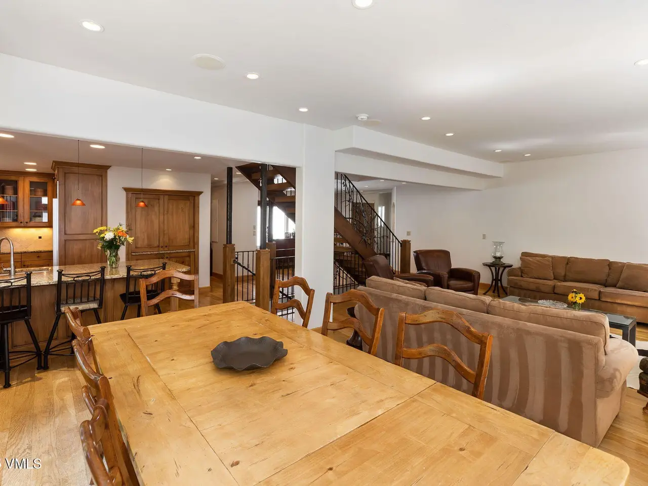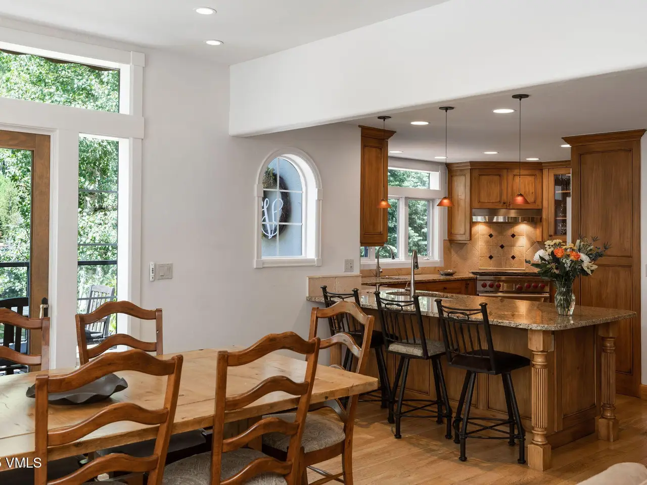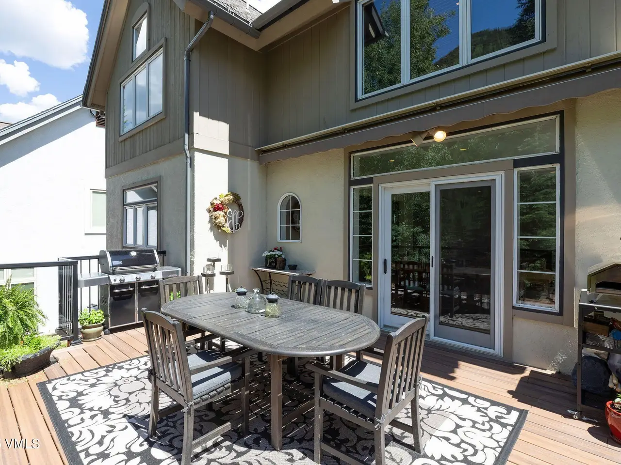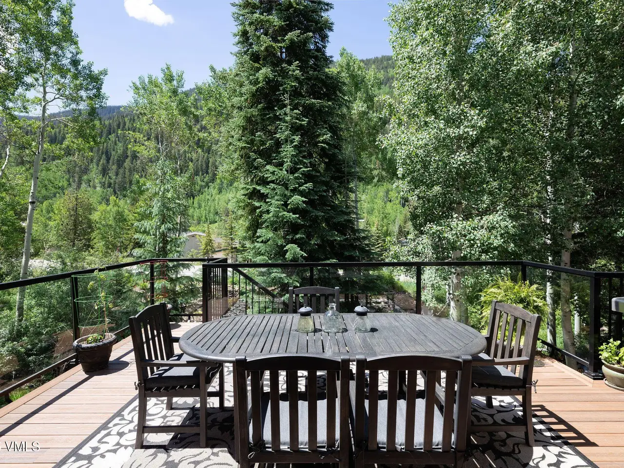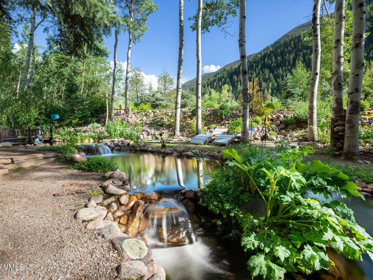 One of the most unique homesites in all of Vail, with a natural water feature running through the property. Expansive outdoor spaces feature a new deck, covered patio, fire pit area, and a beautifully landscaped and manicured backyard. Located on the quiet Spruce Way with sunny, southern exposure, enjoy proximity to the bus stop and just minutes to town for skiing and all that the village has to offer. This turnkey single-family home boasts five bedrooms, perfect for vacationing or full-time residency. Main level has an open floorplan with adjoining great room, kitchen and dining room with a nearby built-in climate-controlled wine cave and access to the upper level deck with an electric awning for sun coverage if necessary. The expansive master suite features vaulted ceilings, a deck, a large walk-in closet with laundry facilities, a double-sided fireplace, and an oversized bathroom with a jacuzzi tub and steam shower. The upper level includes three additional guest rooms. For overflow entertaining or relaxing, there is a family room on the lower level with a wet bar and access to the outdoors, a second laundry, as well as one additional bedroom with an en-suite bathroom. Recently installed water shut-off system. 2-car garage, sold furnished.