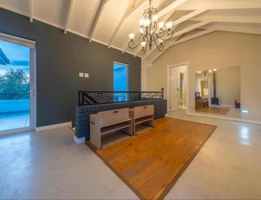 Step into refined luxury with this beautifully renovated 4-bedroom, 4-bathroom home, nestled on an 824 sqm stand in the award-winning Val de Vie Estate. Boasting 359 sqm under roof, this double-storey residence blends timeless charm with modern convenience. The home welcomes you with sleek, polished concrete flooring, a statement staircase, and stunning chandeliers that illuminate the spacious open-plan layout. Designed for both entertaining and family living, the formal lounge features a classic fireplace, while the open-plan dining and living areas flow effortlessly toward a designer kitchen. The kitchen is the heart of the home — complete with a large centre island, ample storage, granite countertops, and a built-in pizza oven set in a character-filled white brick feature wall. Each of the four bedrooms is generously sized, with en-suite bathrooms that have been fully renovated with contemporary finishes. Large sliding doors open onto a covered patio, where you’ll find a sparkling swimming pool, manicured garden, and tranquil views — perfect for indoor-outdoor living. Additional features include: Full inverter system for uninterrupted power Double garage with direct access Premium finishes throughout Live the lifestyle you deserve in South Africa’s most secure and celebrated estate, offering world-class wellness, sporting and leisure facilities right at your doorstep.