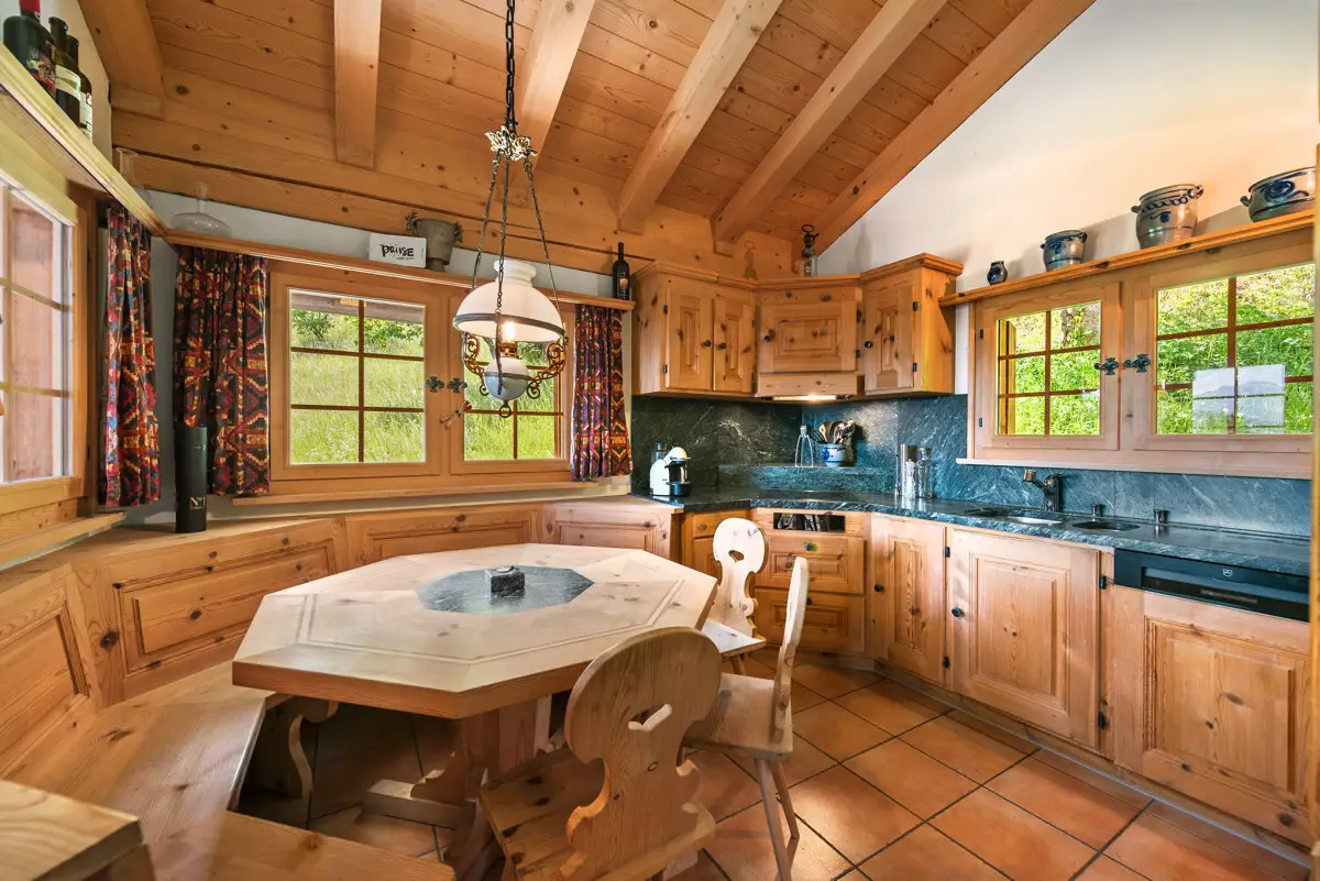 This holiday home on a sunny incline in Valbella has immediate appeal with its unobstructable views of the lake, mountains, and valley. The combination of alpine style, tranquil surroundings, and direct access to the pistes creates an exceptional living experience. On the upper floor, a stylish wood-fronted kitchen with natural stone worktops, cosy corner bench, and a living area with a soapstone stove come together to form a harmonious whole. Two bedrooms and a separate guest WC complete this level. The top floor features another bedroom with its own bathroom and generous storage capacity, while the ground floor includes an additional bedroom with a separate bathroom and connections for kitchen fittings, offering potential to convert this into a self-contained apartment. The directly accessible double garage provides practical convenience for day-to-day living. The prime position on the slope, high-quality construction, and proximity to alpine landscape make this property a decidedly attractive retreat. The property: - 5.5-room holiday home in Valbella - Approx. 138m² living space - Approx. 34m² additional utility space - Terrace and over 800m² of surrounding land - Unobstructed, sightline-protected mountain, lake, and panoramic views - Ski-in / ski-out location - Quiet and sunny position on a hillside - 2 garage spaces, plus 2 outdoor parking spaces