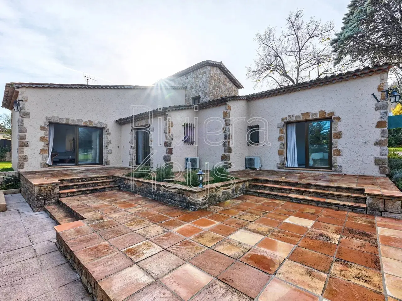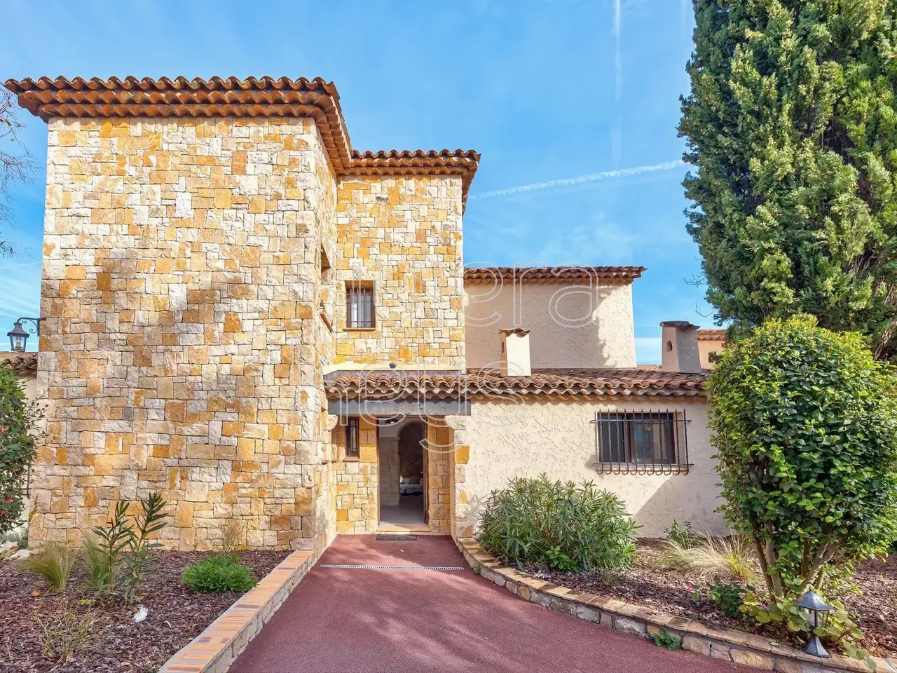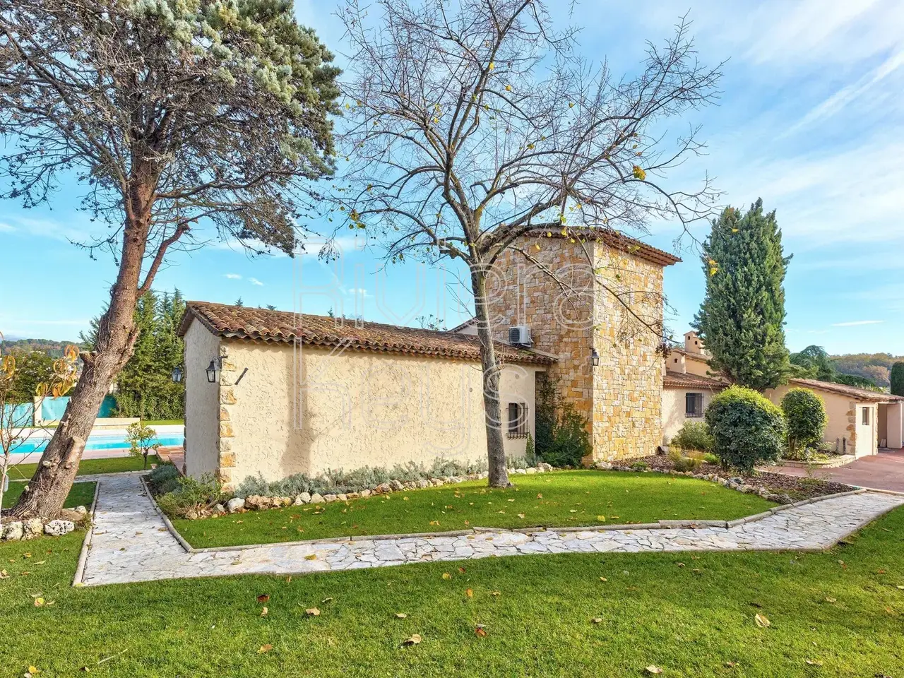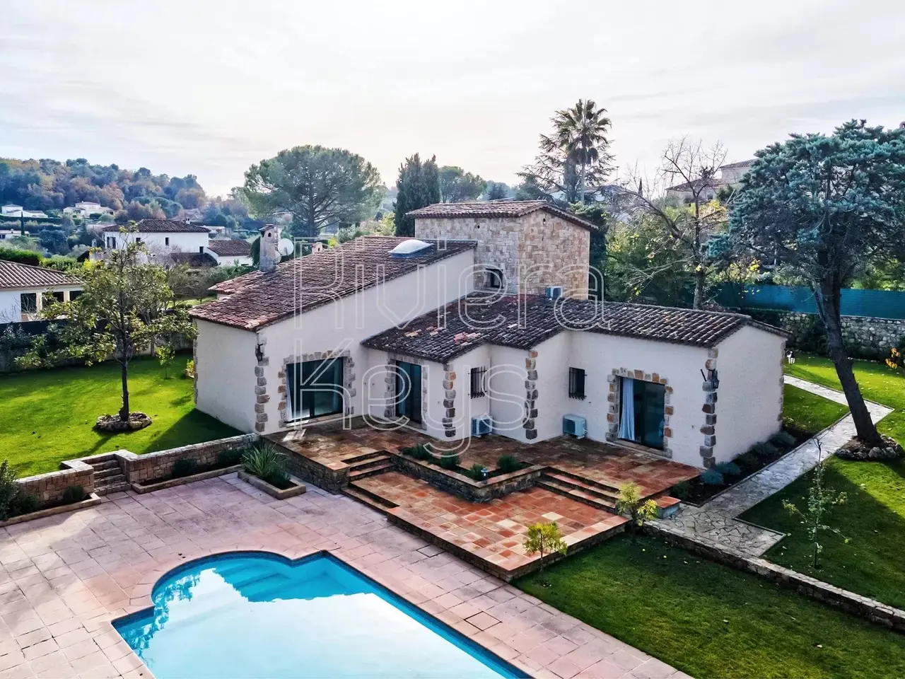 Located in a peaceful area just minutes from the village of Valbonne (1 km), this charming villa is set in a sought-after residential neighbourhood. The property sits on a flat 2,528 m² plot featuring fruit trees and a swimming pool. Fully renovated and air-conditioned, the bright interior offers an entrance hall, a spacious cathedral-style living room with a fireplace, an open-plan kitchen and dining area, a laundry room, 3 ground-floor bedrooms, and a master suite. Upstairs, a large mezzanine leads to a 5th bedroom with an en-suite shower room. The property also includes a carport and multiple outdoor parking spaces.